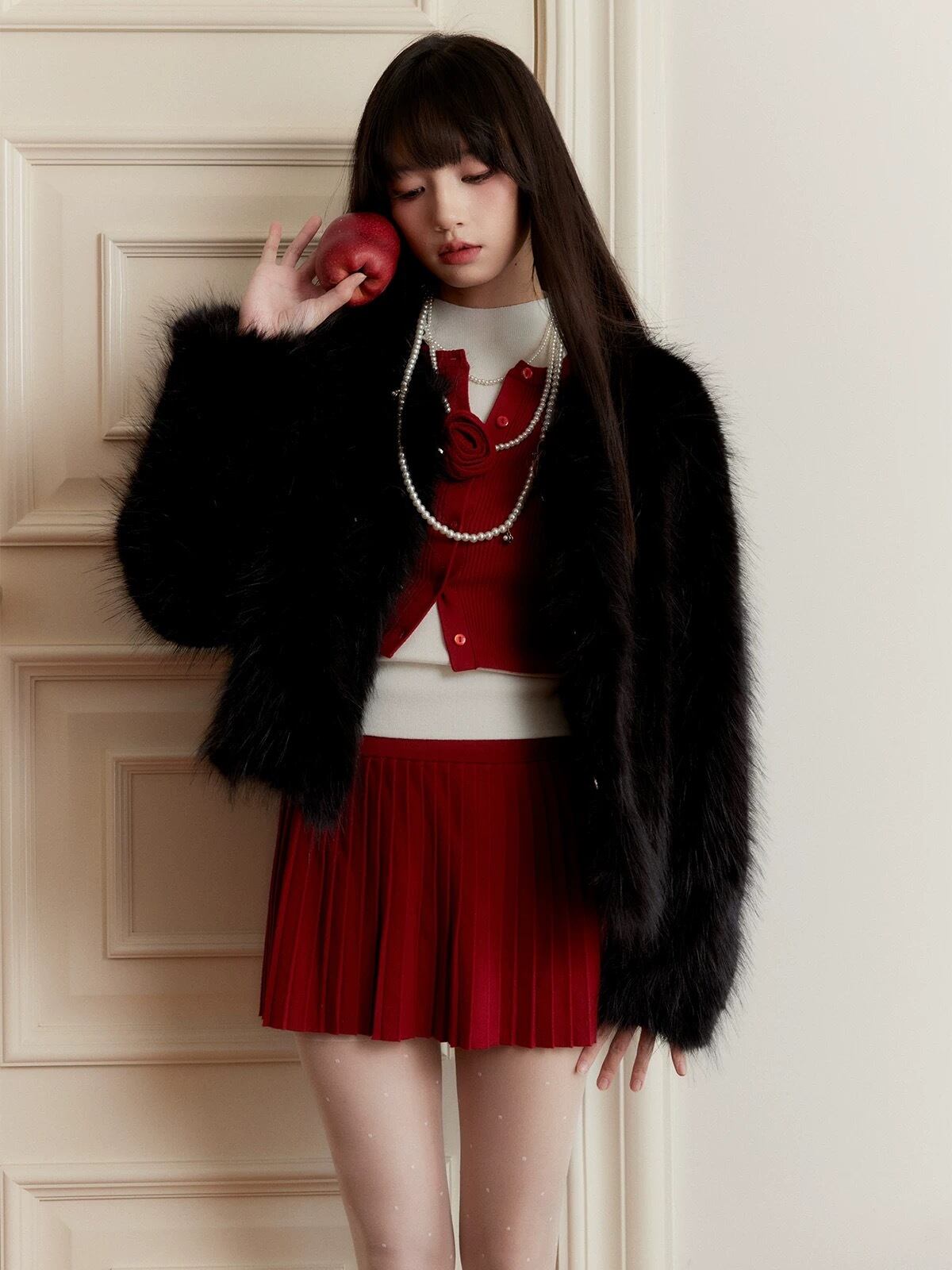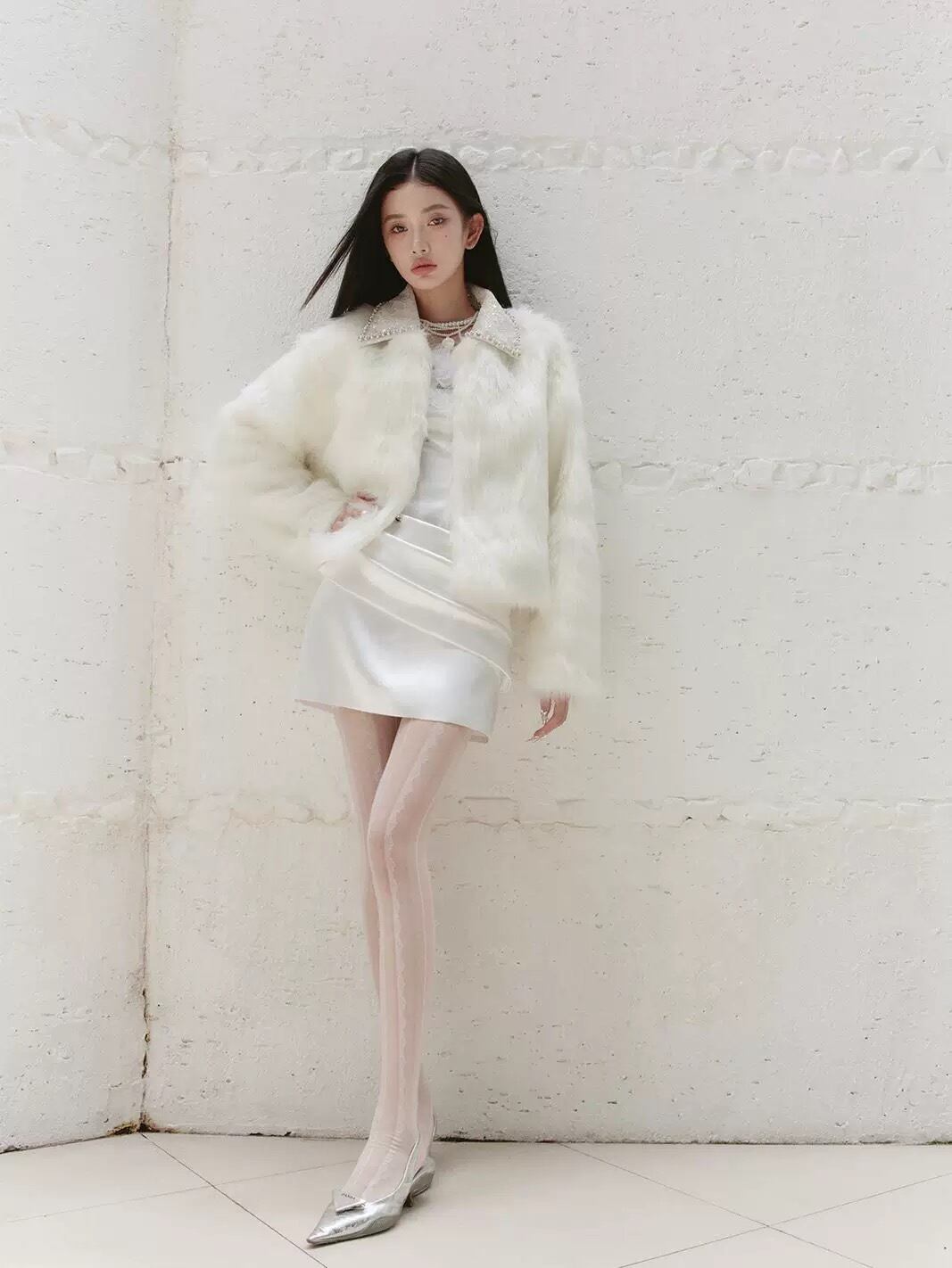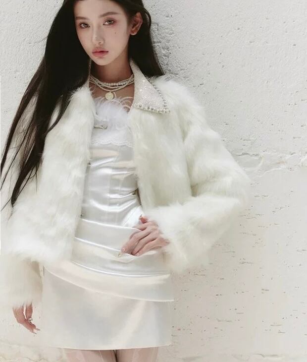 白 黒 ファー コート 襟 ゴージャス 可愛い