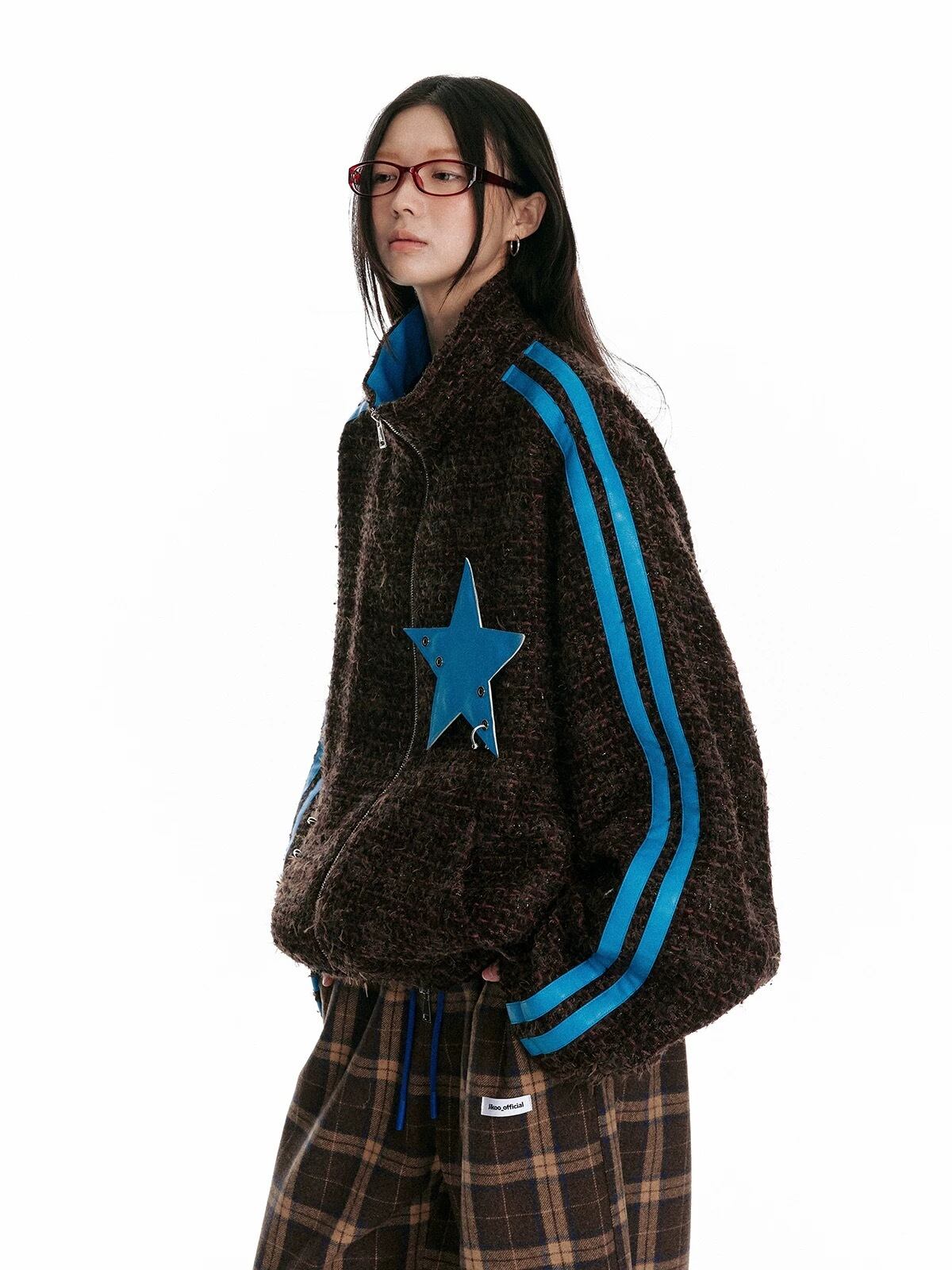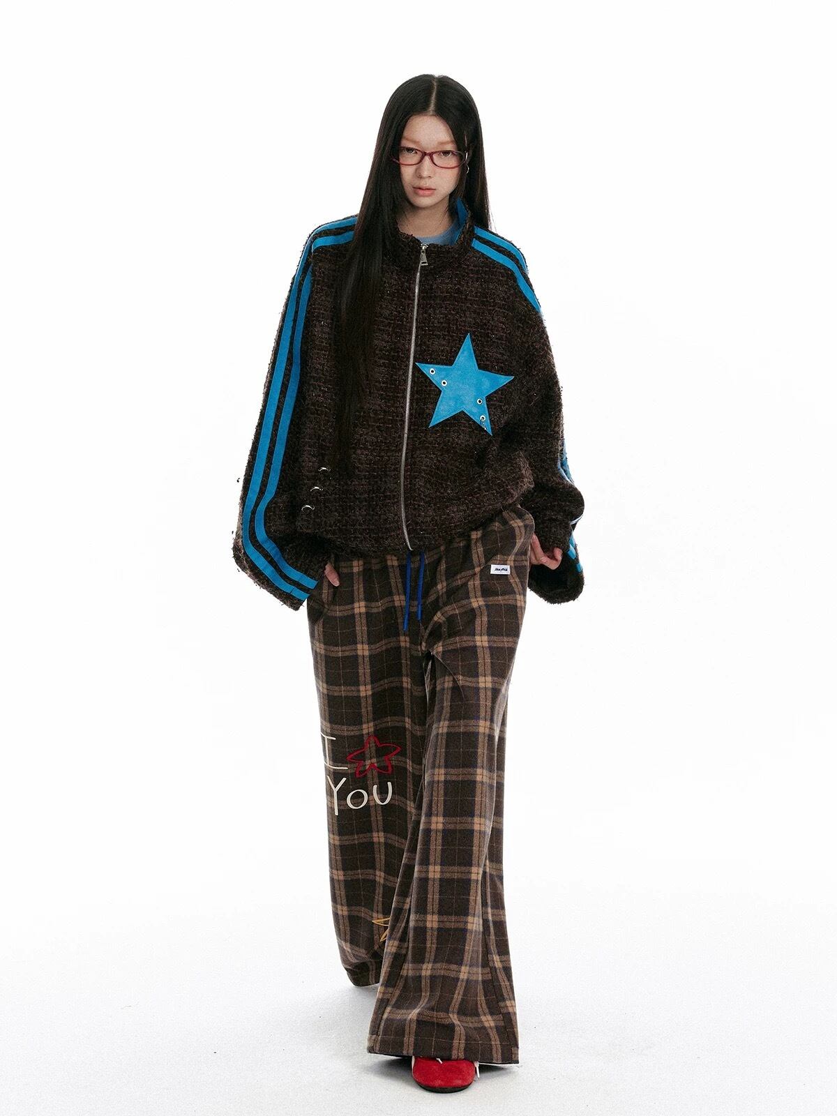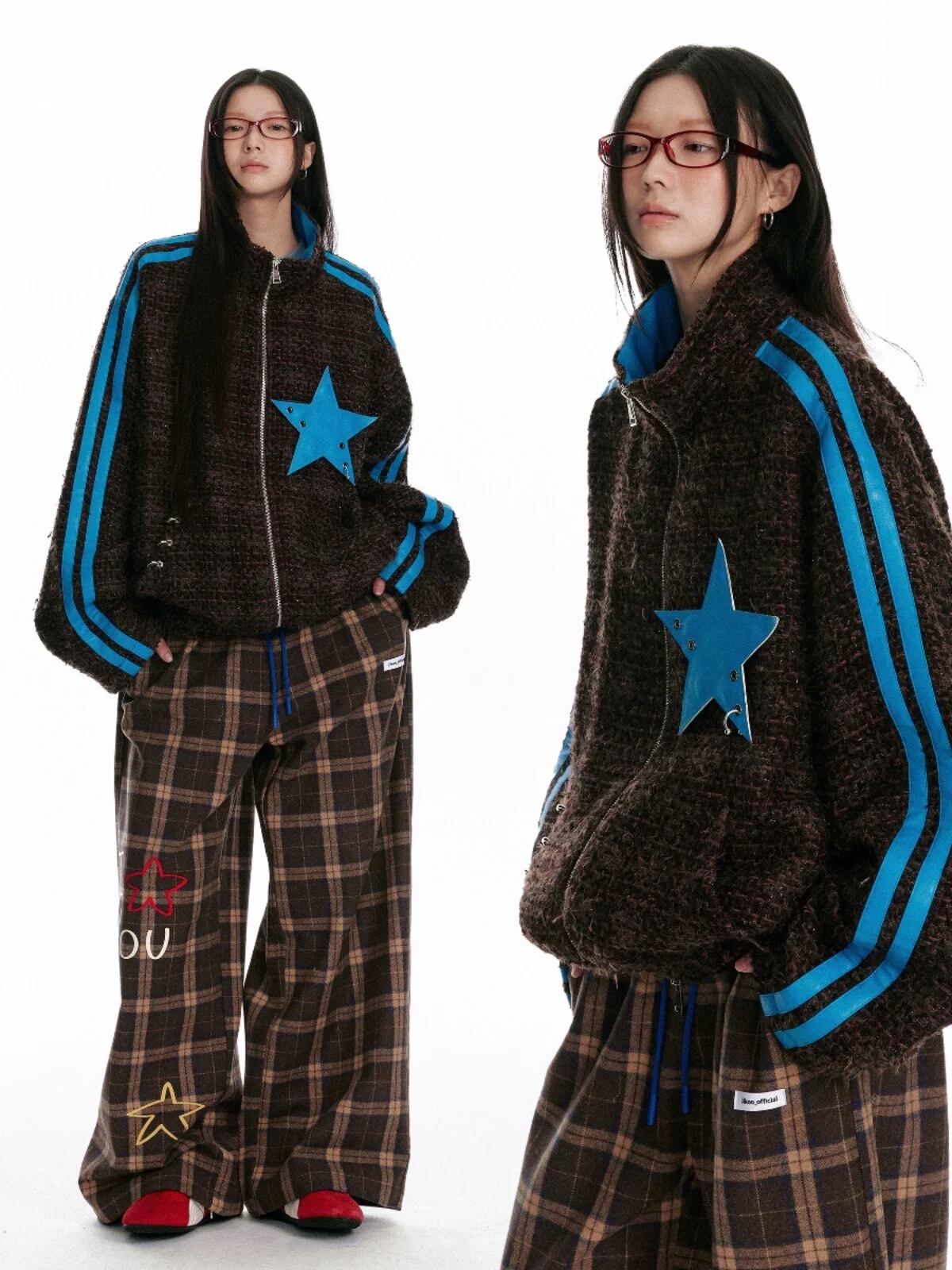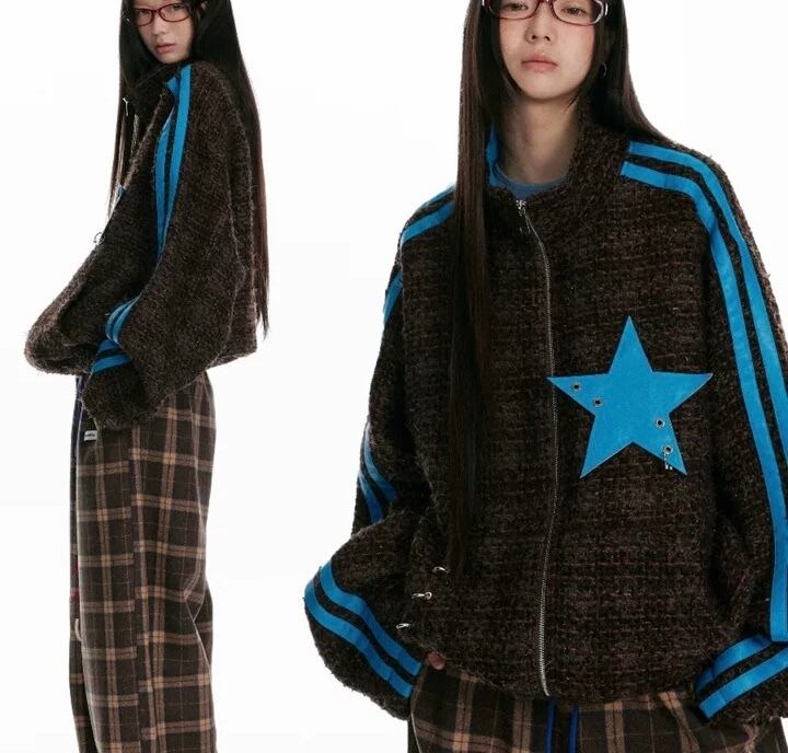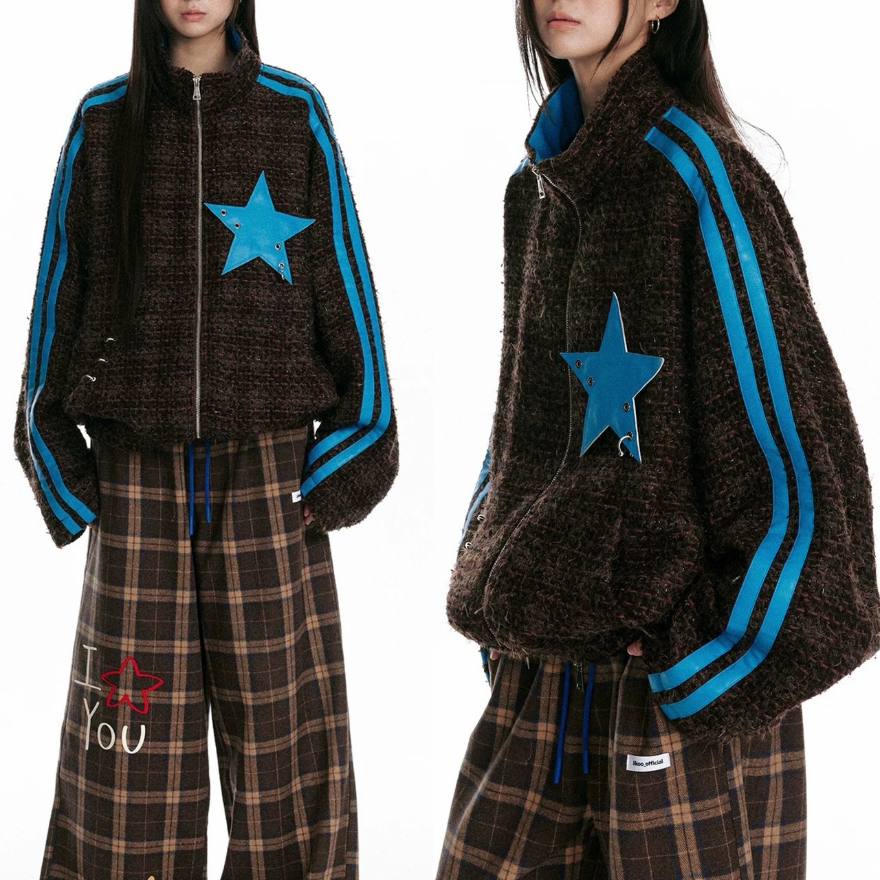 水色 チェック カジュアル アウター ジャンパー