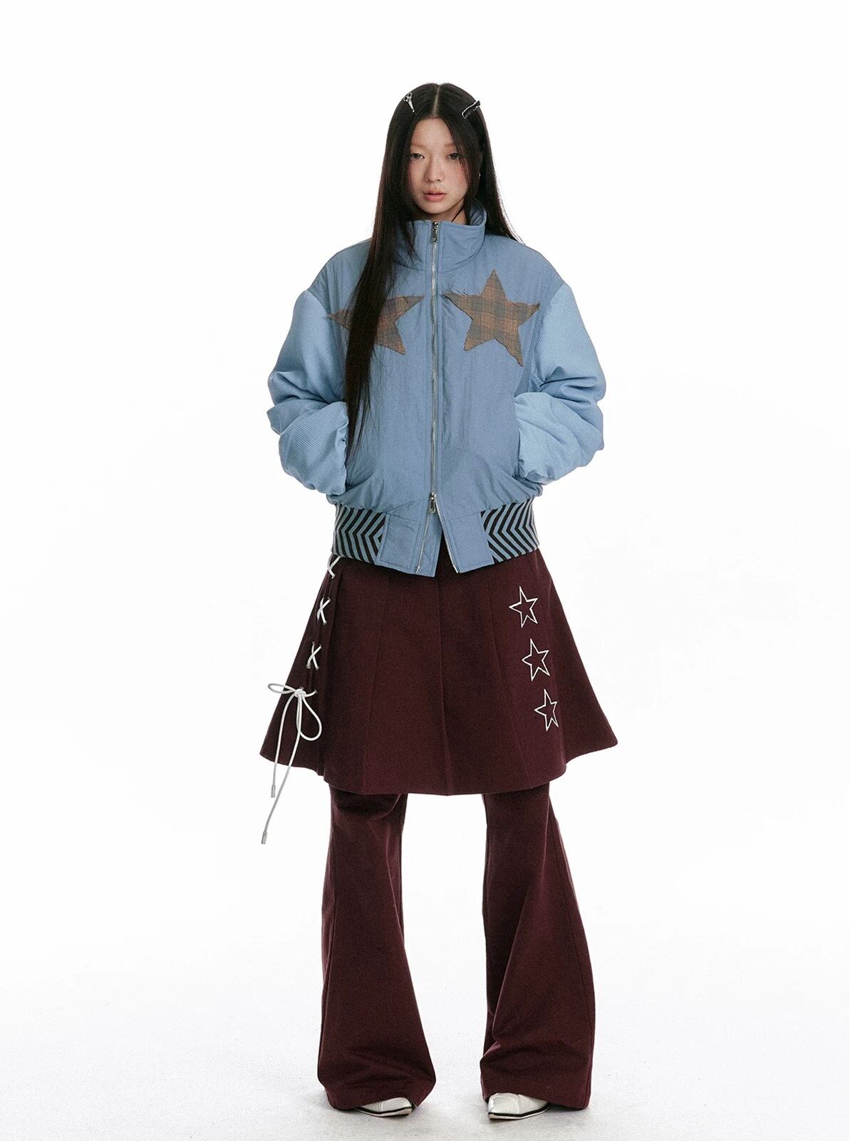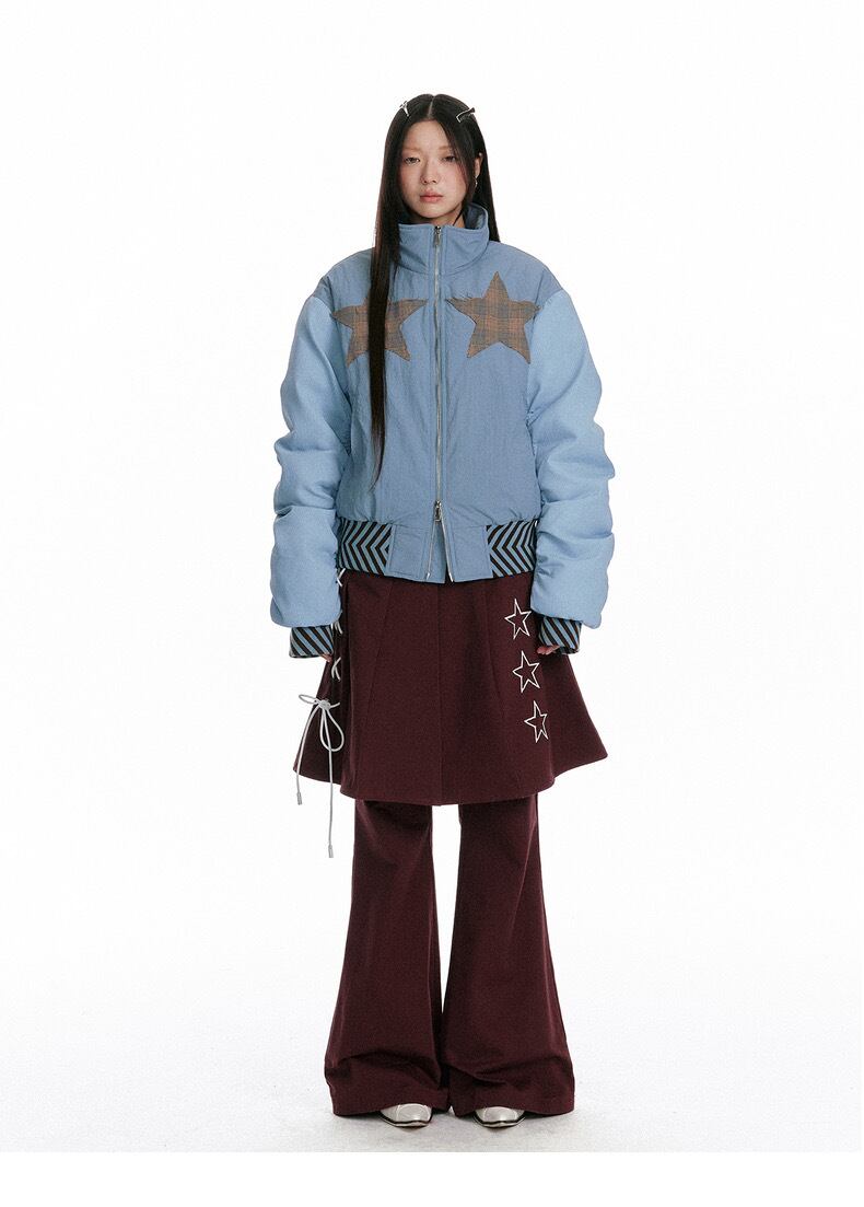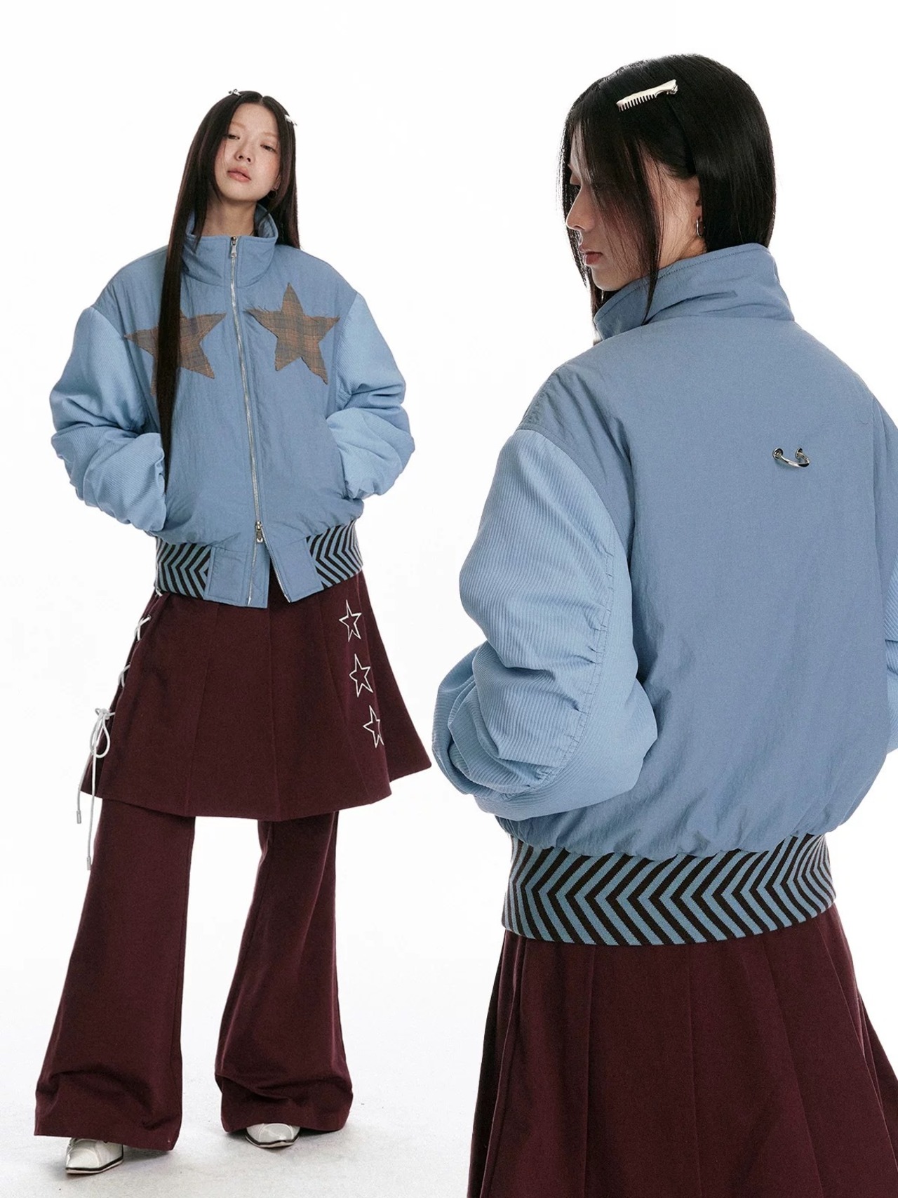 水色 星 茶色 ジャケット ジャンパー カジュアル アウター