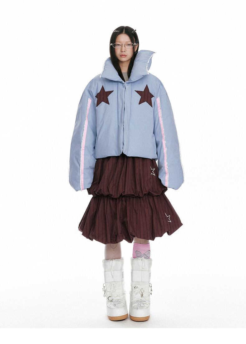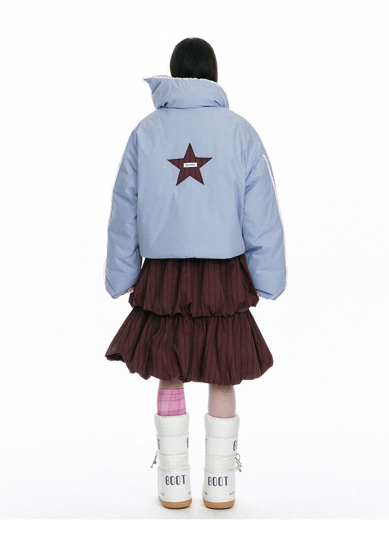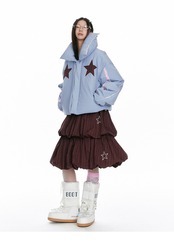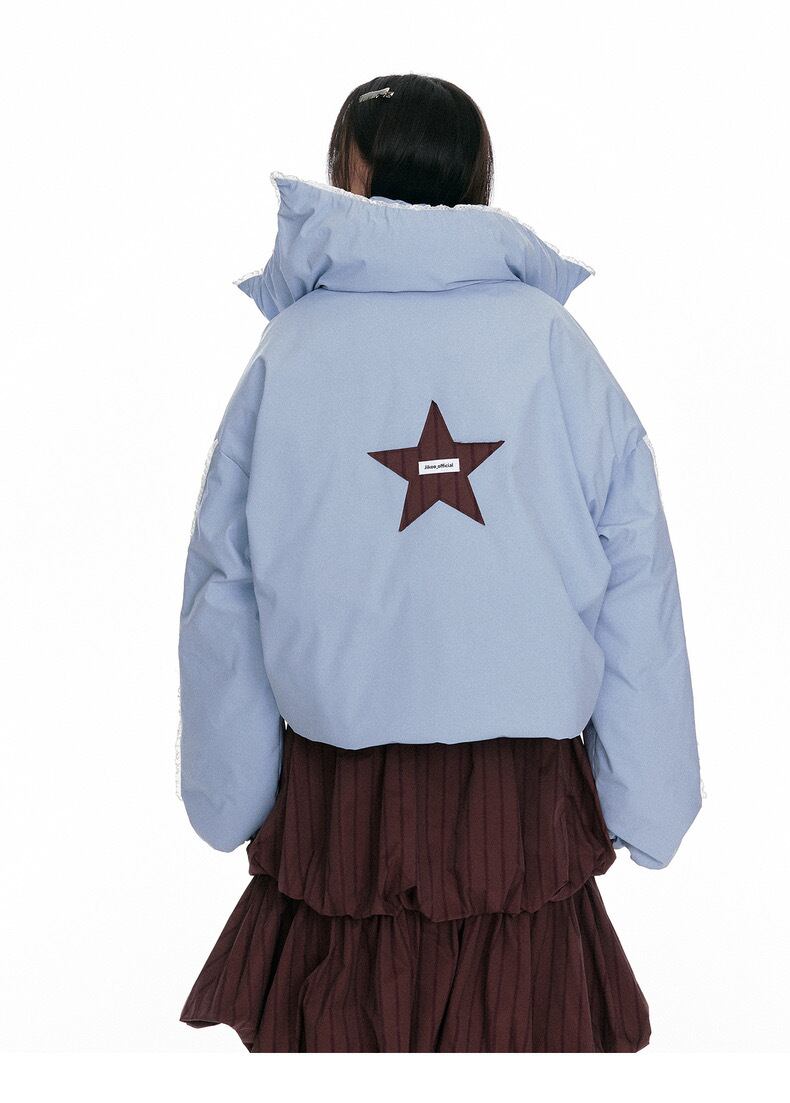 水色 星 ジャケット アウター コート 可愛い 襟