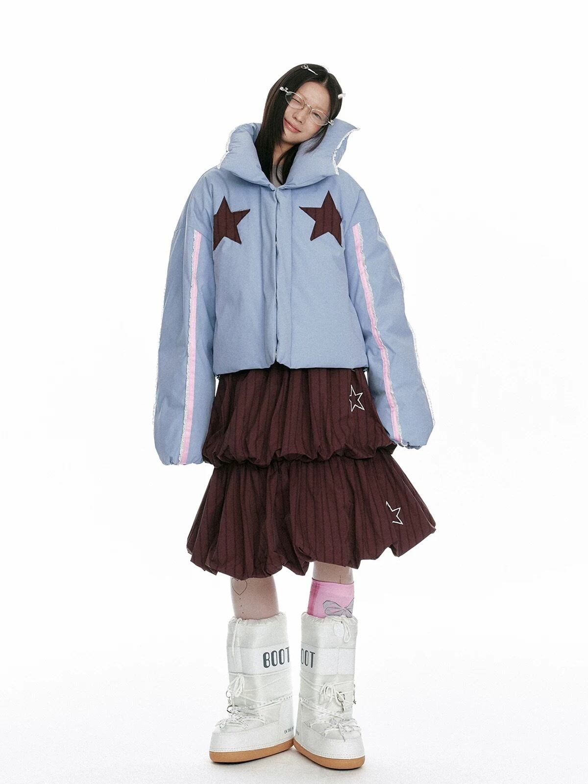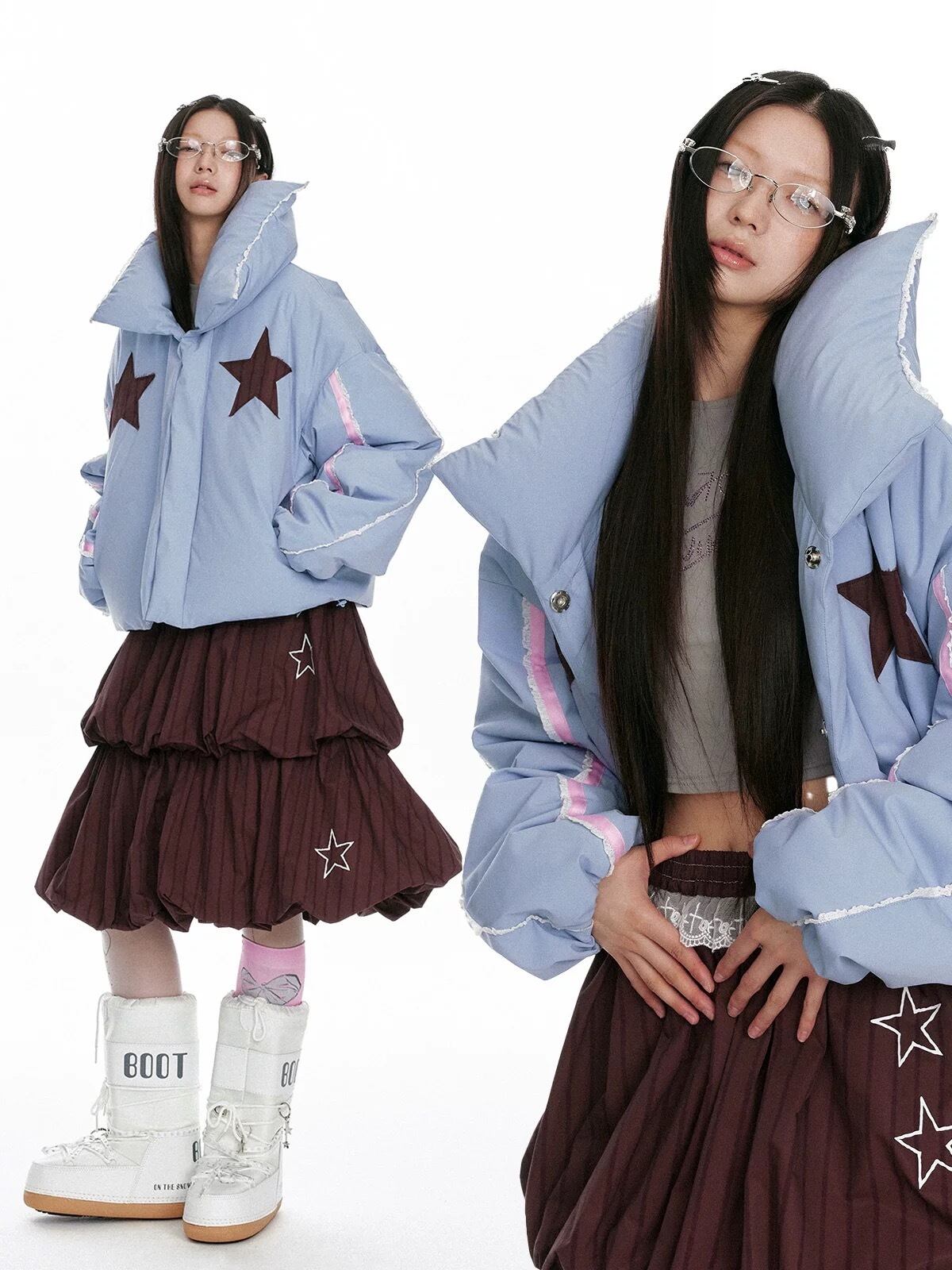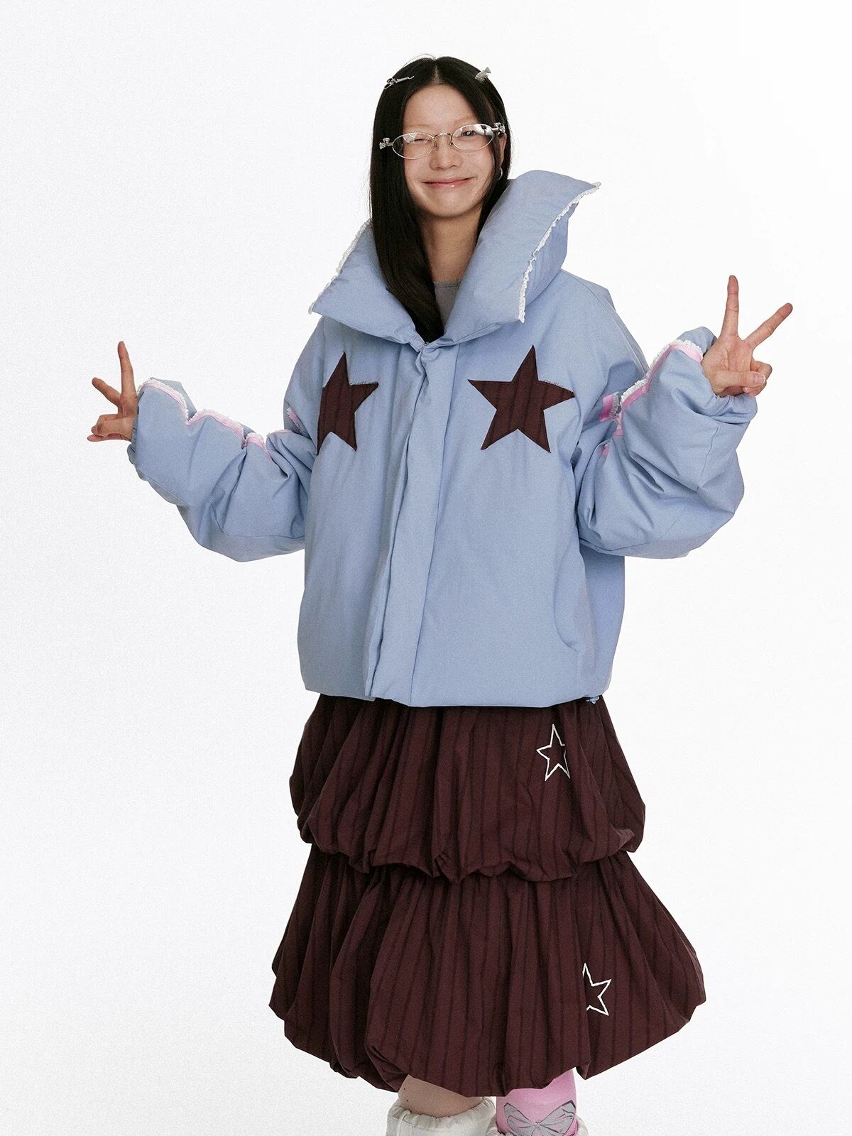水色 星 ジャケット アウター コート 可愛い 襟