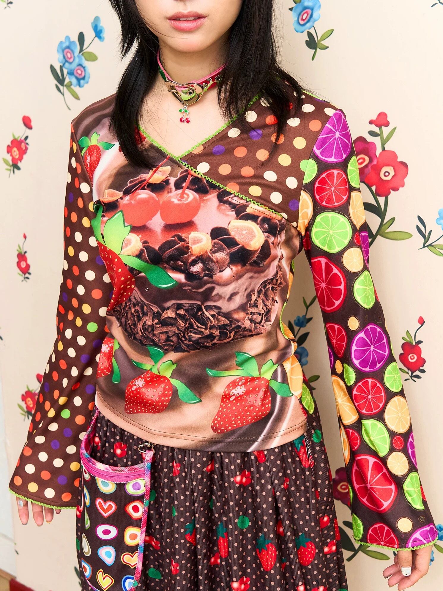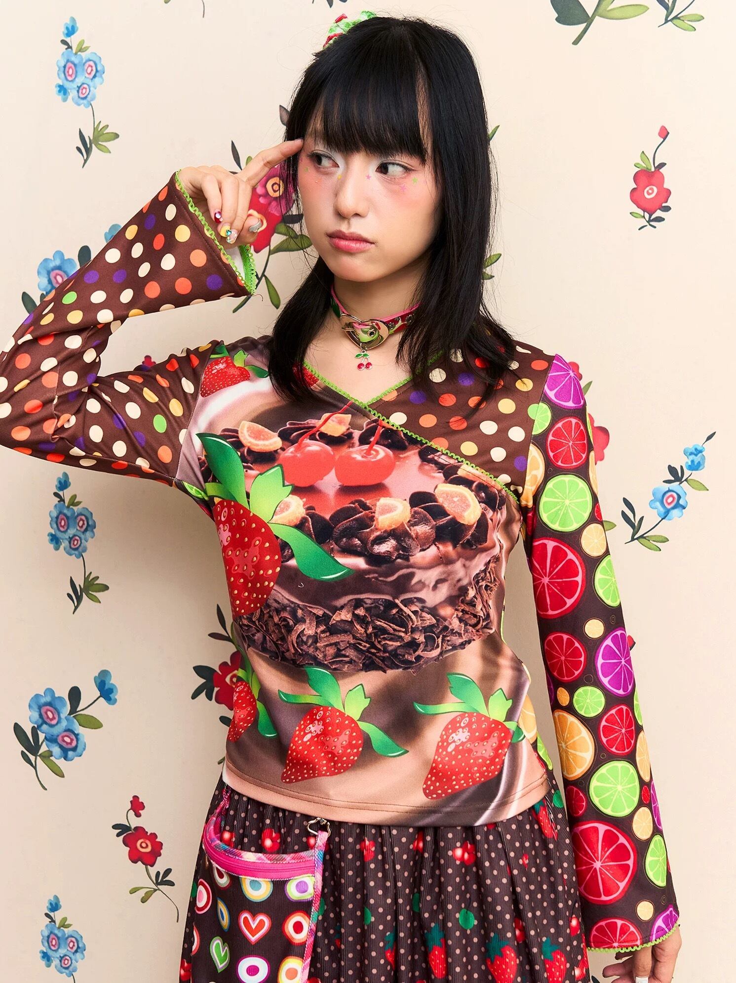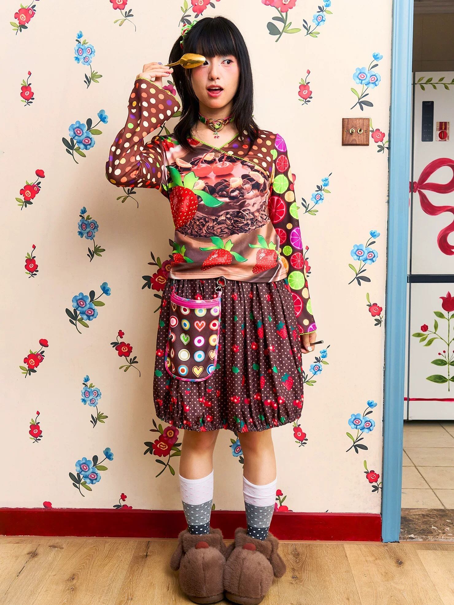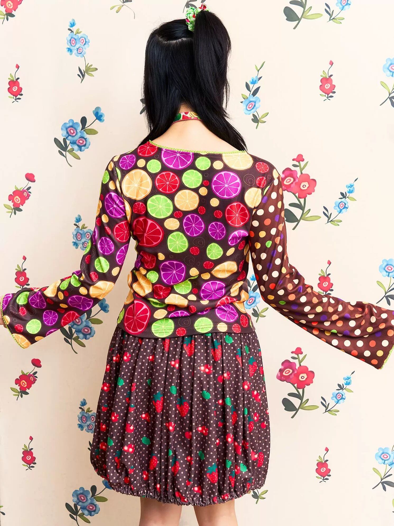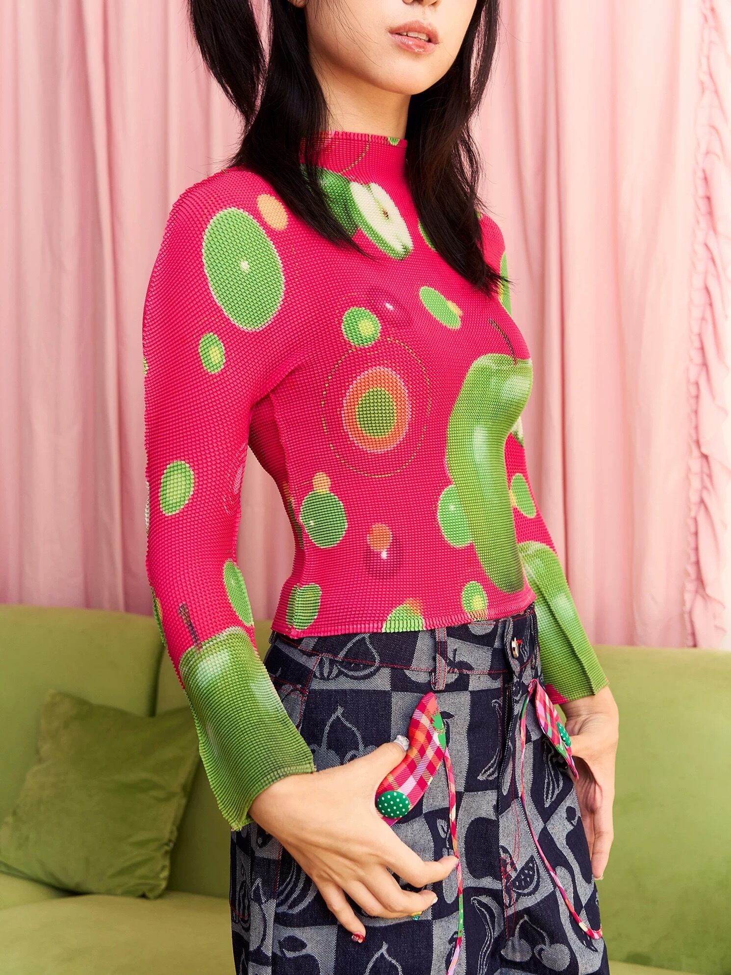 茶色 ピンク りんご 緑 ブラウス Tシャツ
