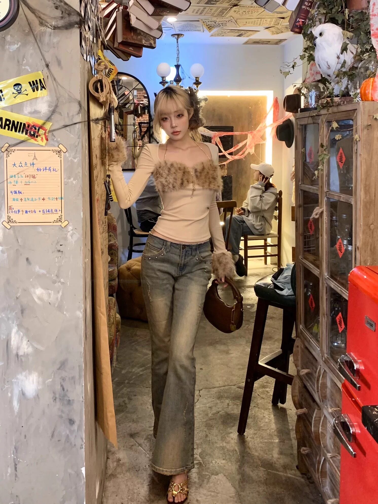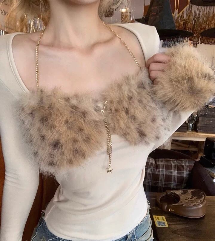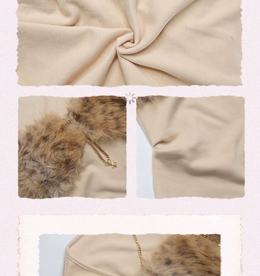 キャミソール ブラウス ベージュ レオパード ファー トップス