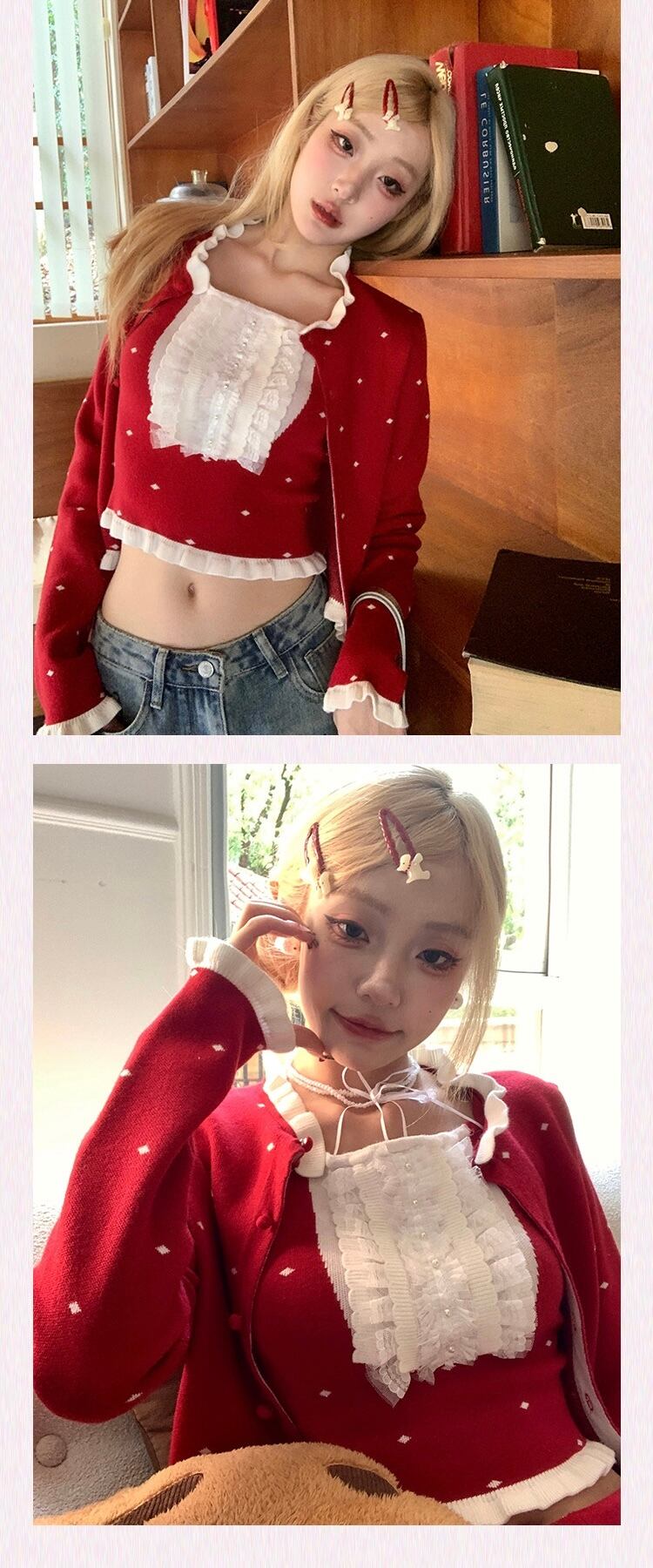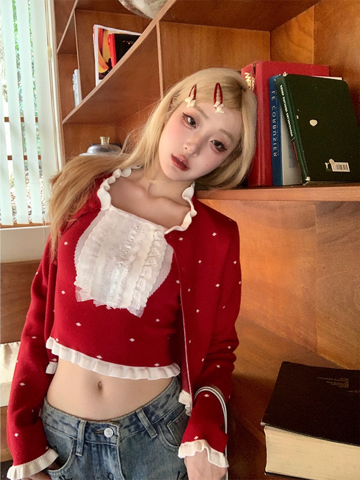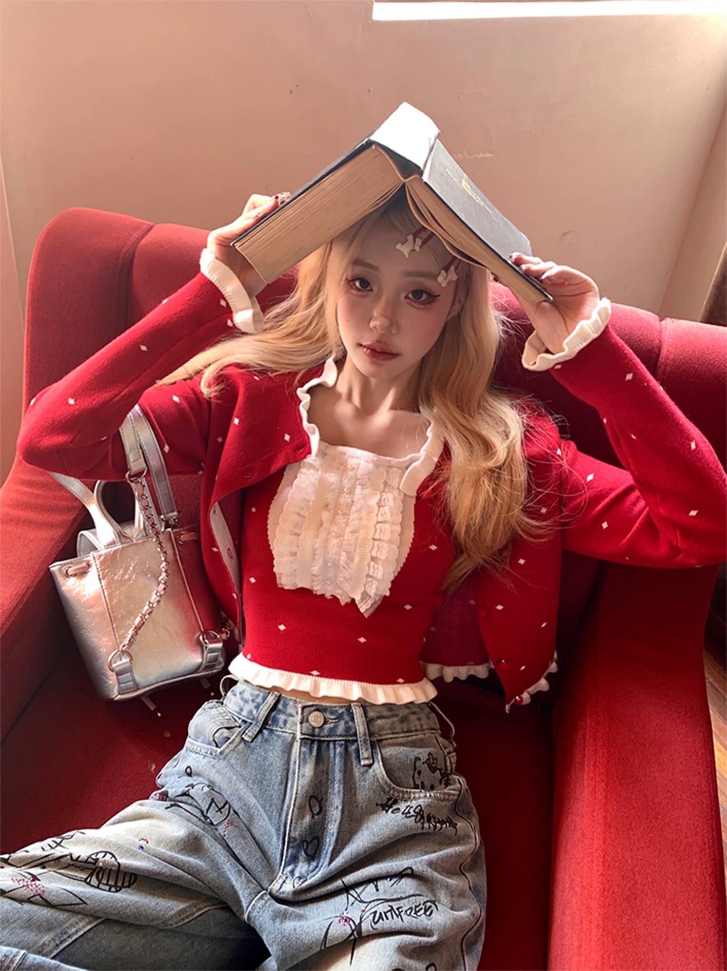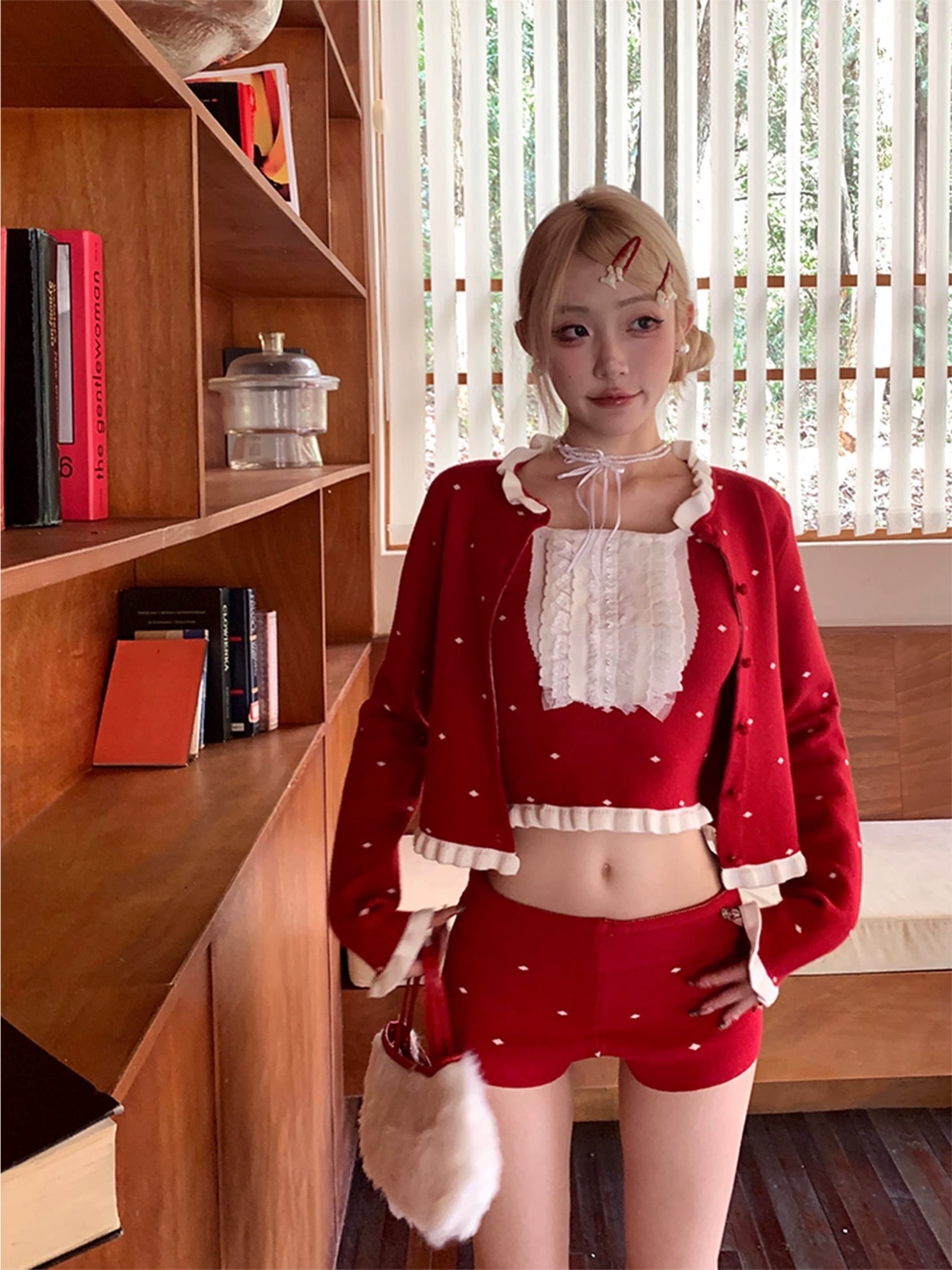 【3点セット】赤 カーディガン キャミソール 可愛い