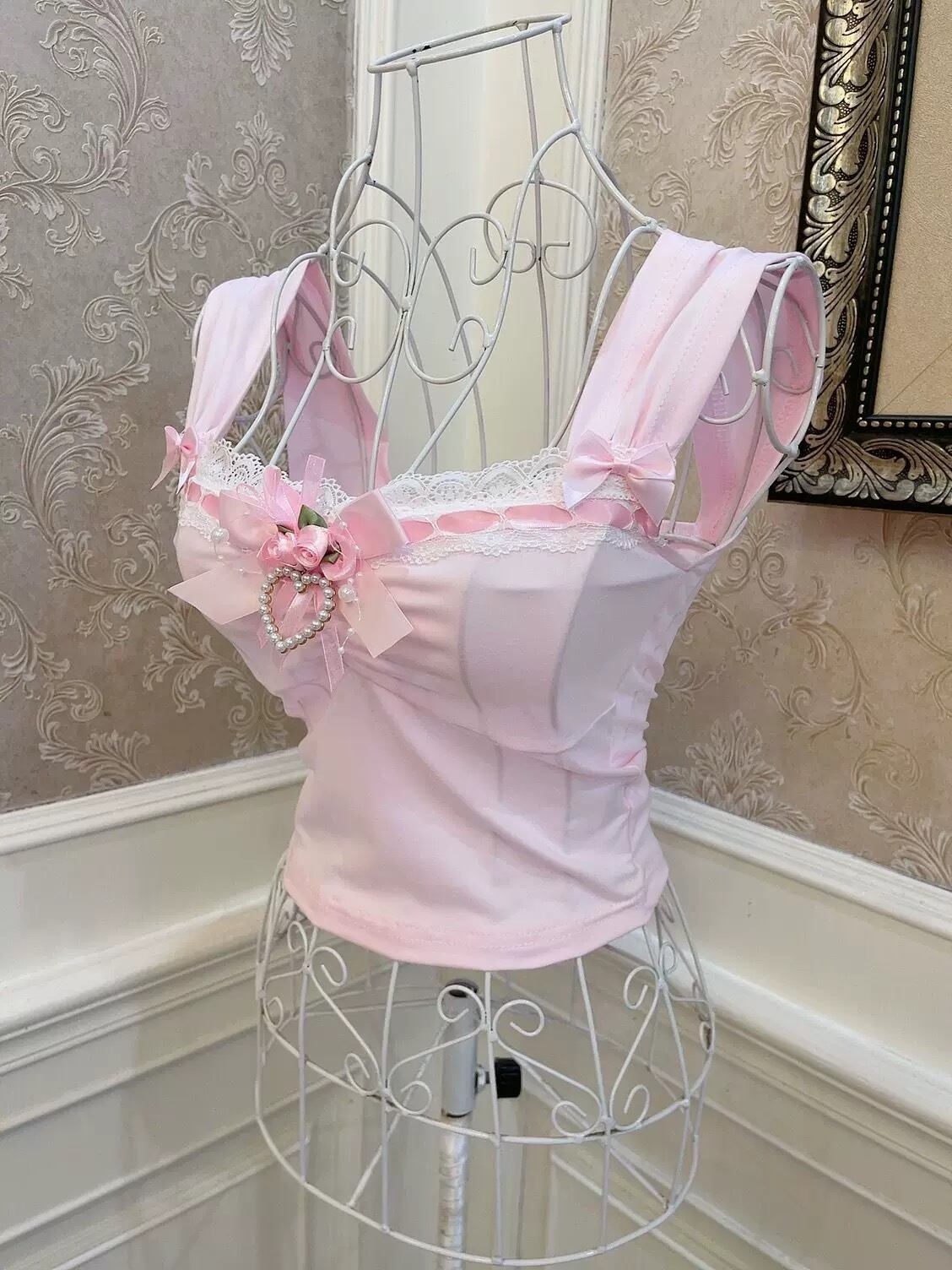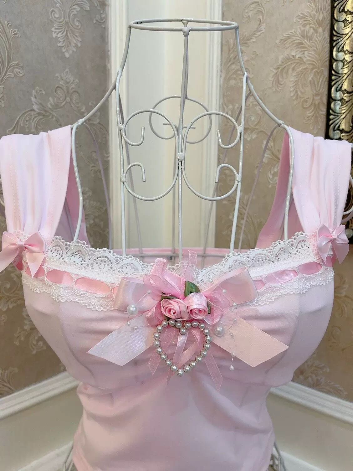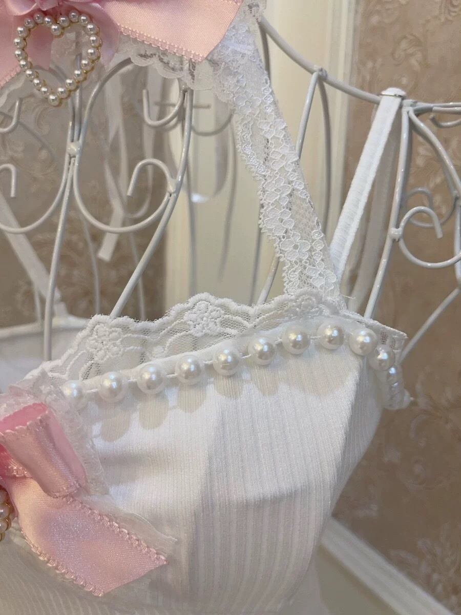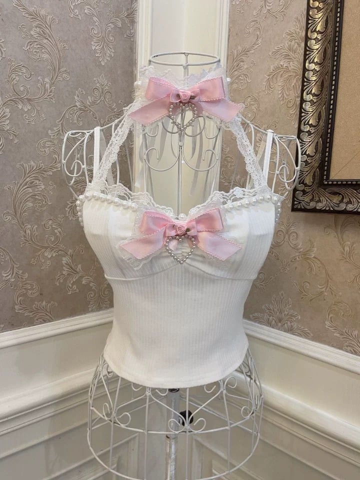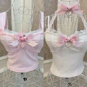キャミソール 白 リボン ピンク ブラウス ガーリー