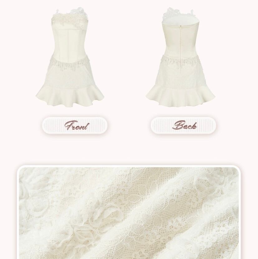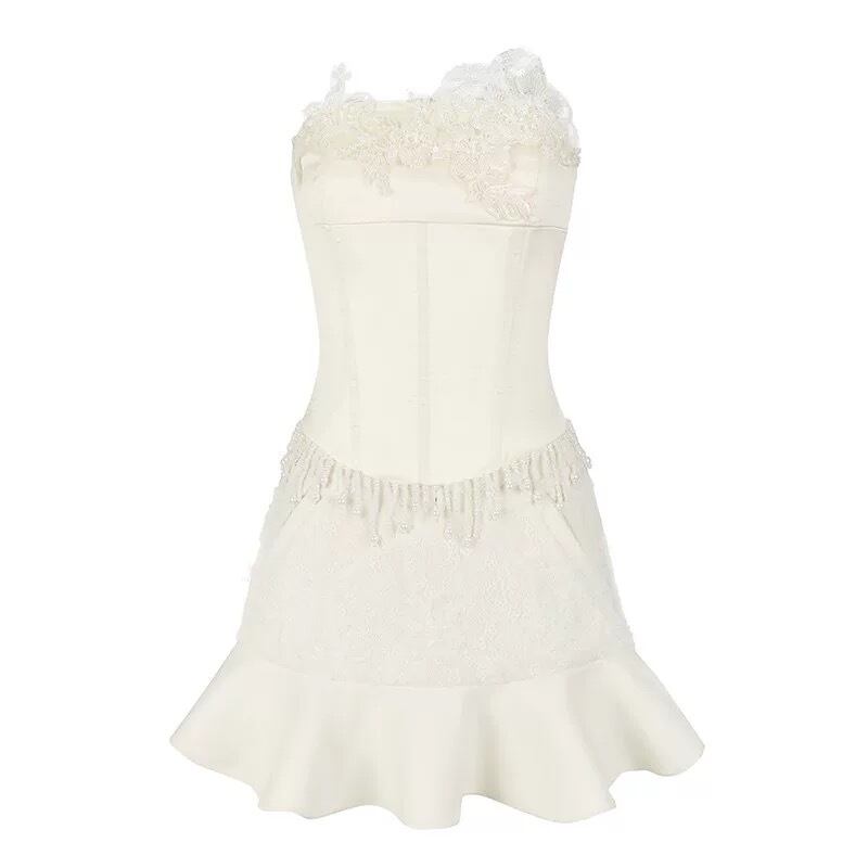 白 花柄 フラワー ドレス ベアトップ ワンピース