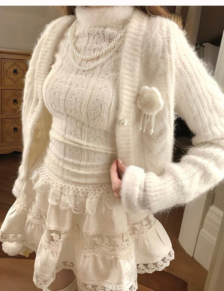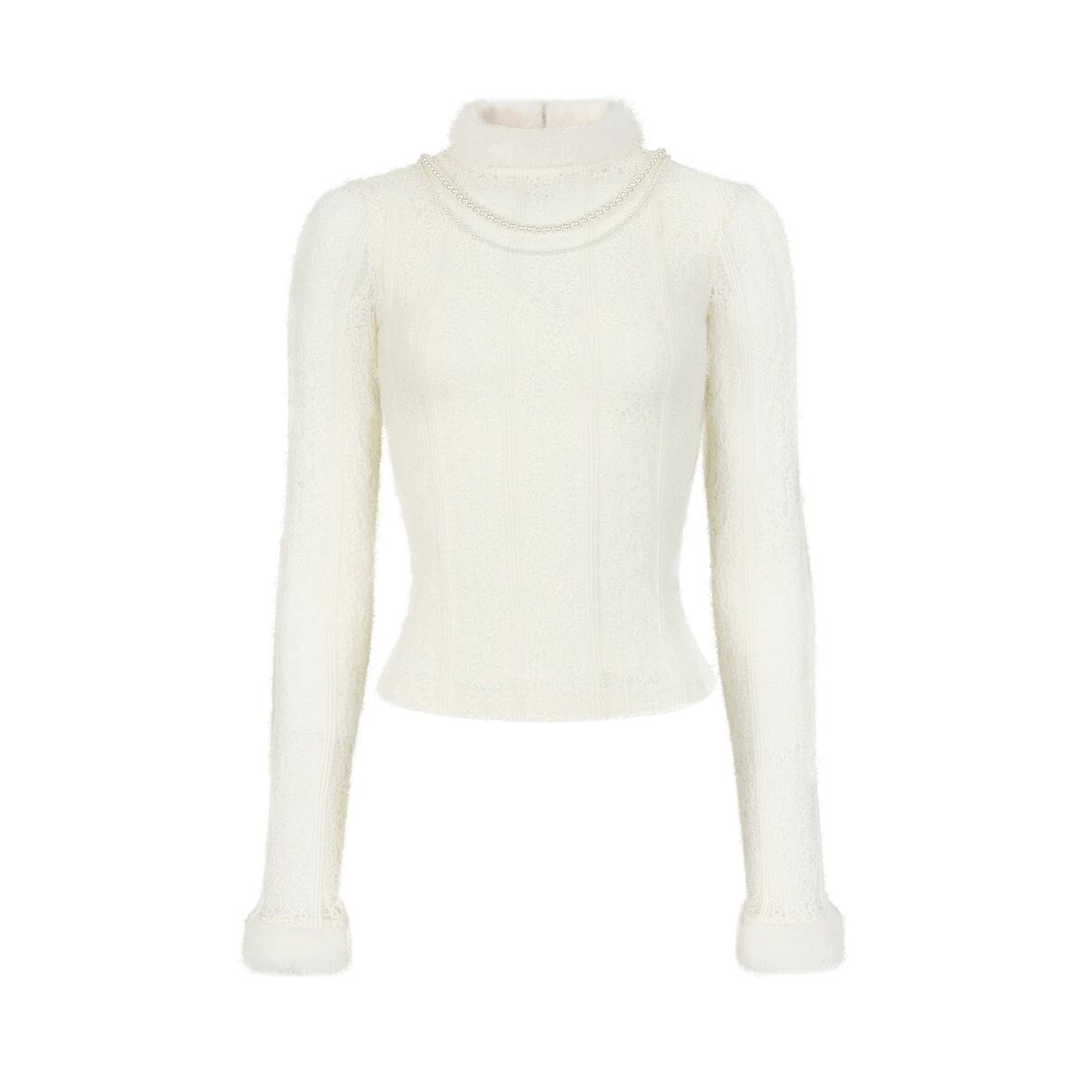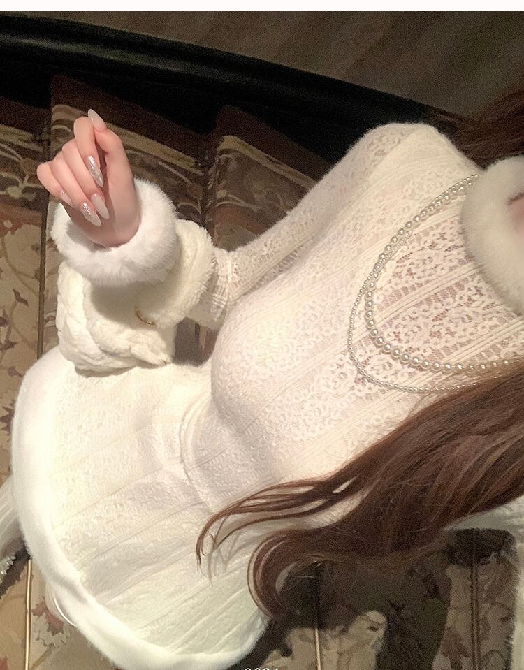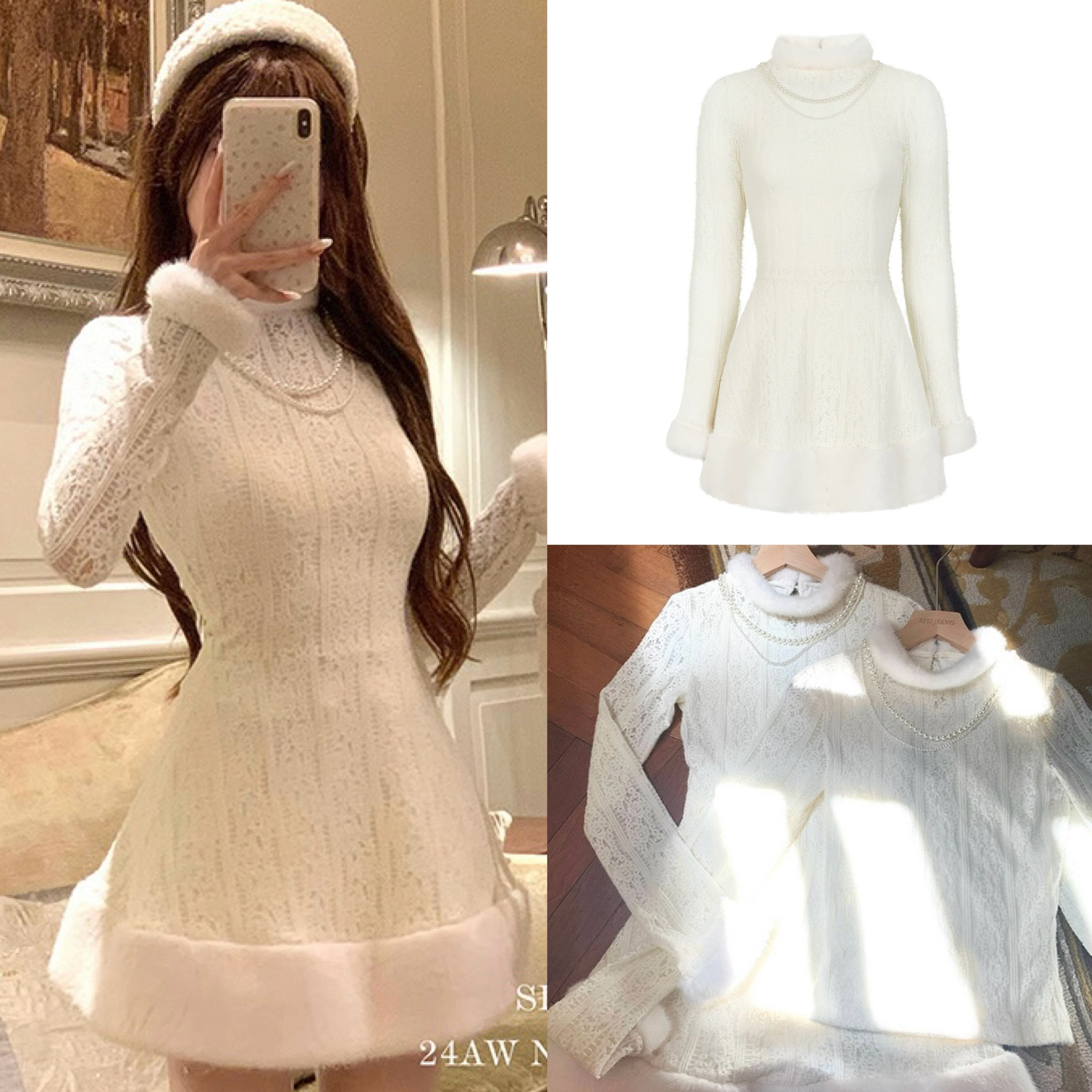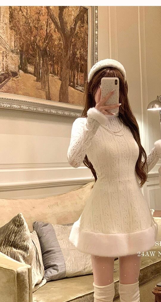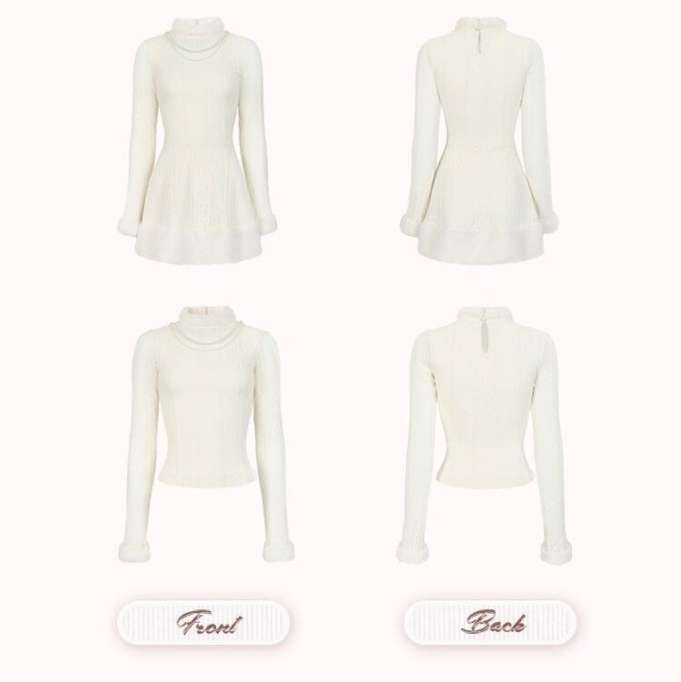 白 セーター 可愛い シンプル ホワイト ニット ハイネック ワンピース