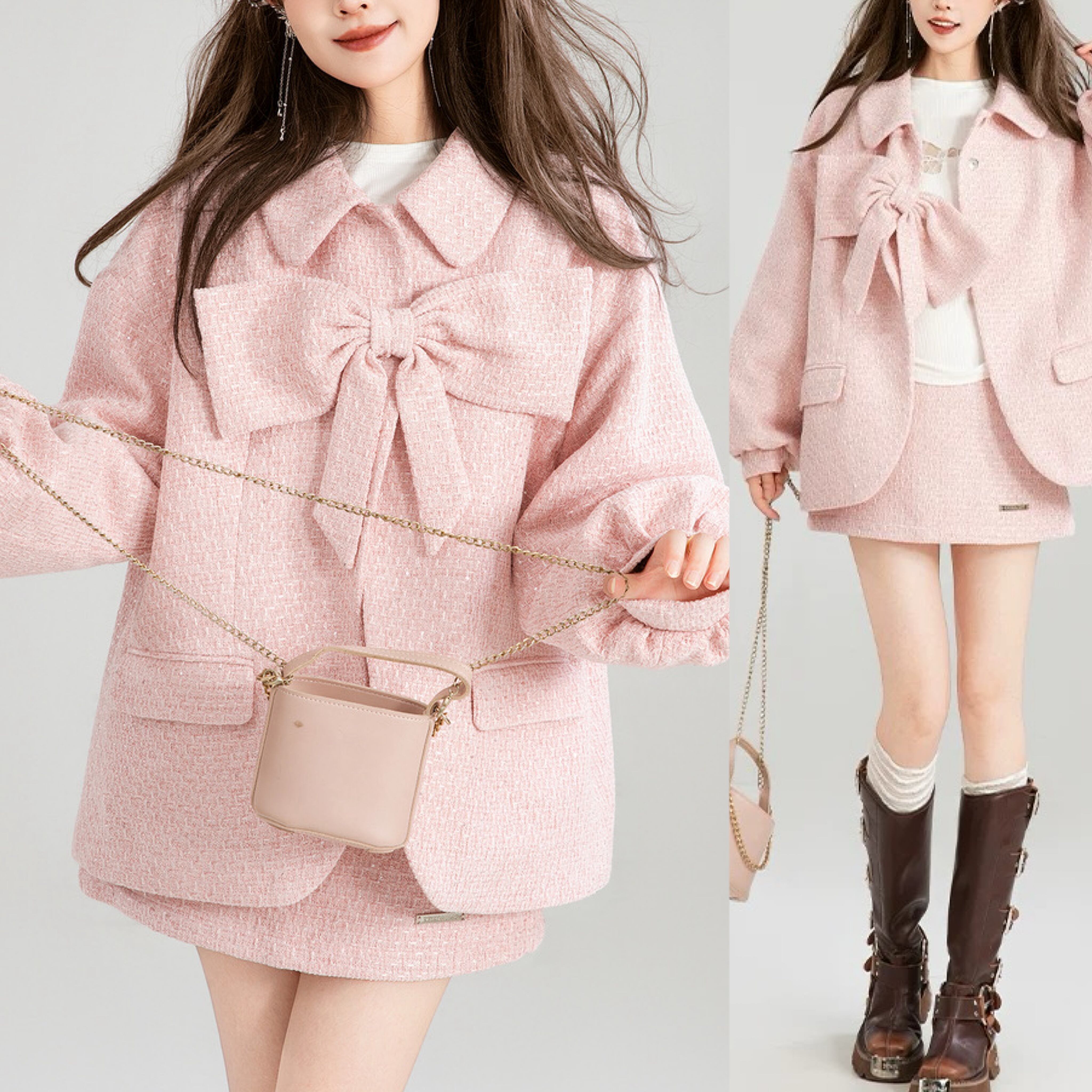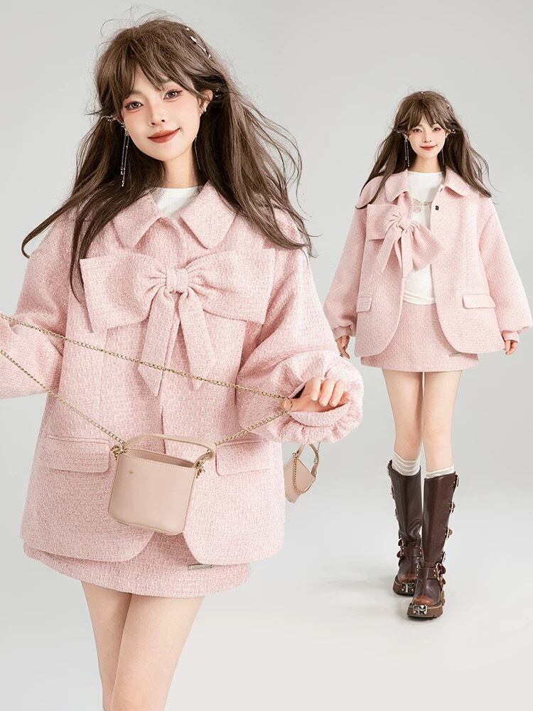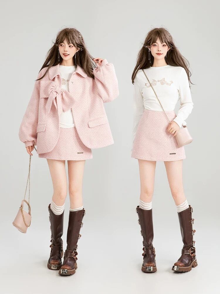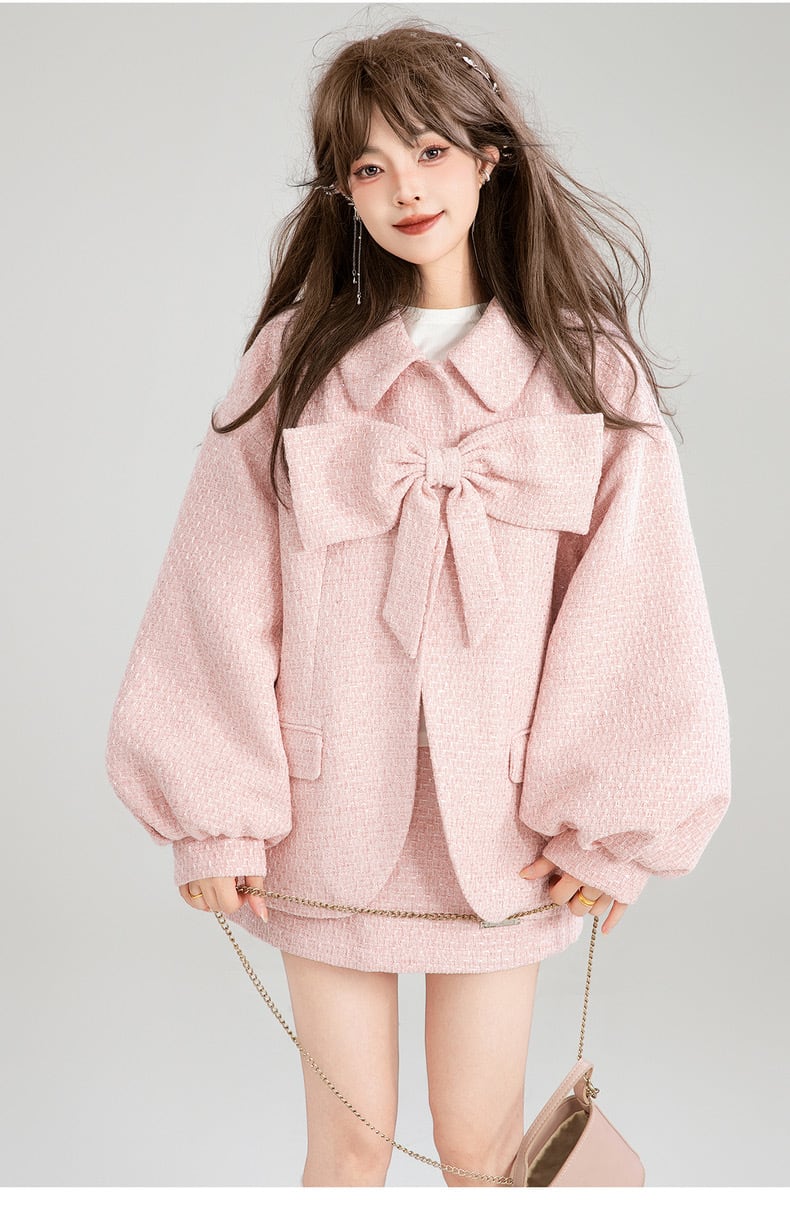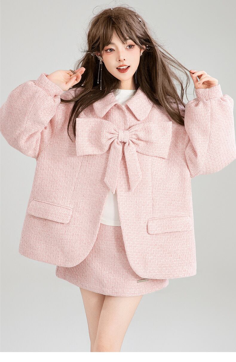 【ジャケット】ピンク リボン アウター コート
