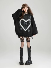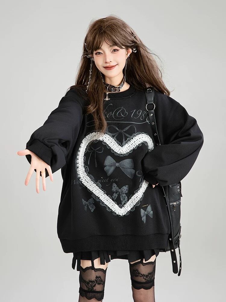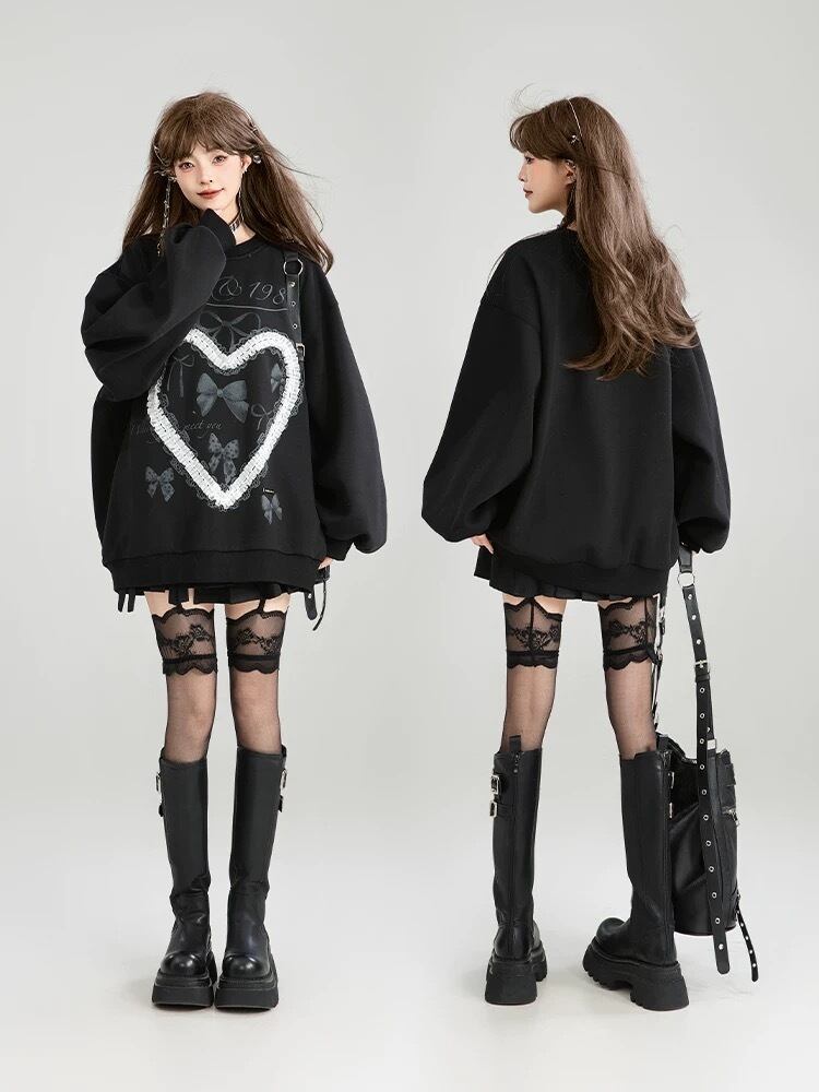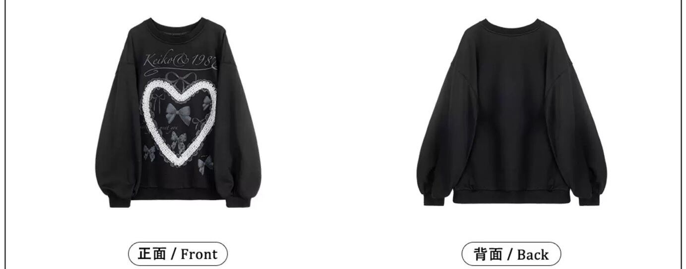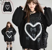 黒 ハート カジュアル パーカー スウェット トレーナー
