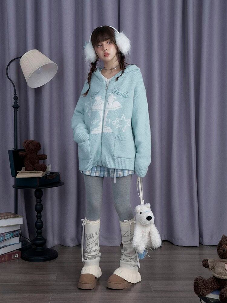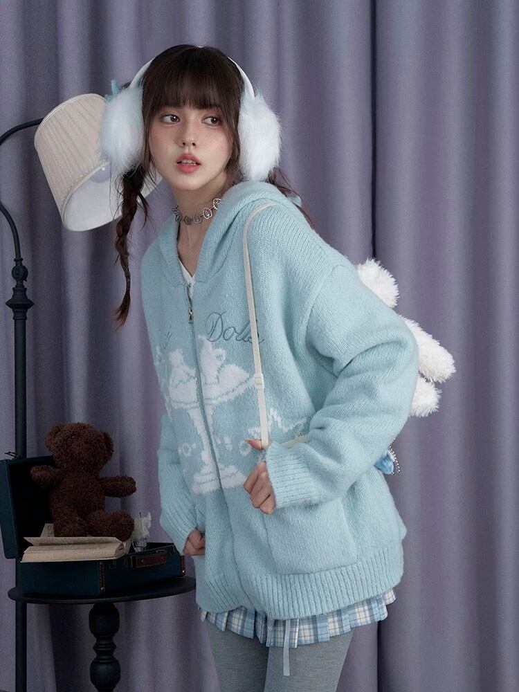 ニット 水色 セーター ガーリー カジュアル トップス