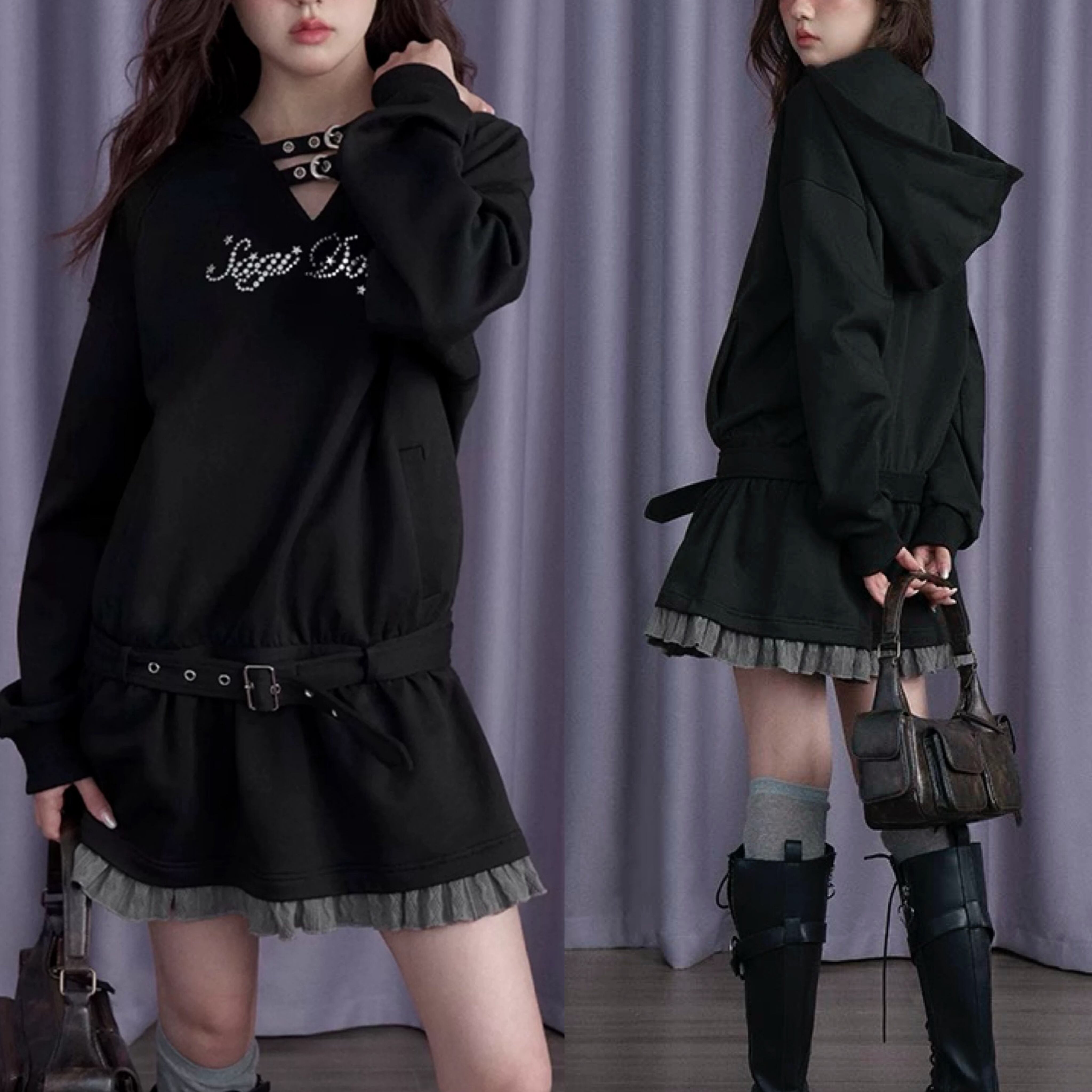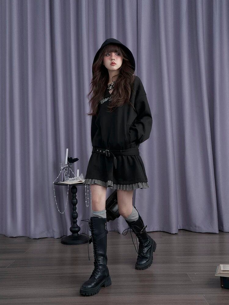 黒 ワンピース ガーリー ブラック カジュアル 可愛い