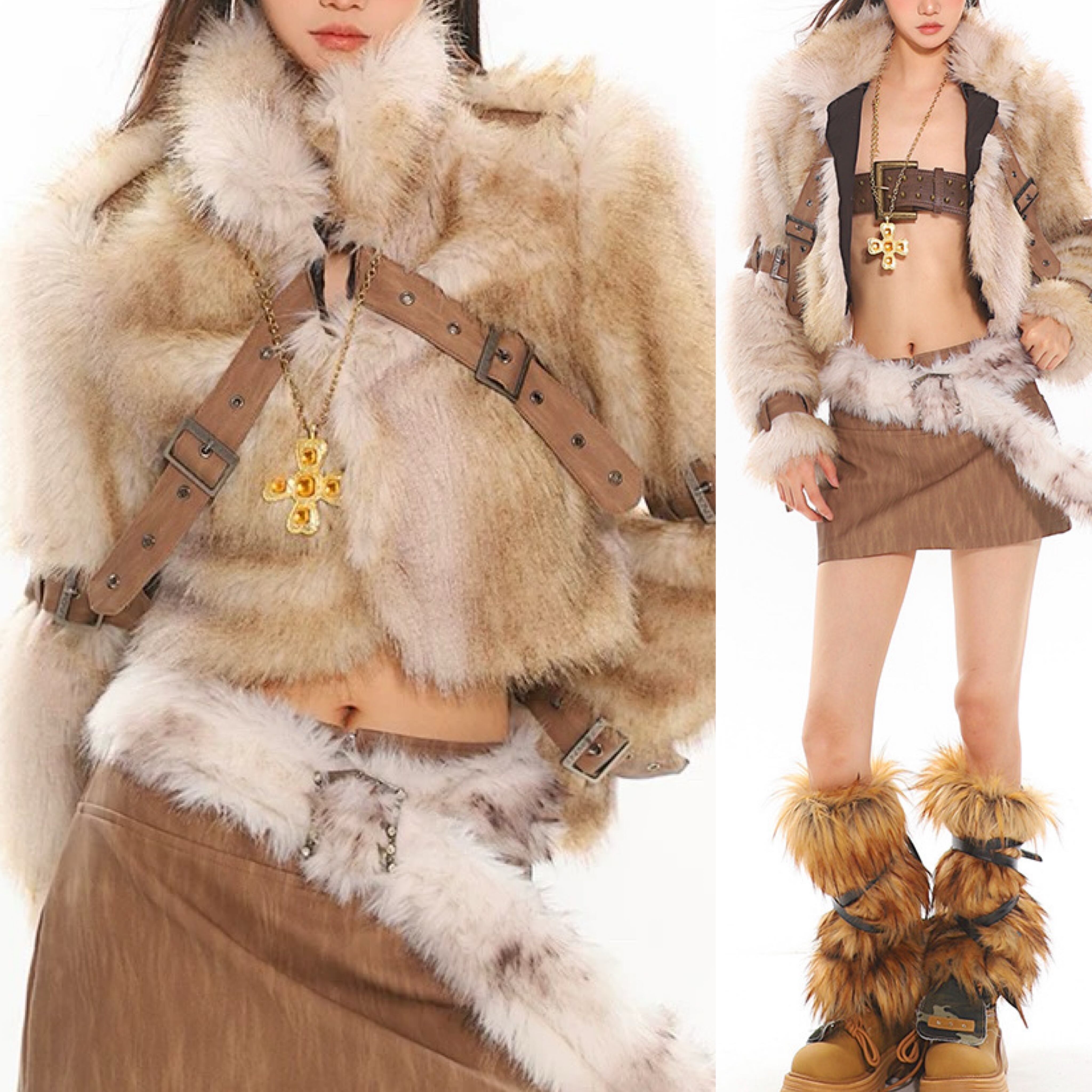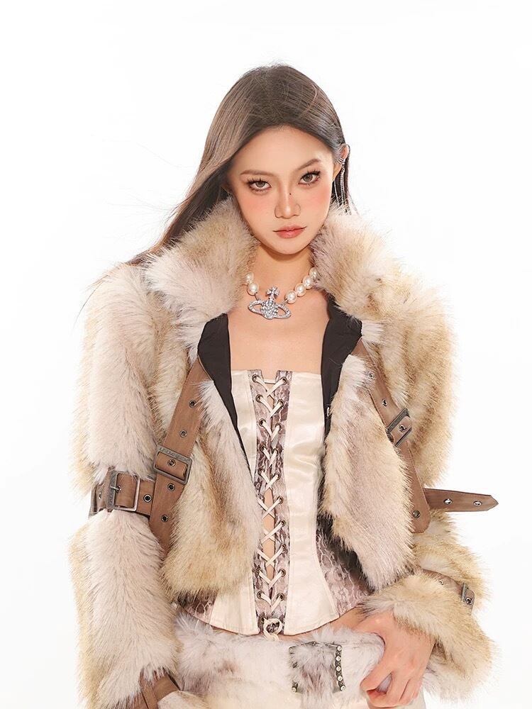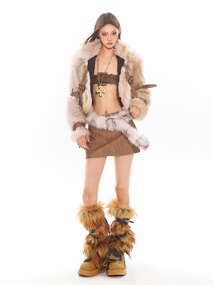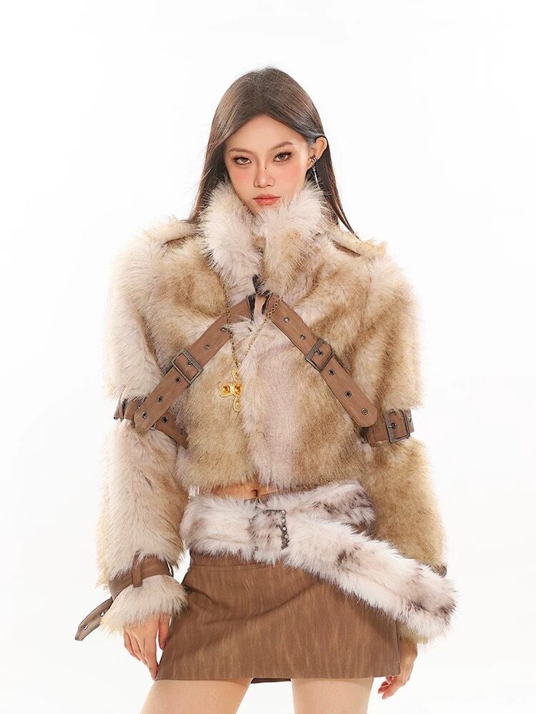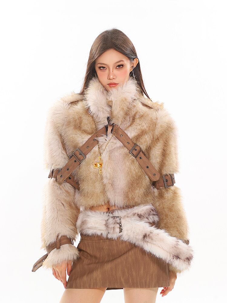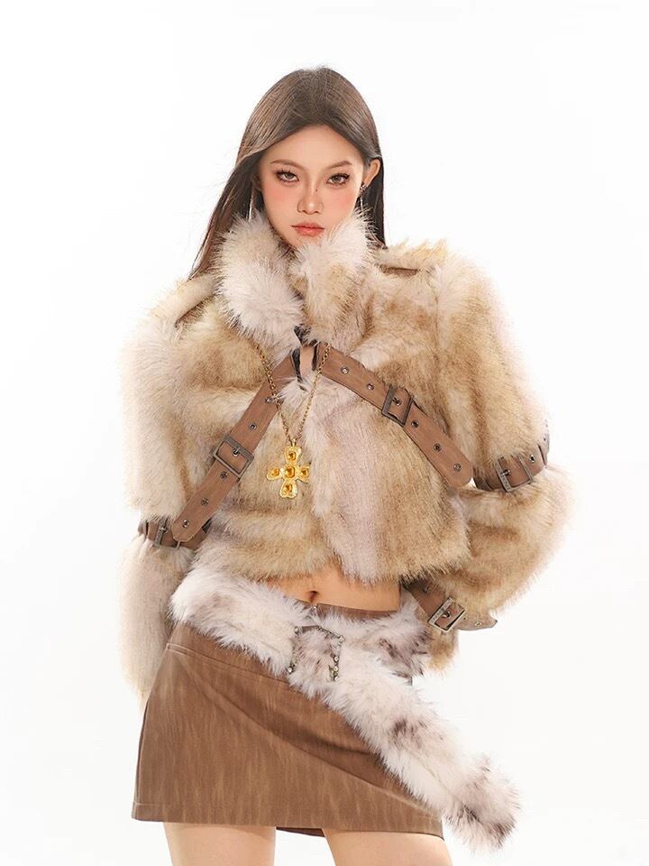 ベージュ ベルト ファー コート ジャケット アウター