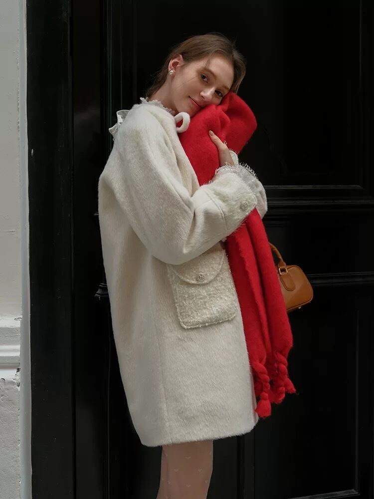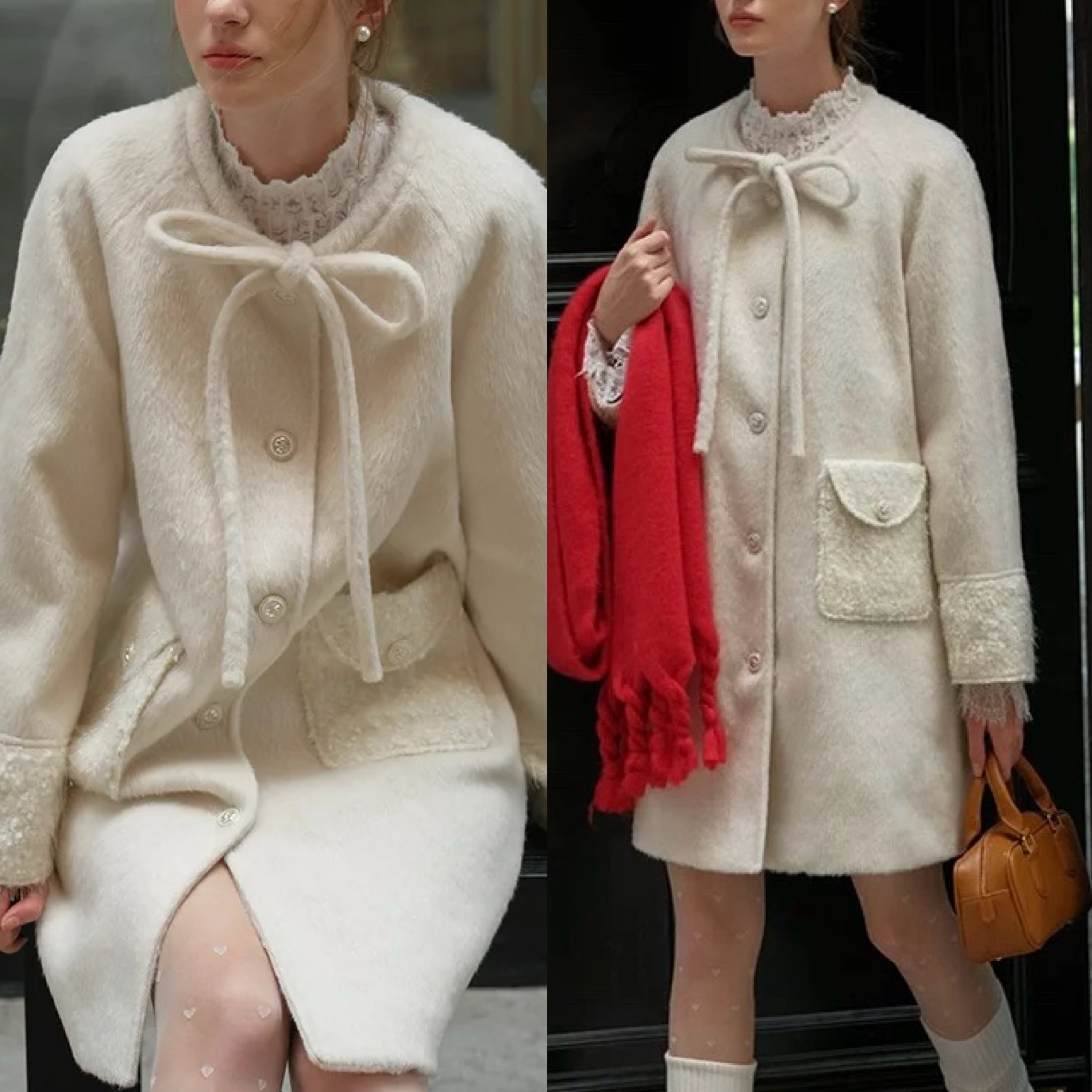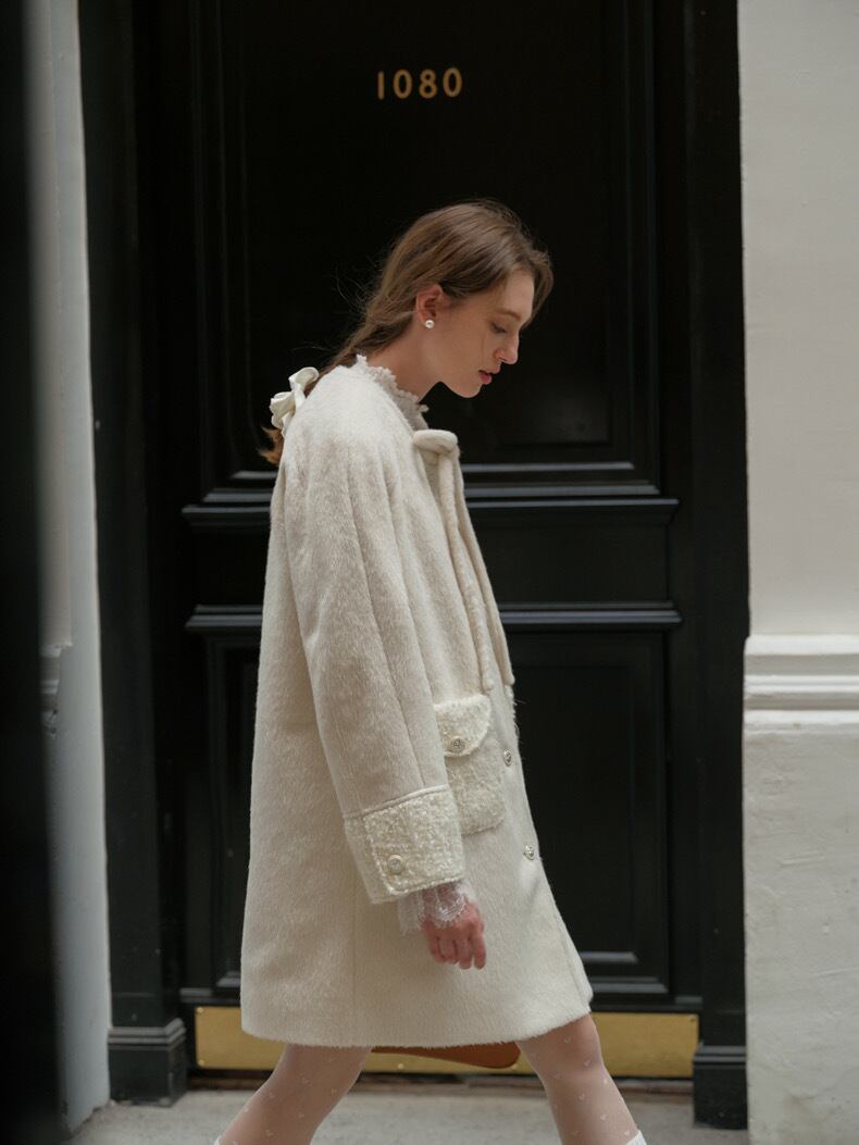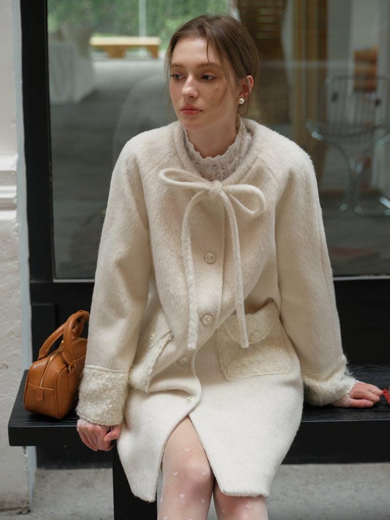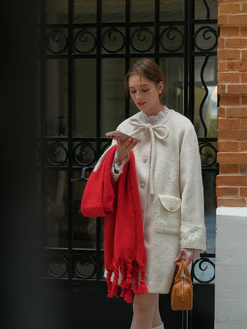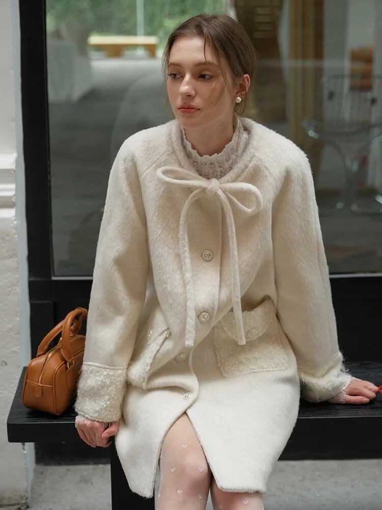 白 ホワイト リボン ガーリー コート アウター ジャケット