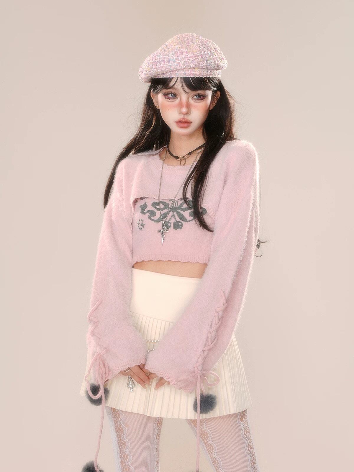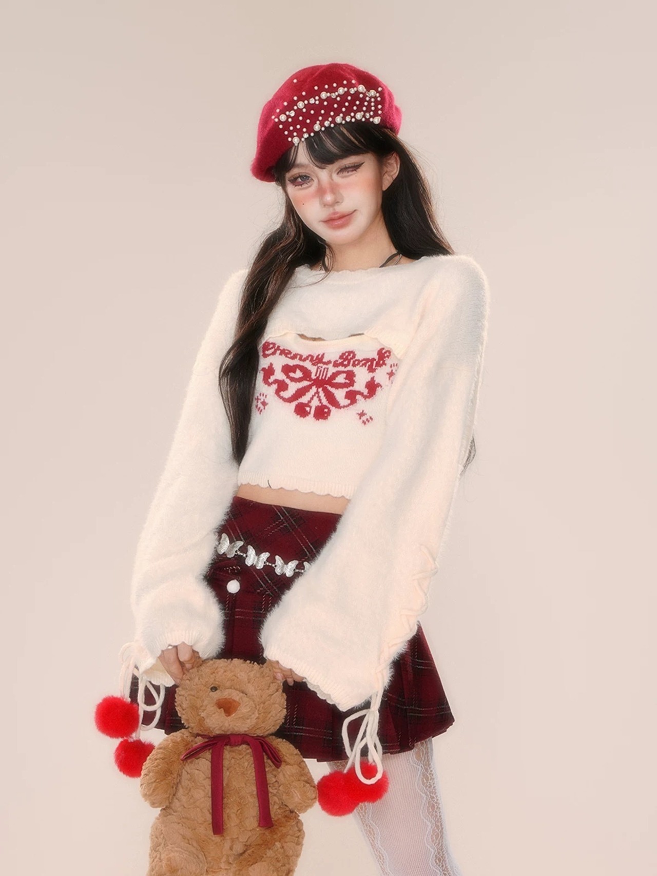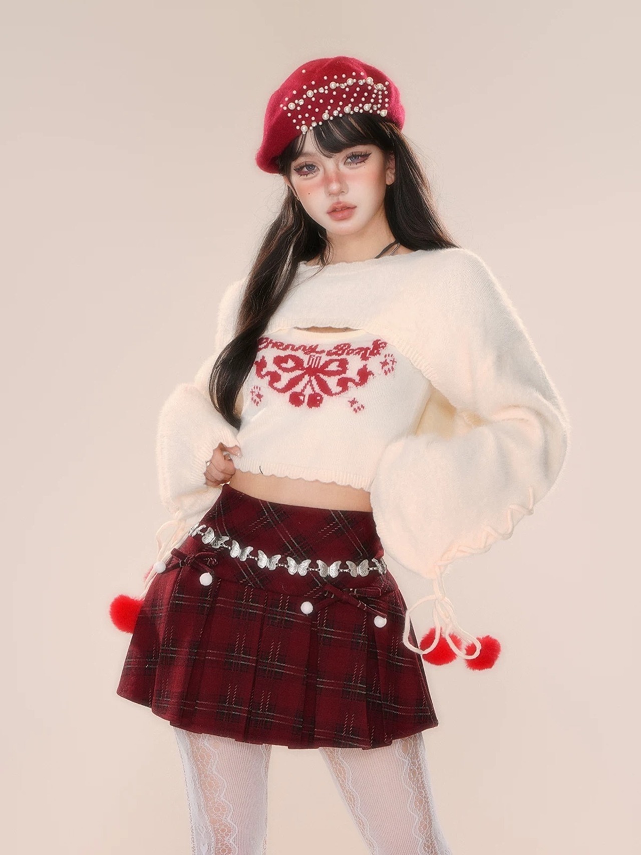 トップス セーター ブラウス 白 赤 キャミソール