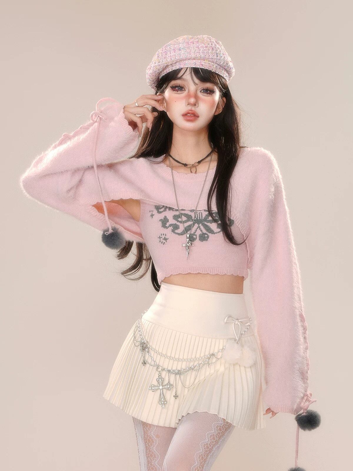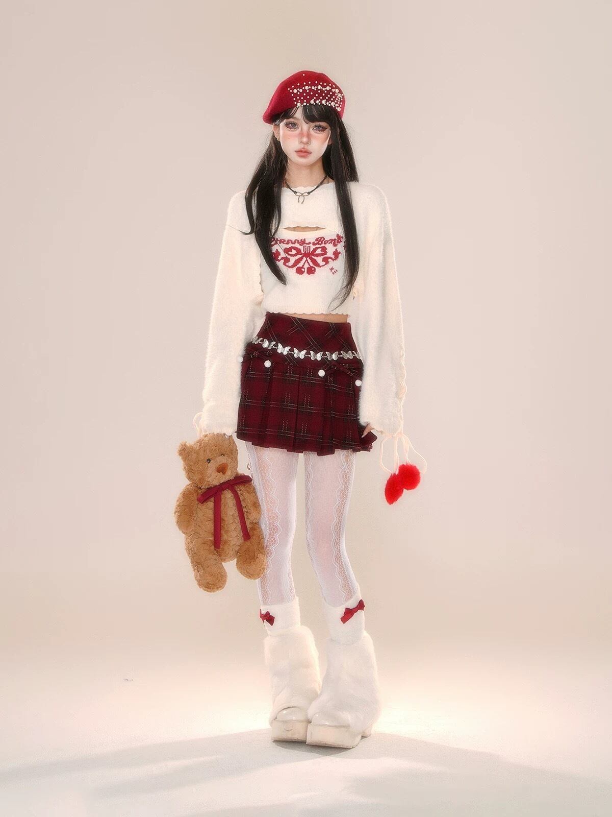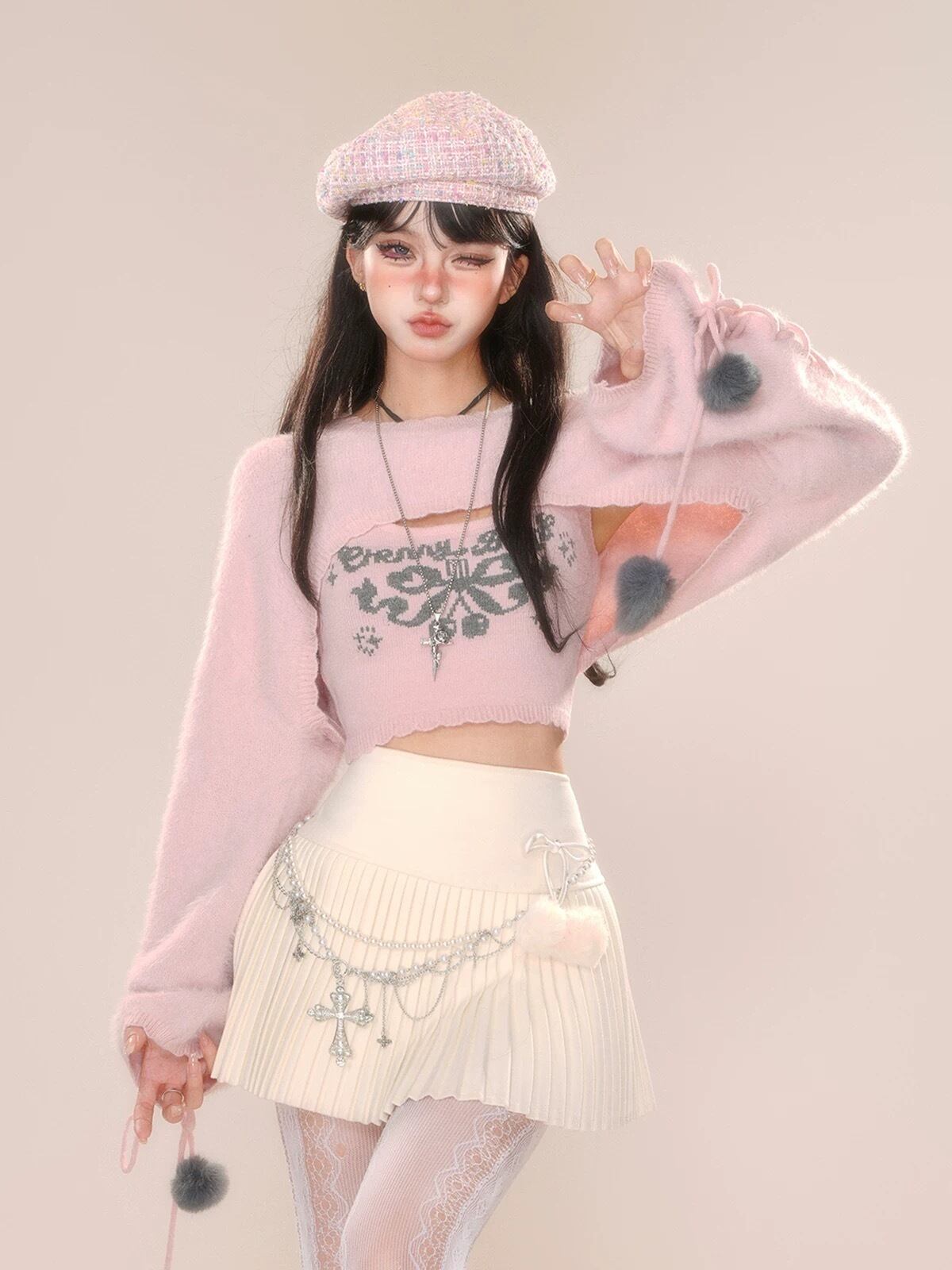 トップス セーター ブラウス 白 赤 キャミソール