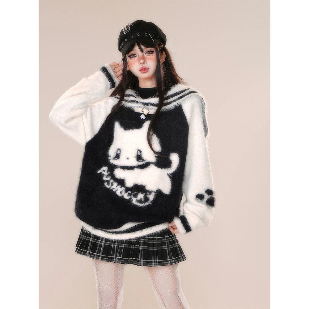 茶色 黒 ピンク ねこ XL ガーリー セーター