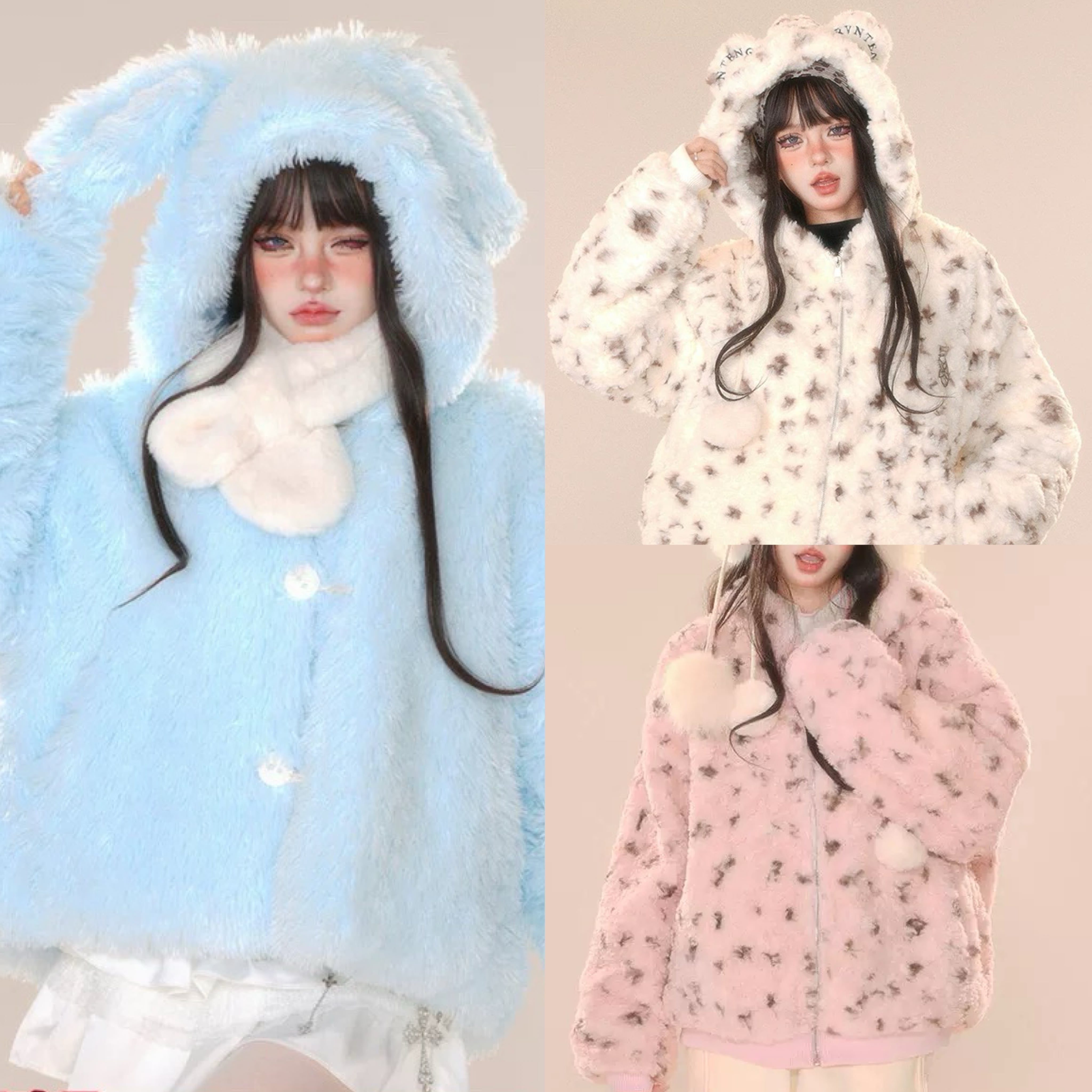 水色 うさぎ 白 くま ピンク 豹柄 アウター ジャケット コート