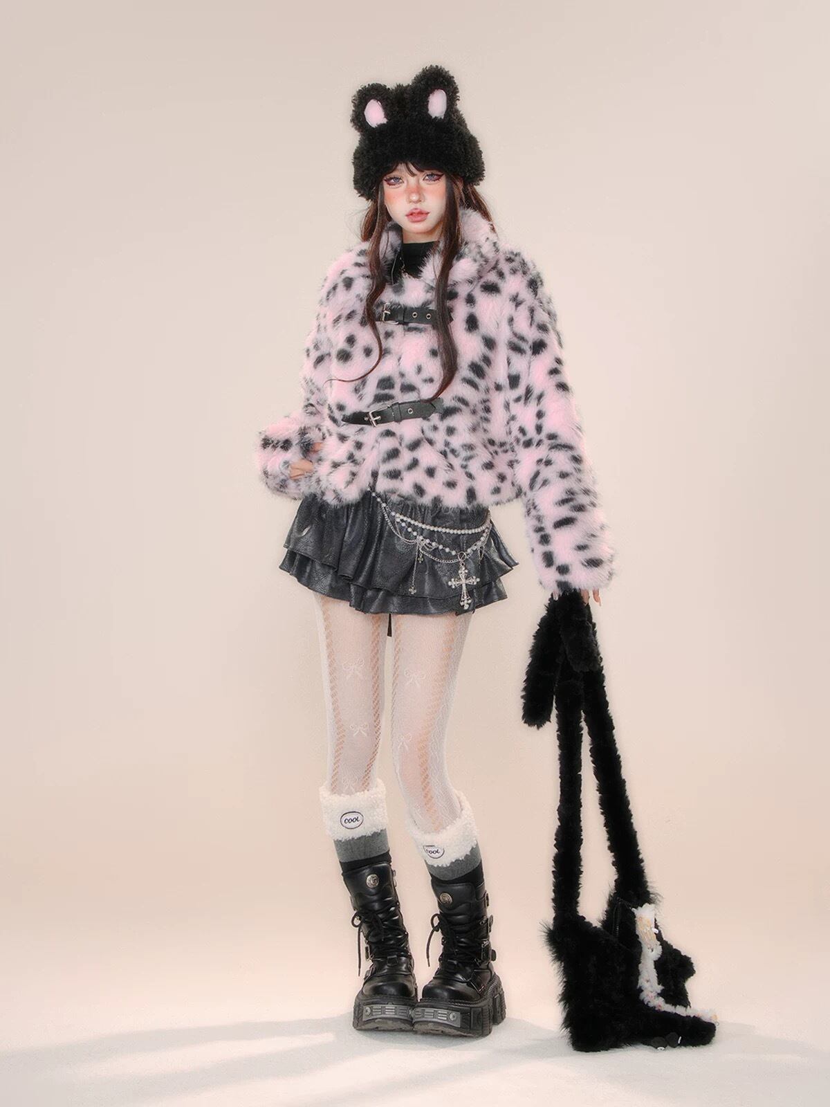 レオパード ファー アウター コート 白 ピンク ジャケット