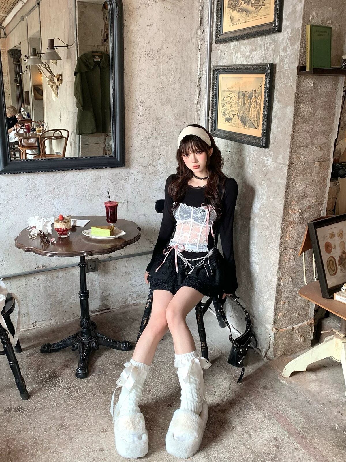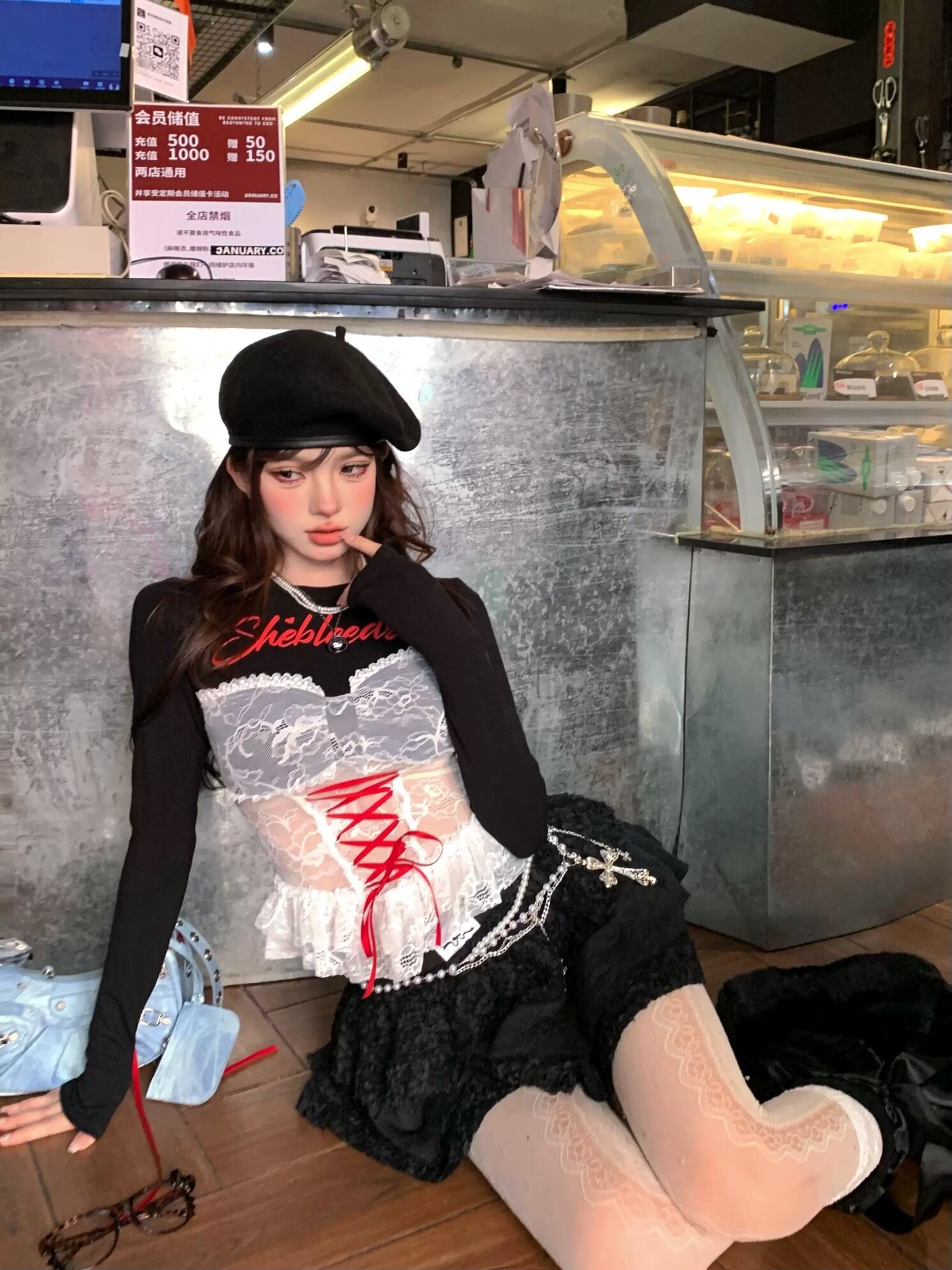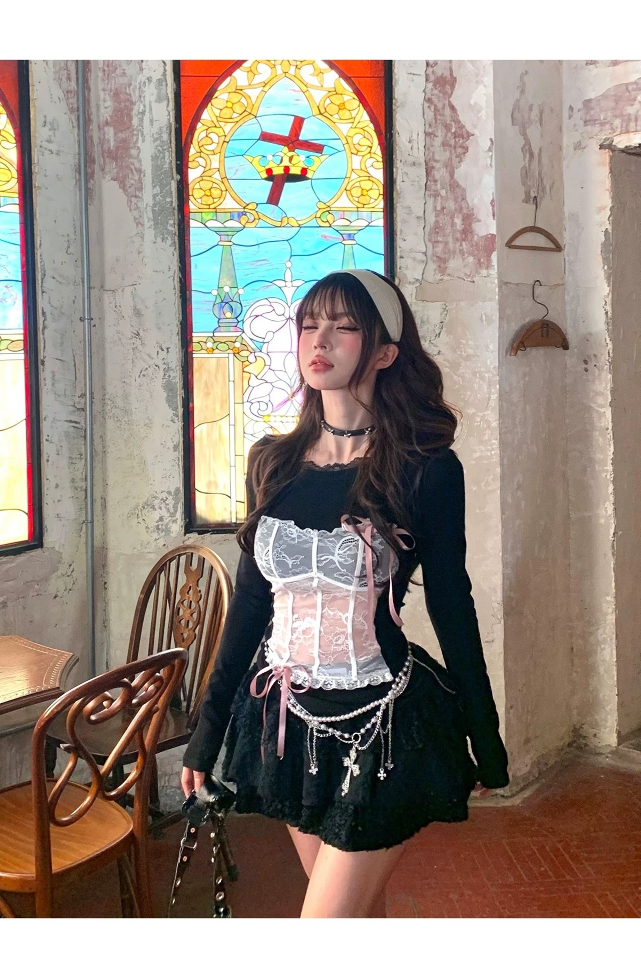 赤リボン ピンクリボン ガーリー ブラウス トップス