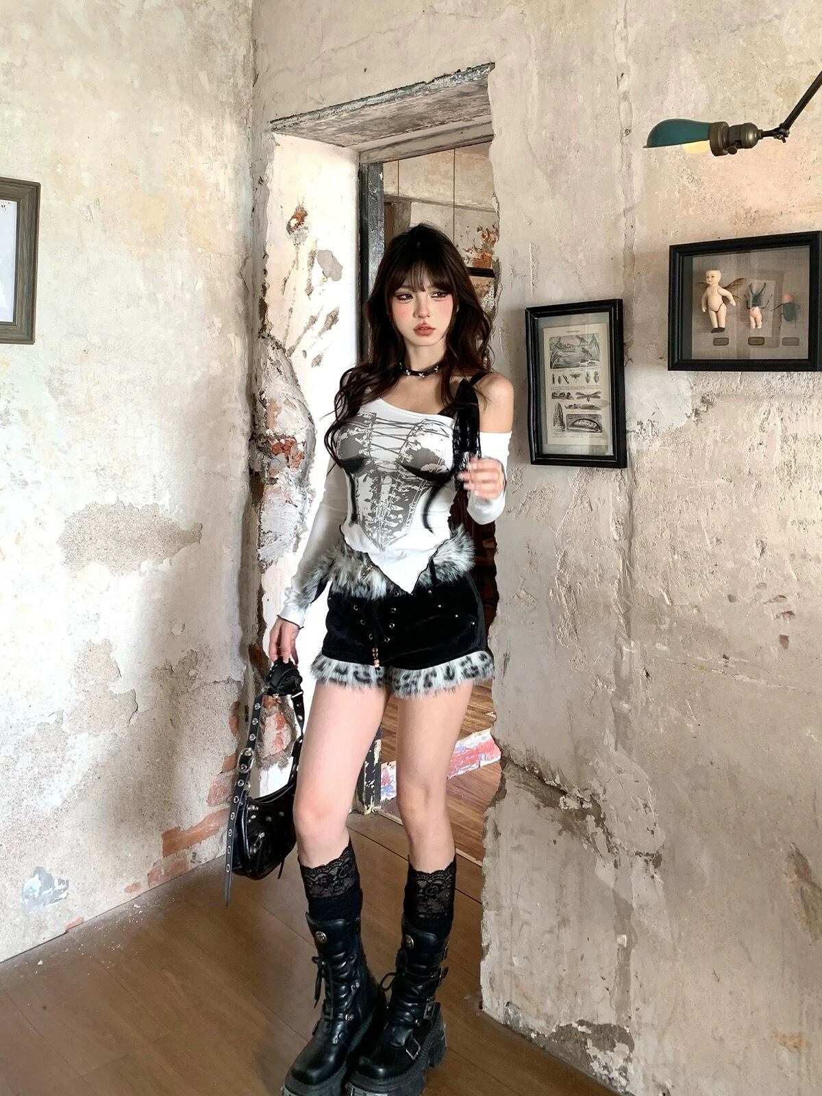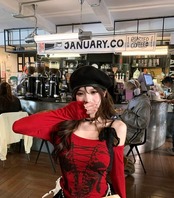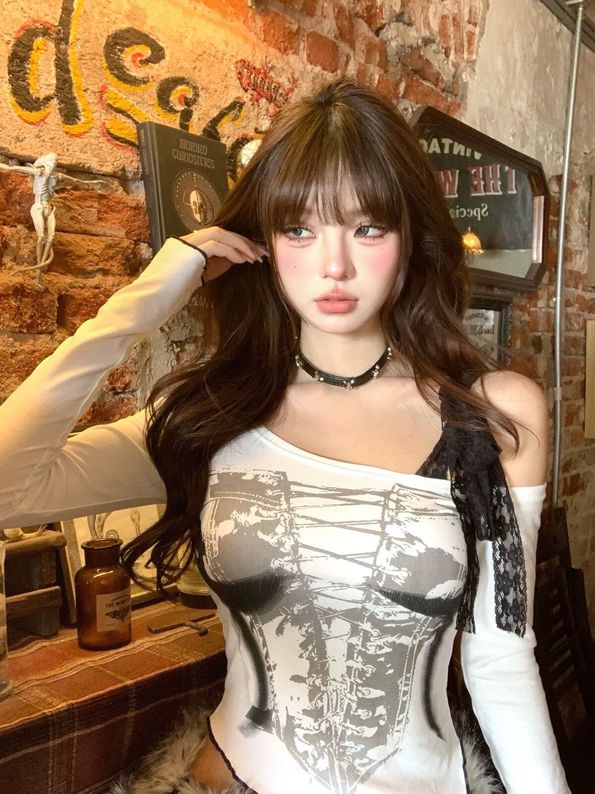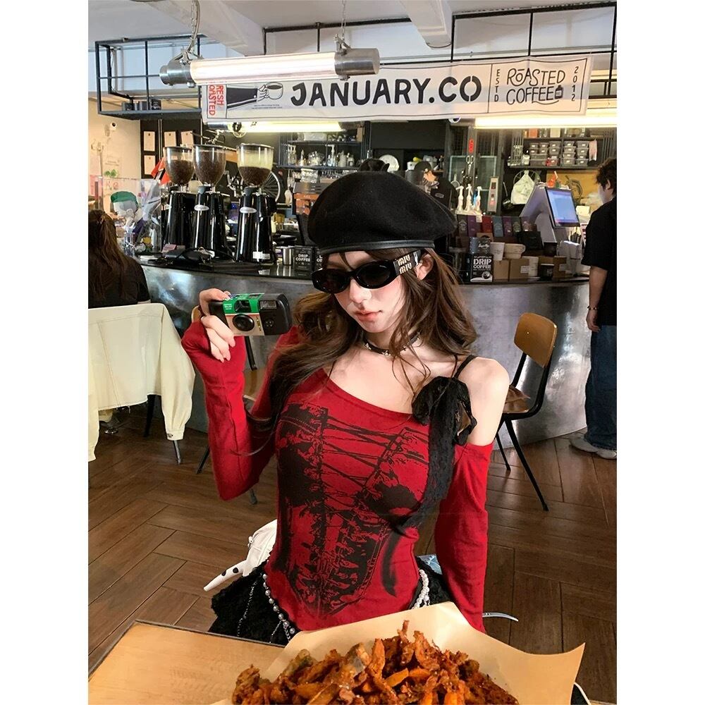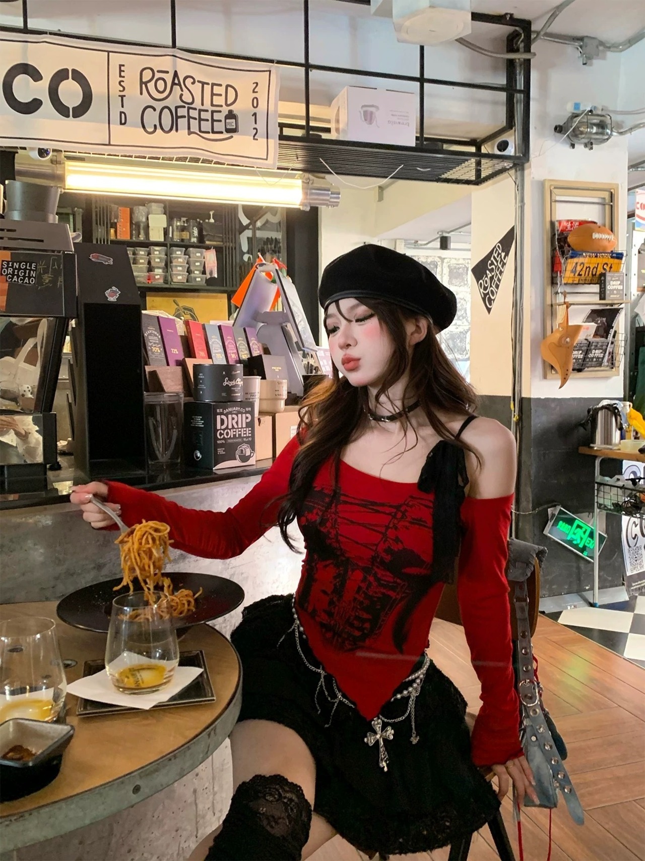 オフショルダー 赤 白 リボン ガーリー ブラウス