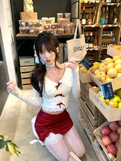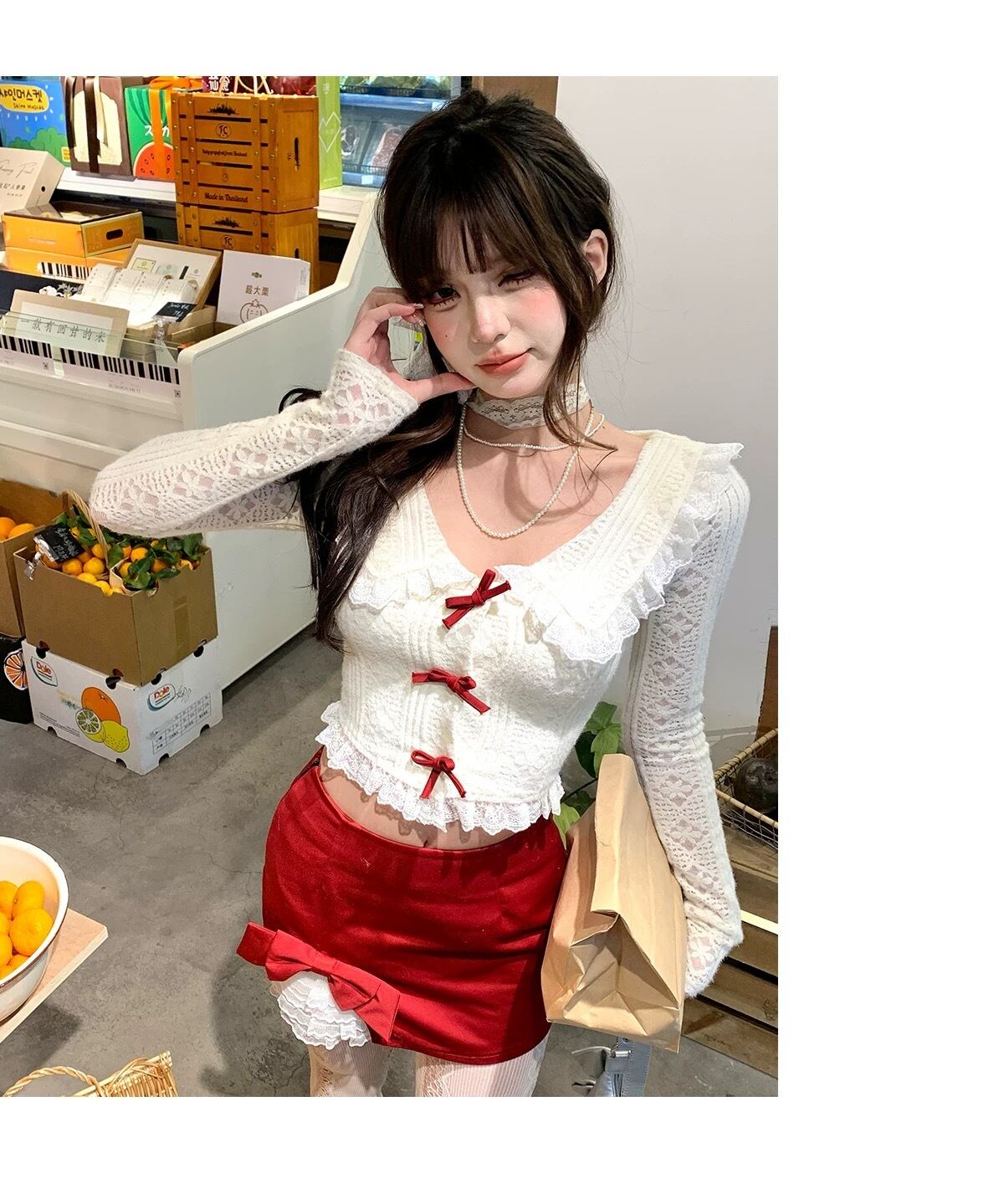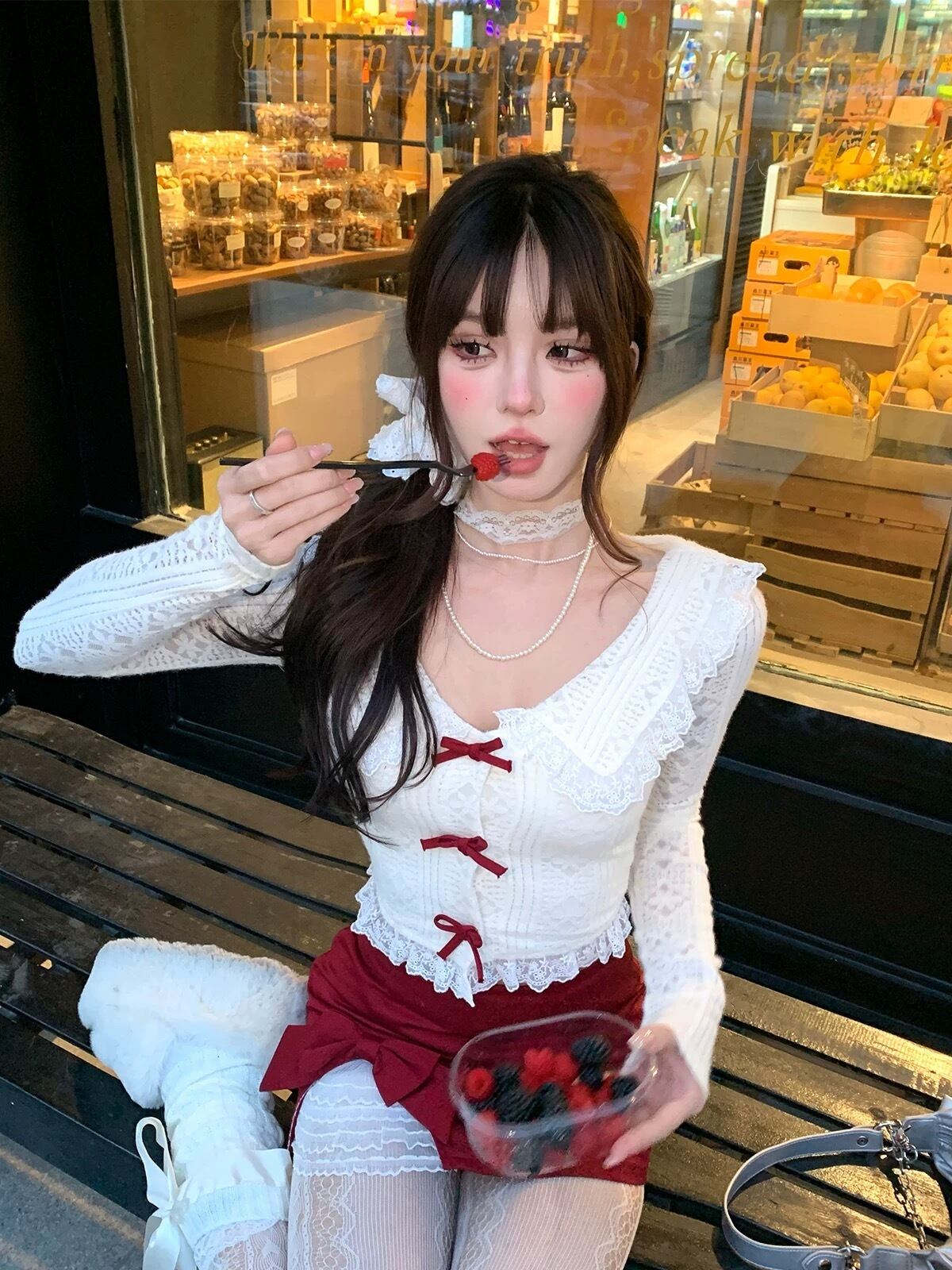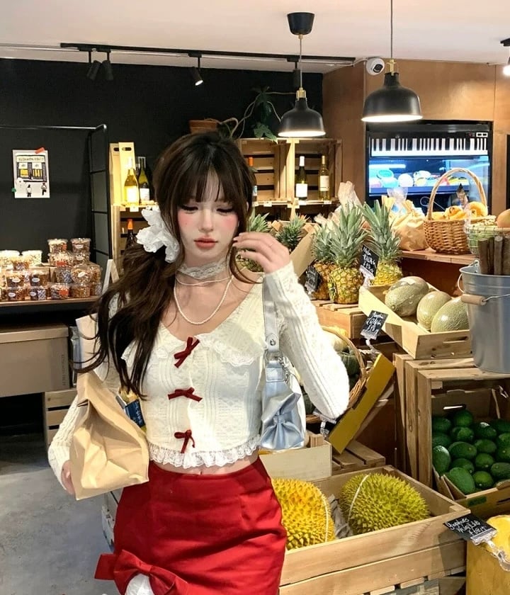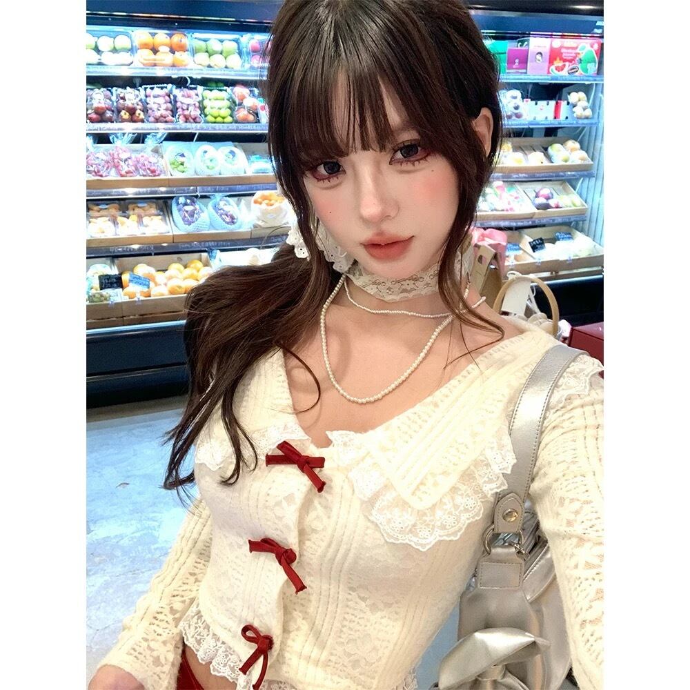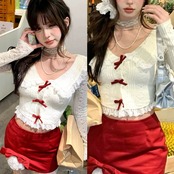 赤 リボン セーター ブラウス カーディガン スカート ガーリー