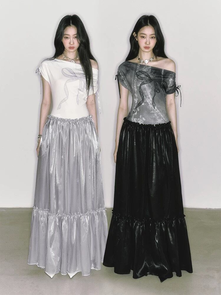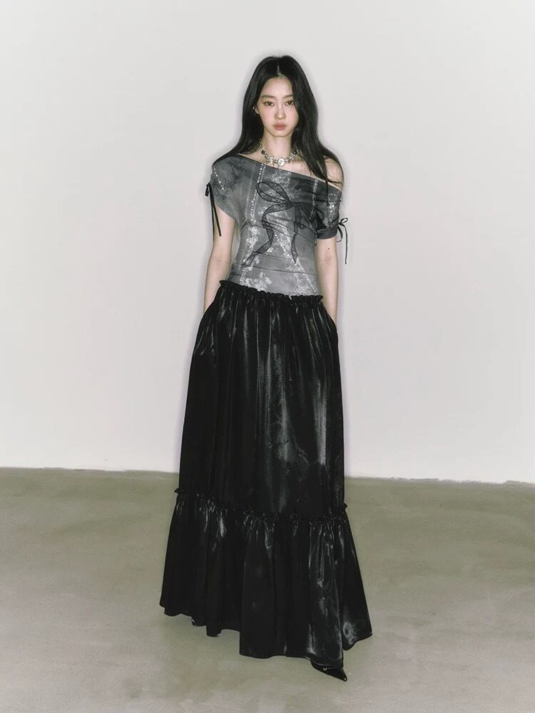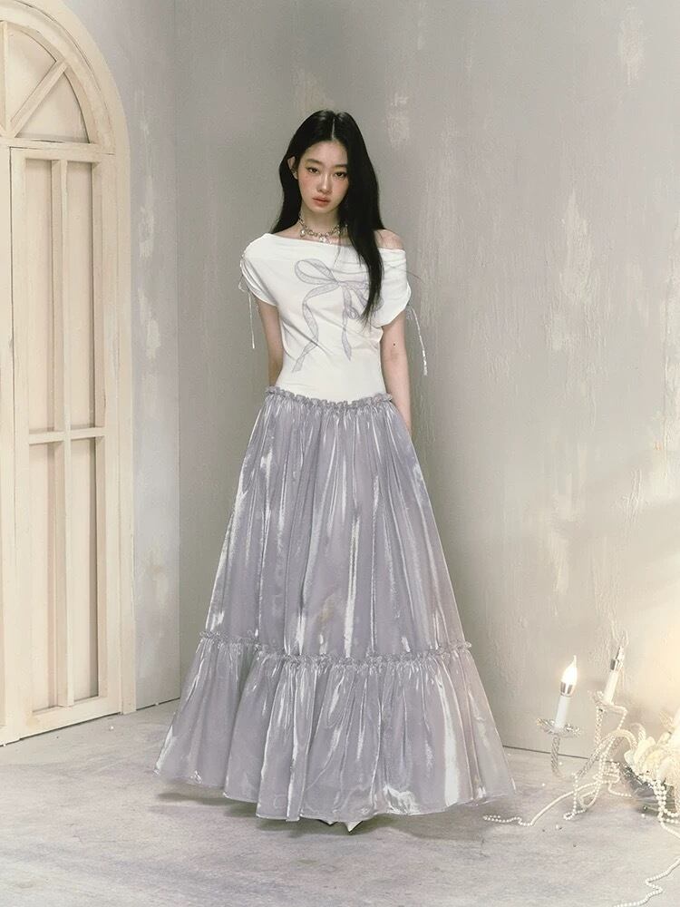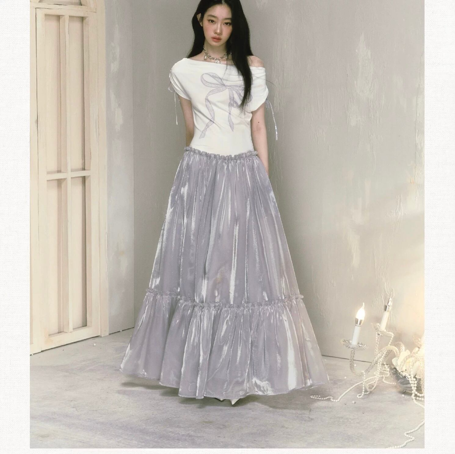 白 黒 グレー ワンピース ガーリー マキシ 可愛い