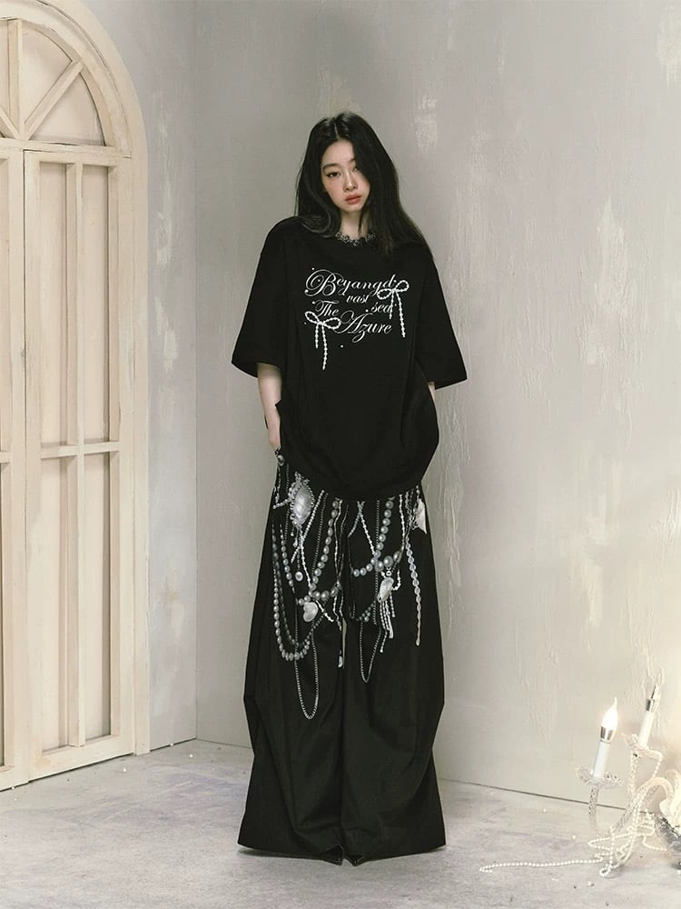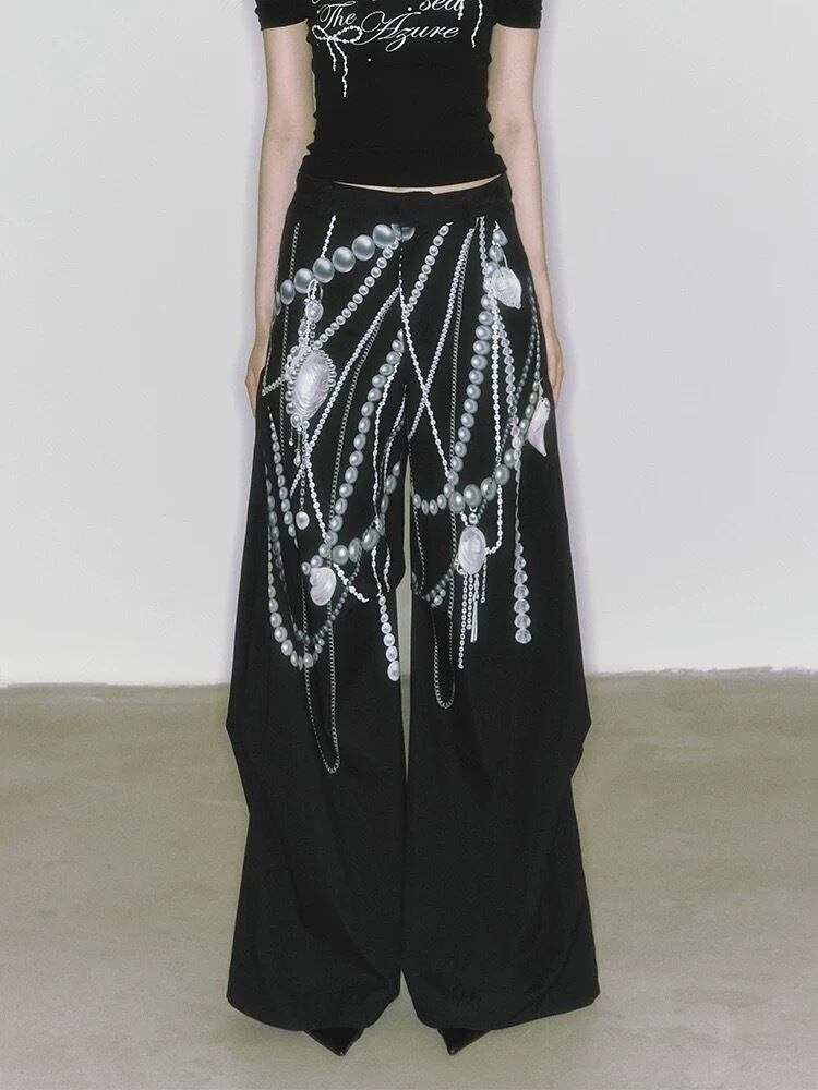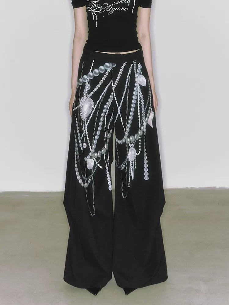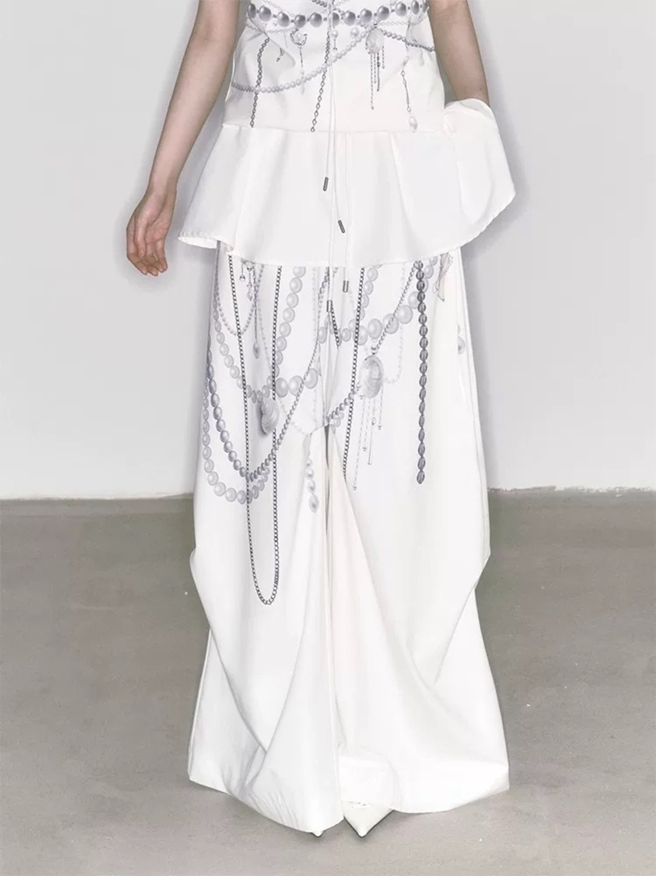 パール 騙し絵 パンツ ボトムス 太め 白 黒