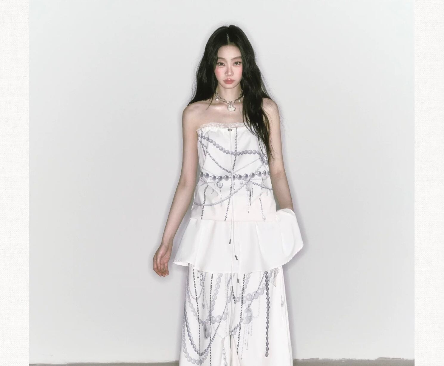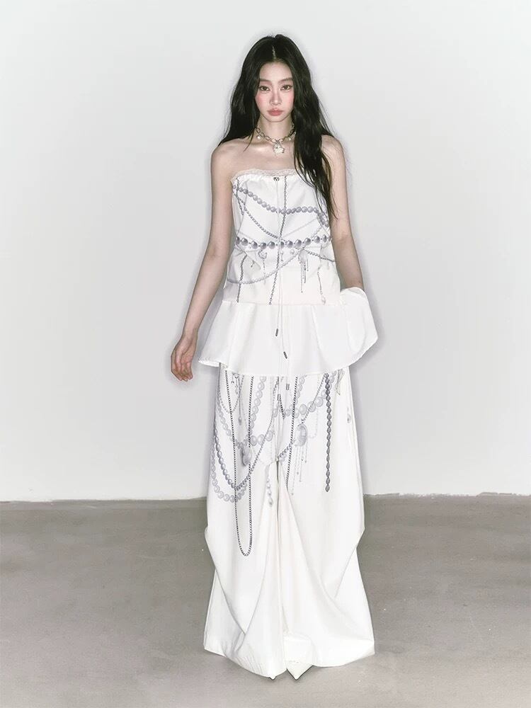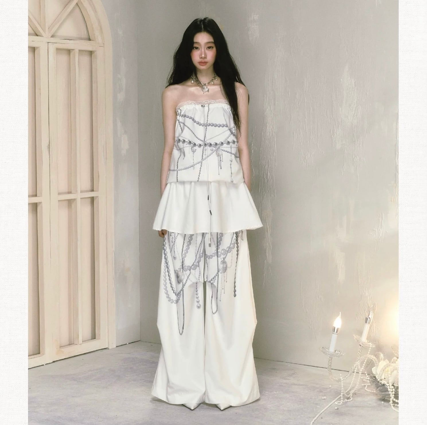 パール 騙し絵 パンツ ボトムス 太め 白 黒