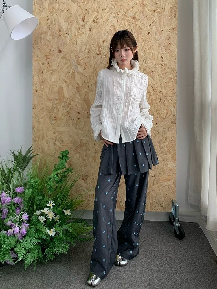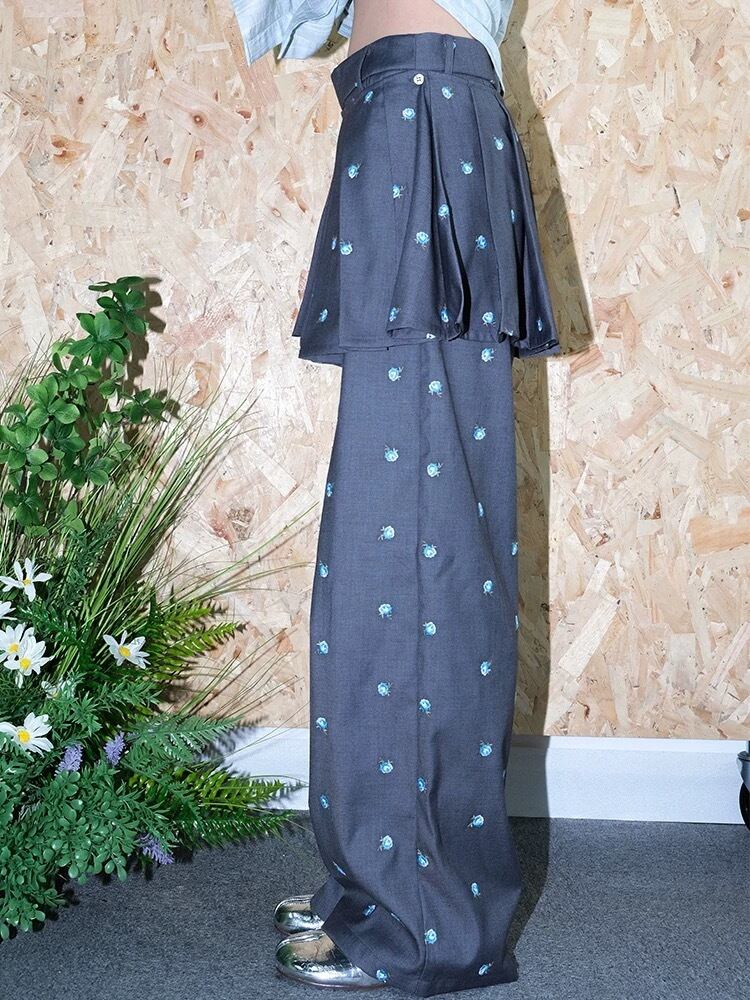 パンツ ボトムス 太め ガーリー カジュアル グレー ミニスカート