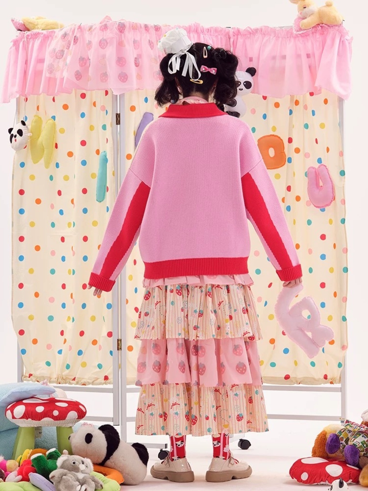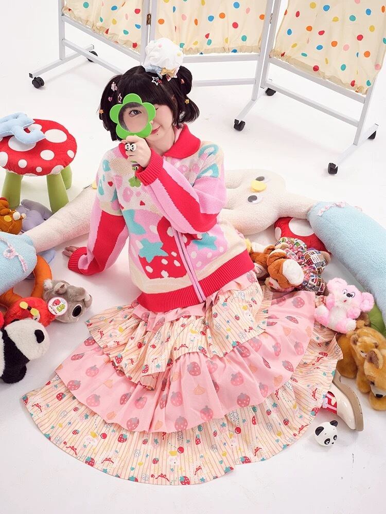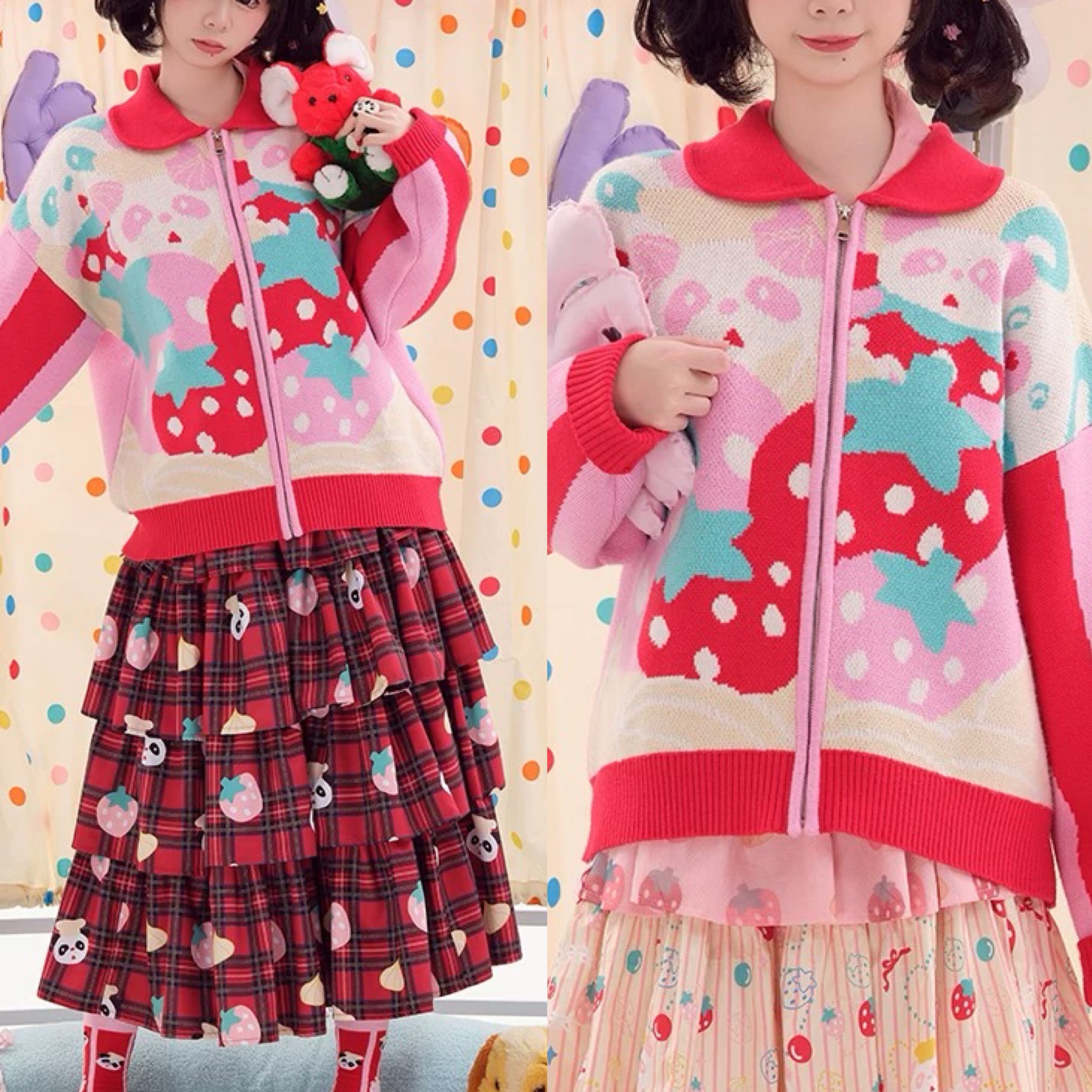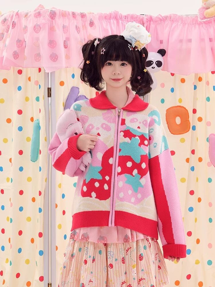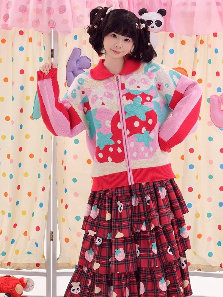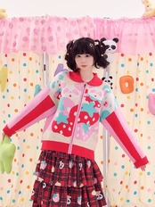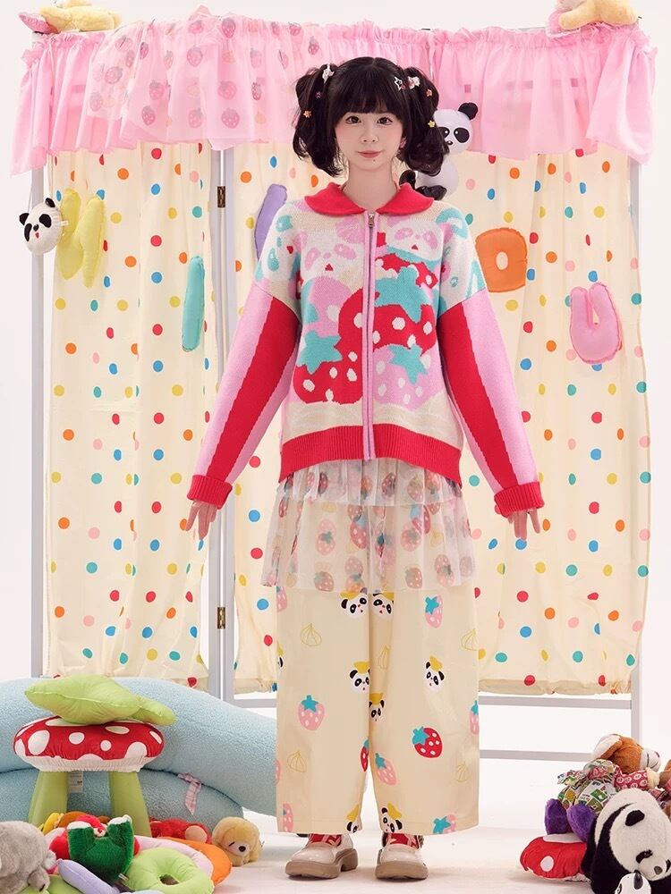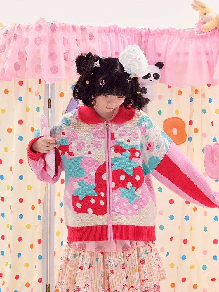 カーディガン ピンク 赤 ニット セーター ガーリー くま パンダ 可愛い