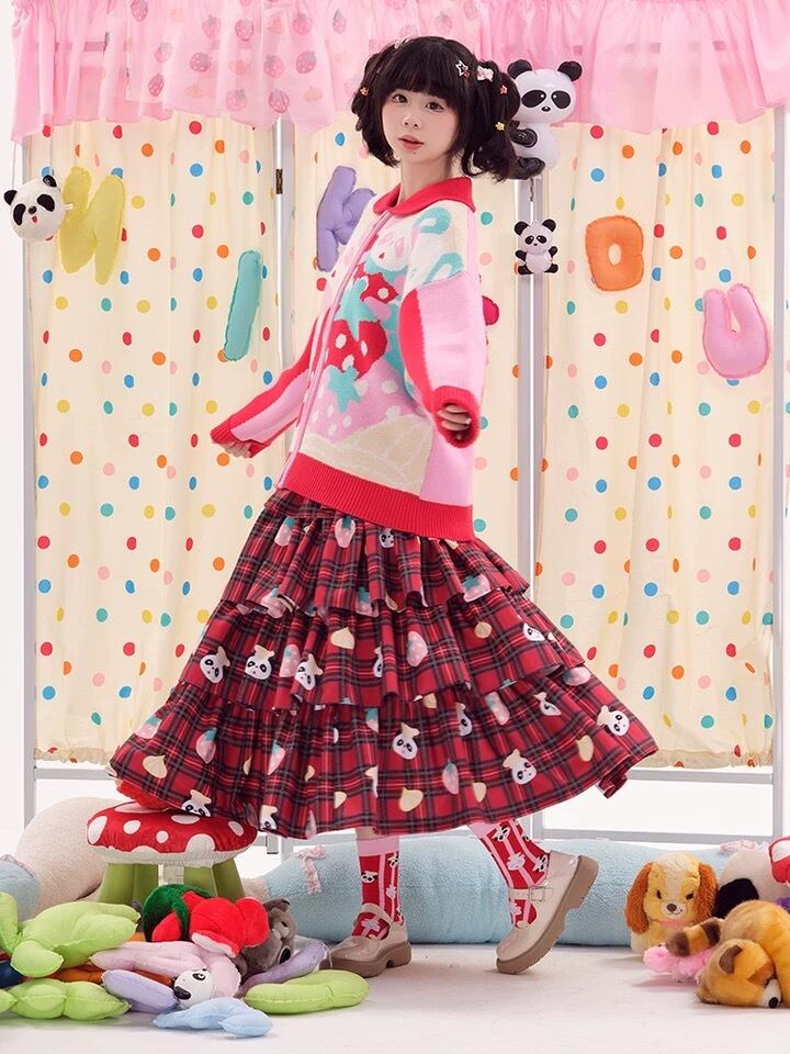 スカート チェック 赤 ピンク ページュ ガーリー ボトムス