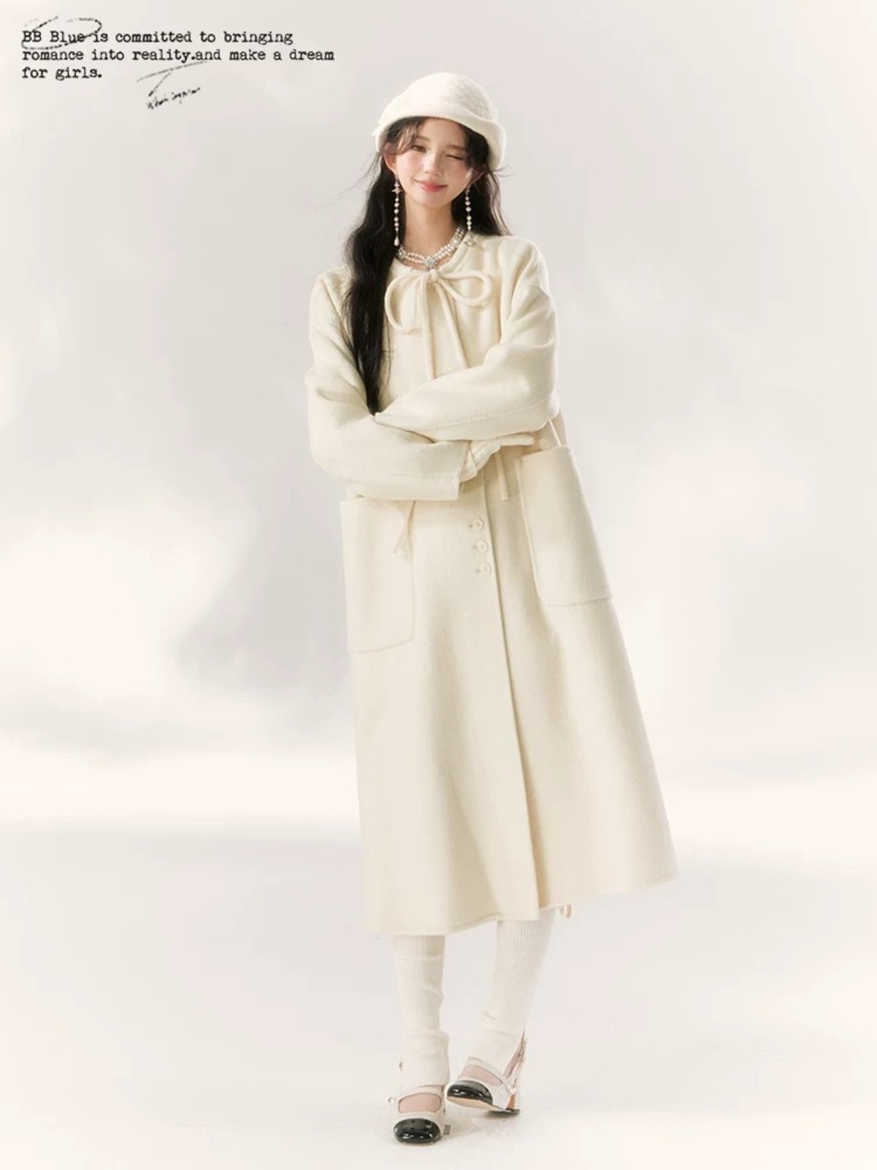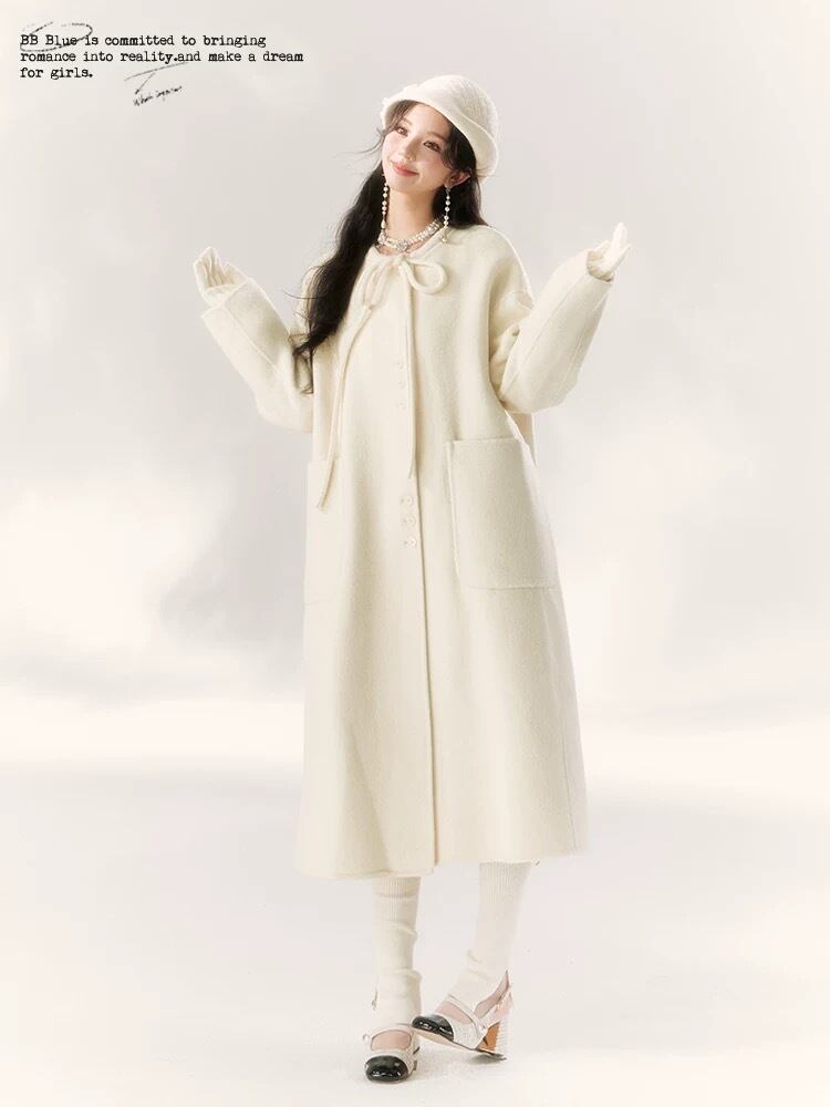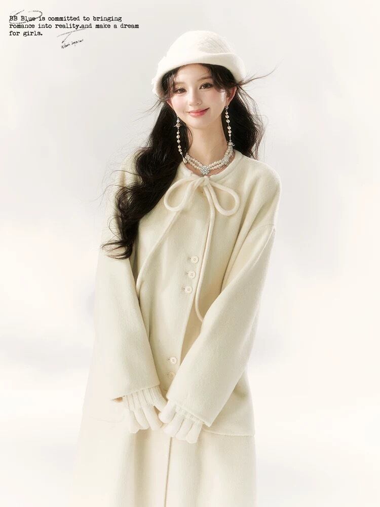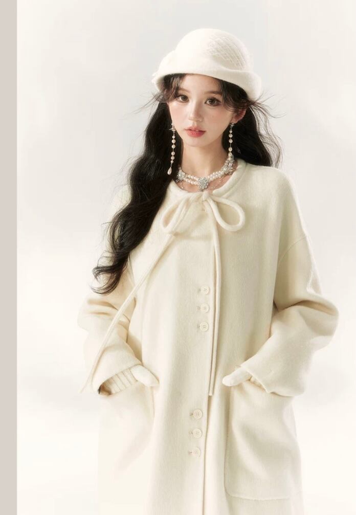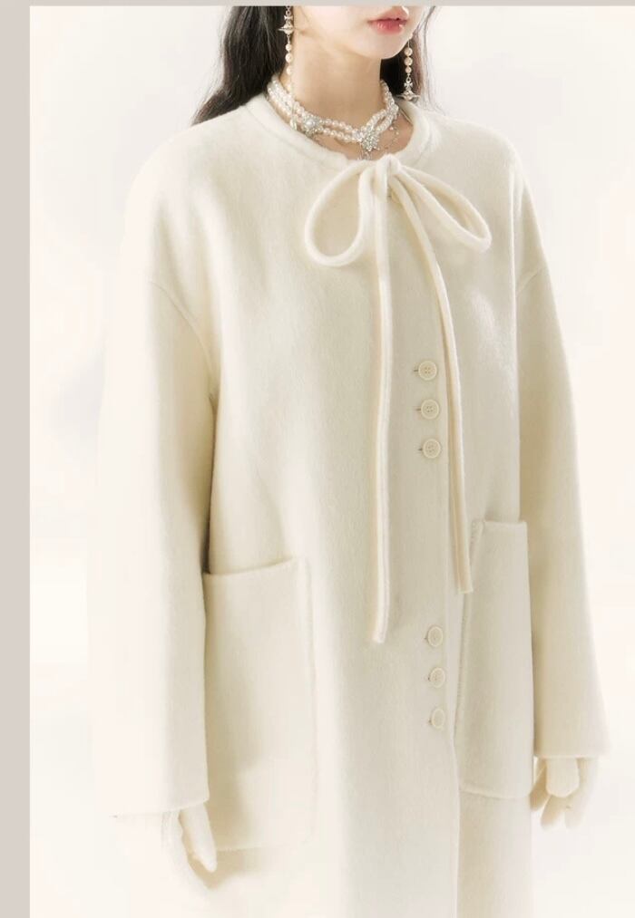 白 ホワイト リボン アウター コート ガーリー