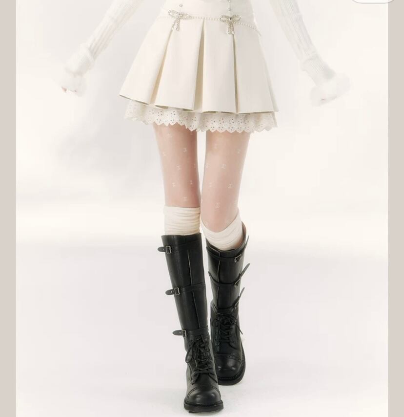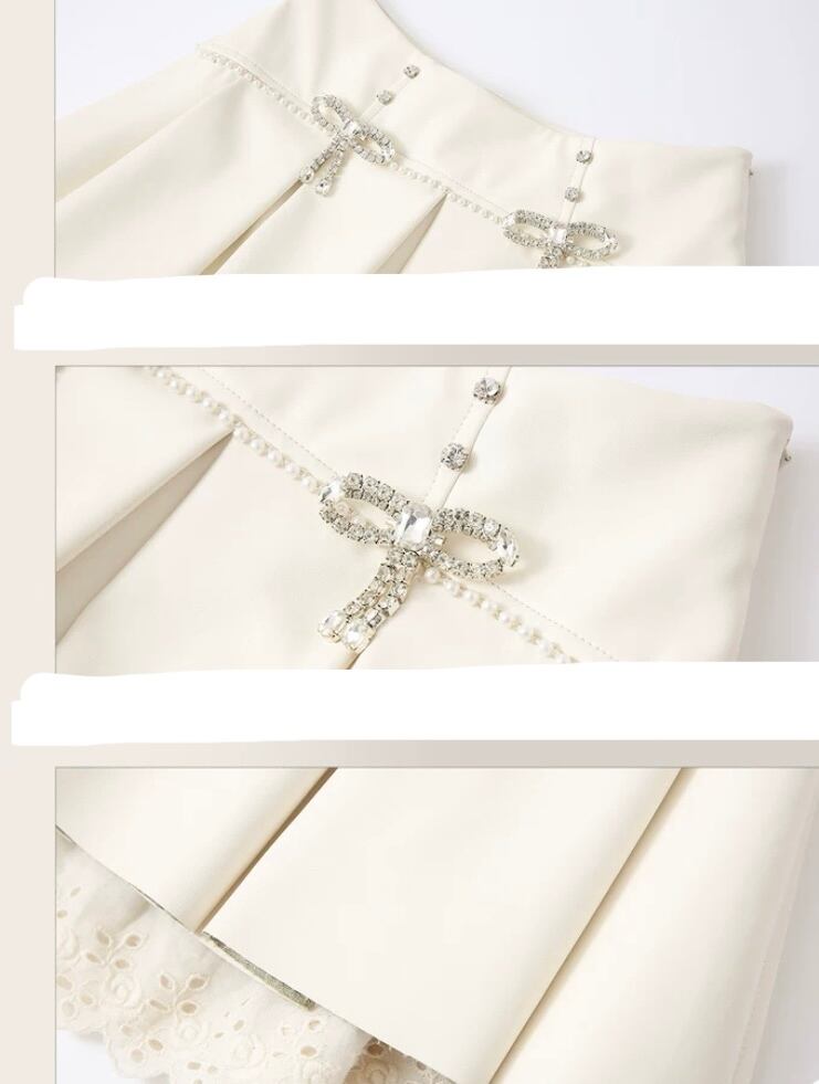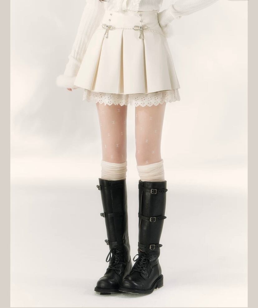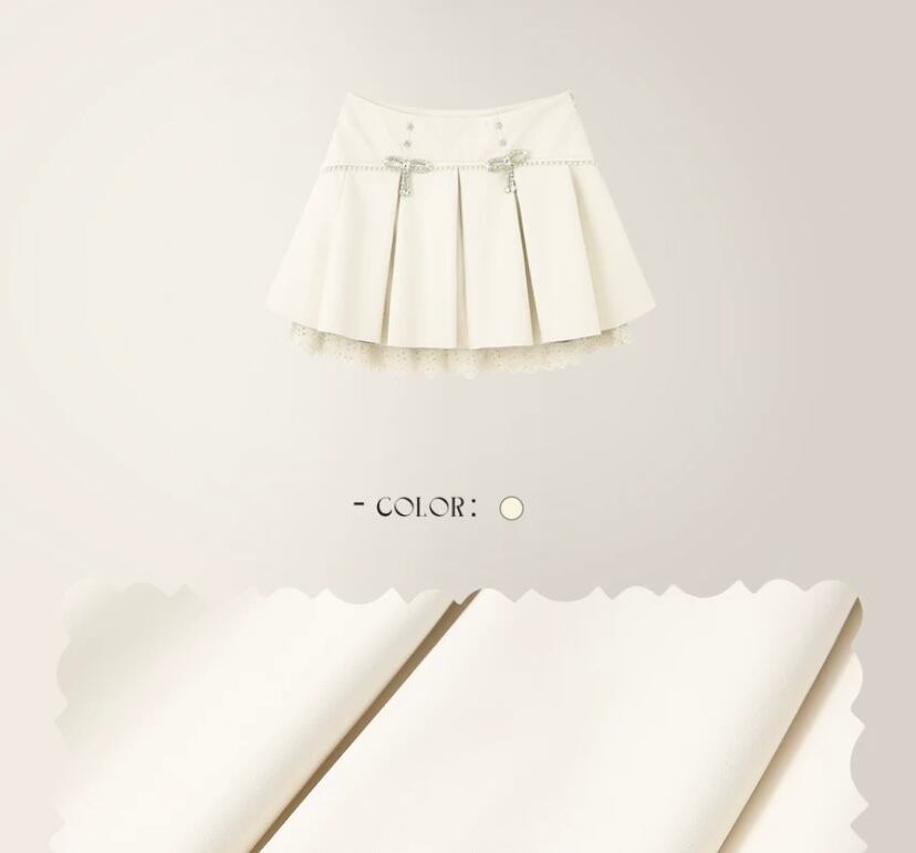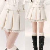 スカート 白 ホワイト ミニ プリーツ ガーリー リボン