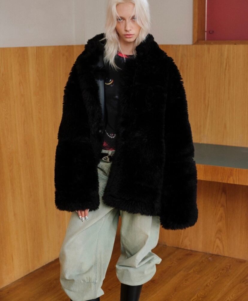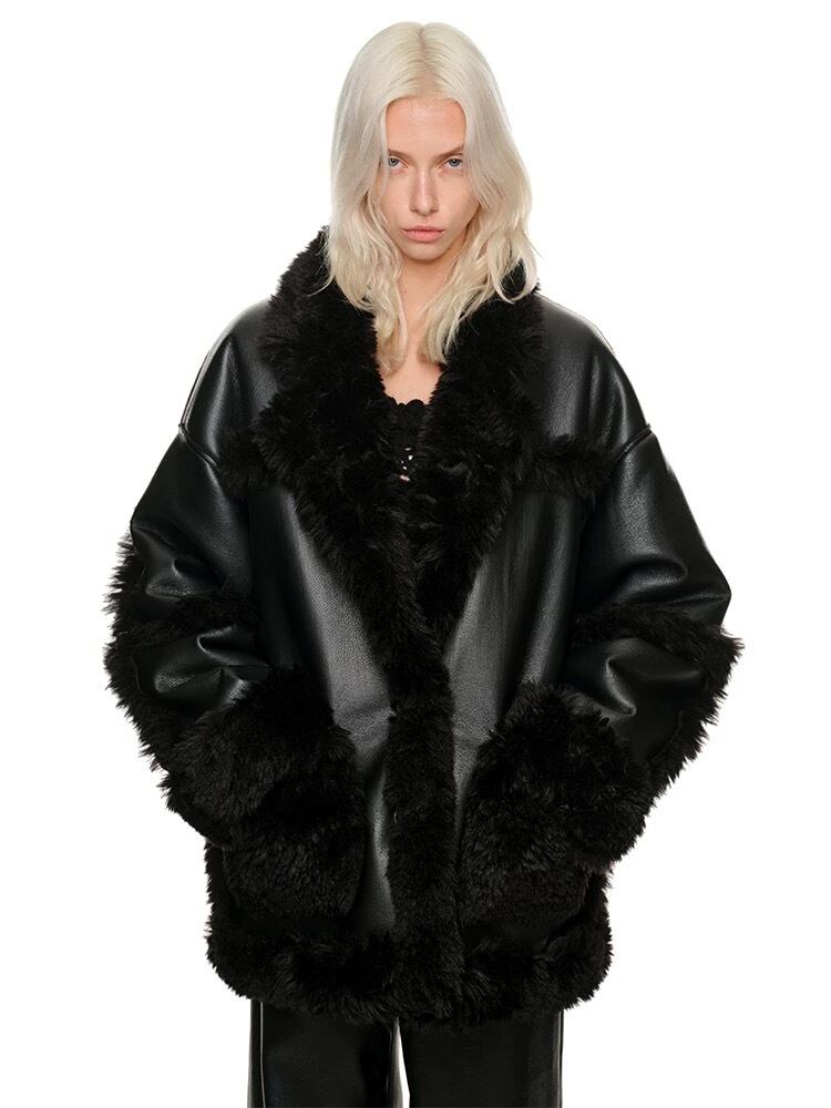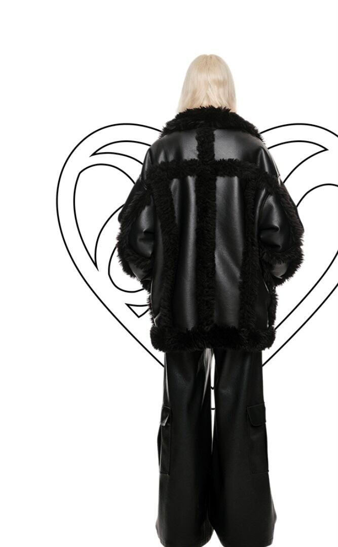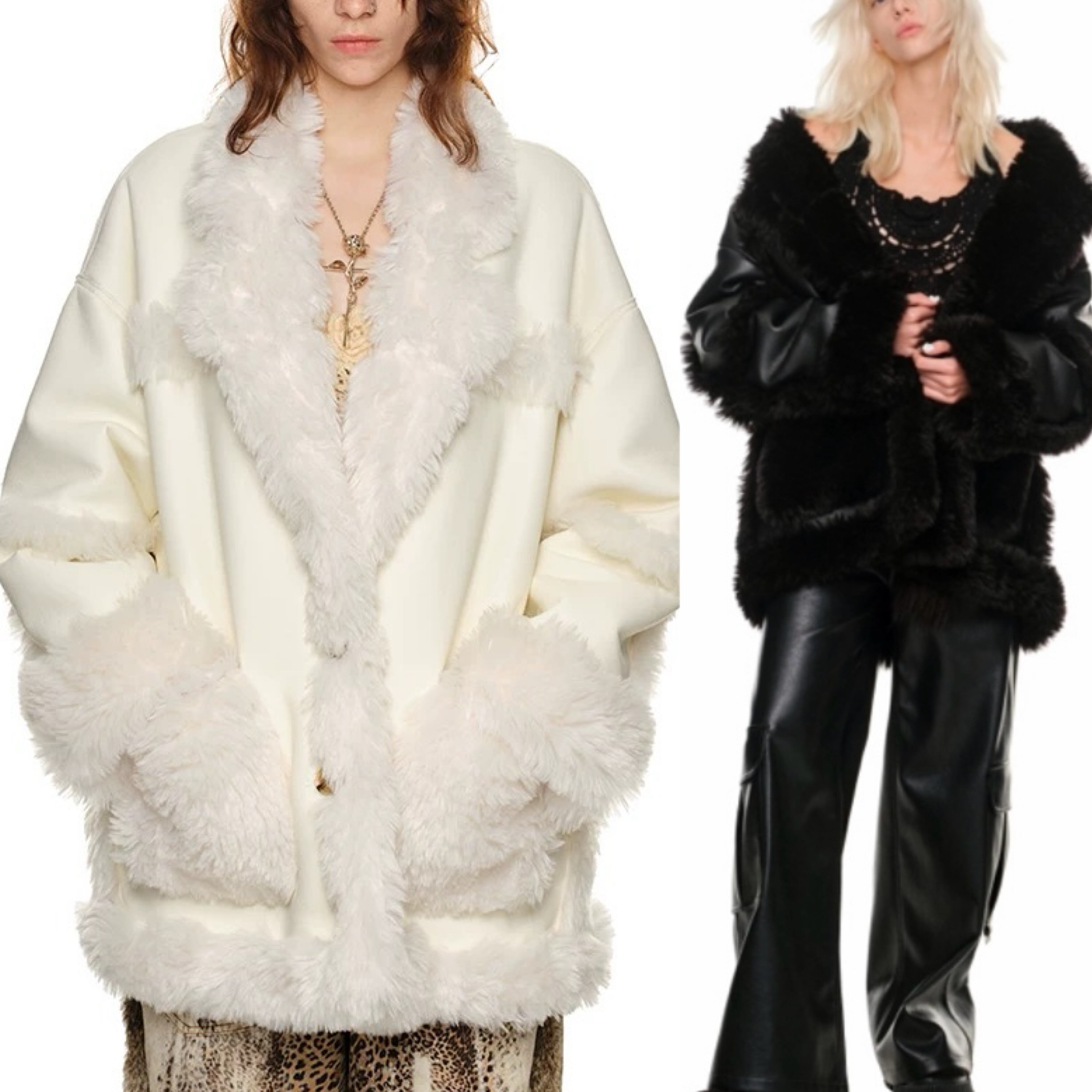 【リバーシブル】黒 白 ジャケット アウター ファー コート ポケット