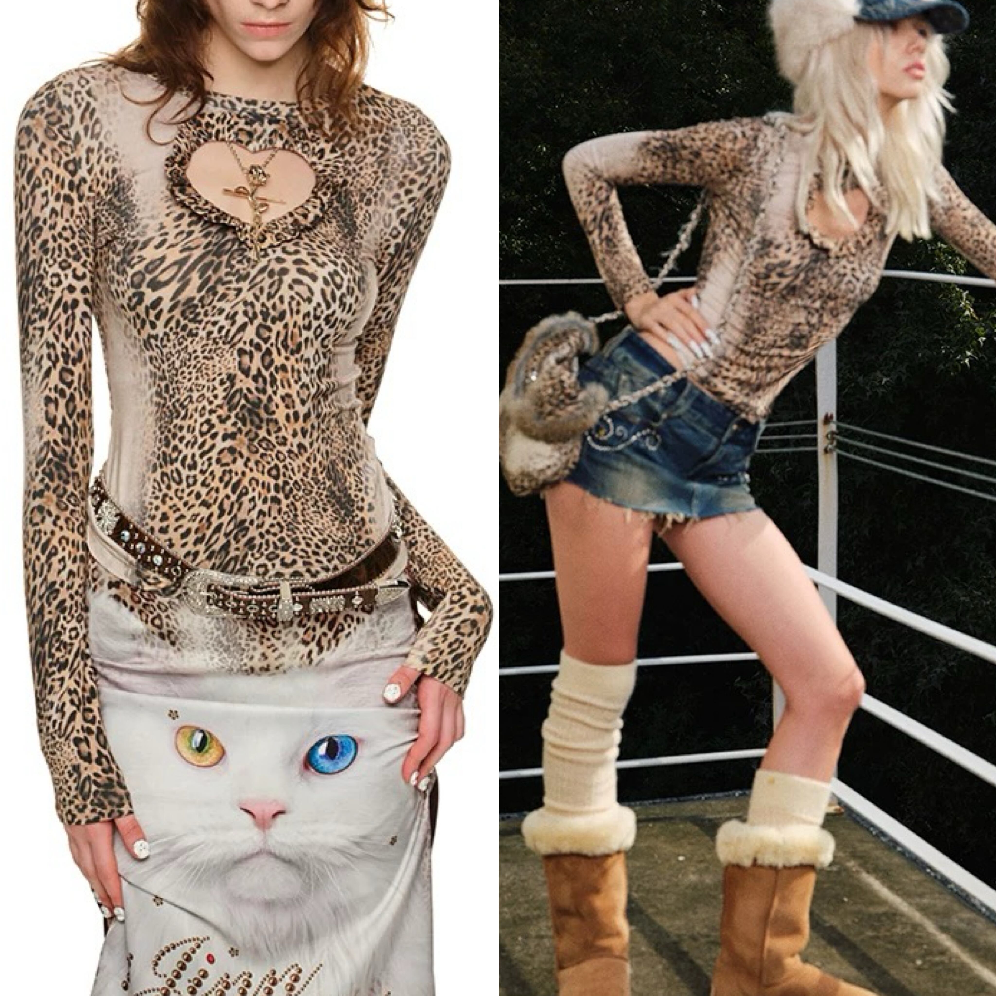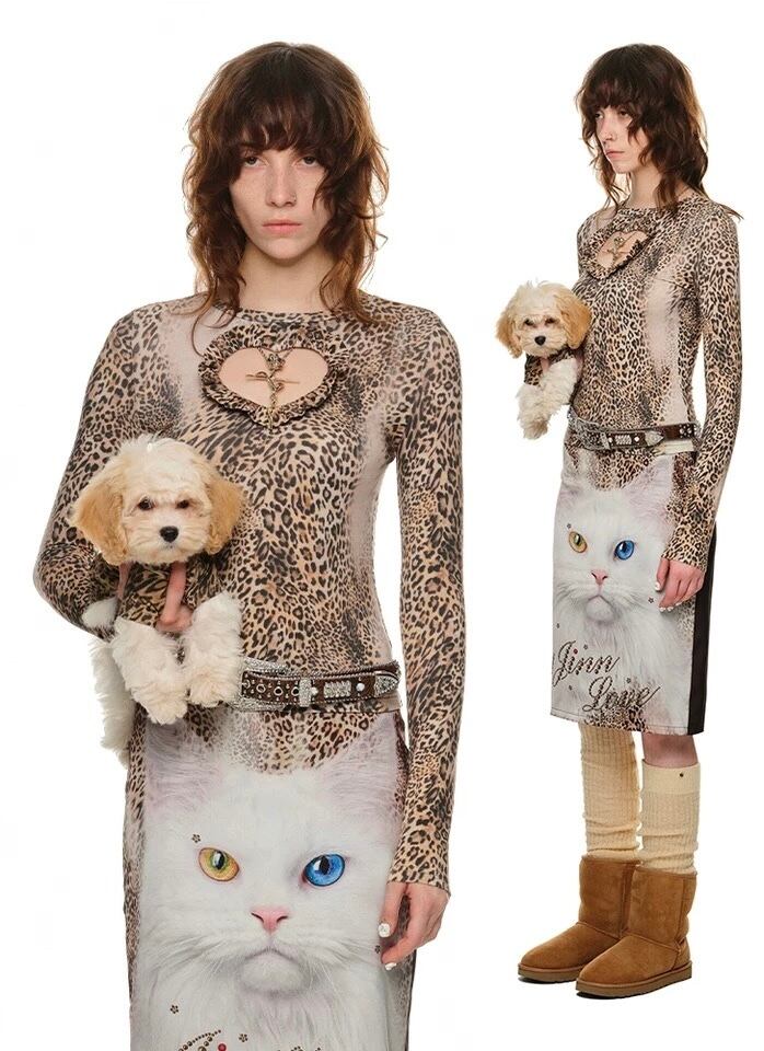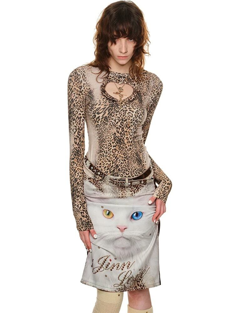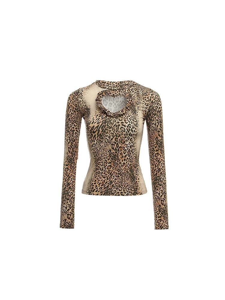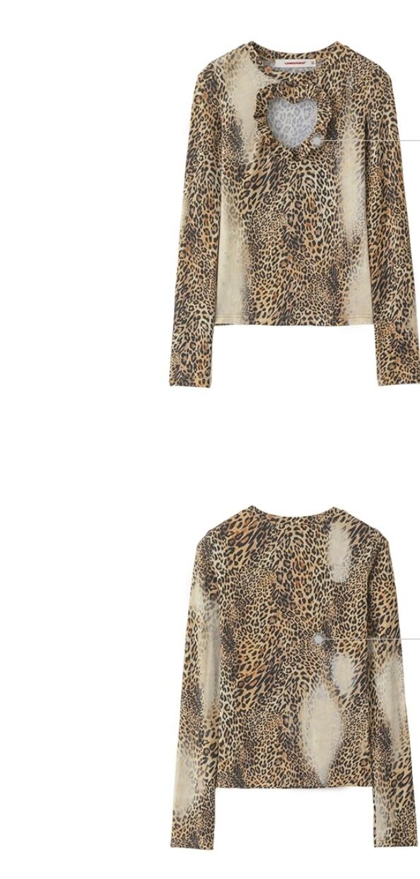ヒョウ柄 レオパード ブラウス トップス ベージュ アニマル Tシャツ ハート
