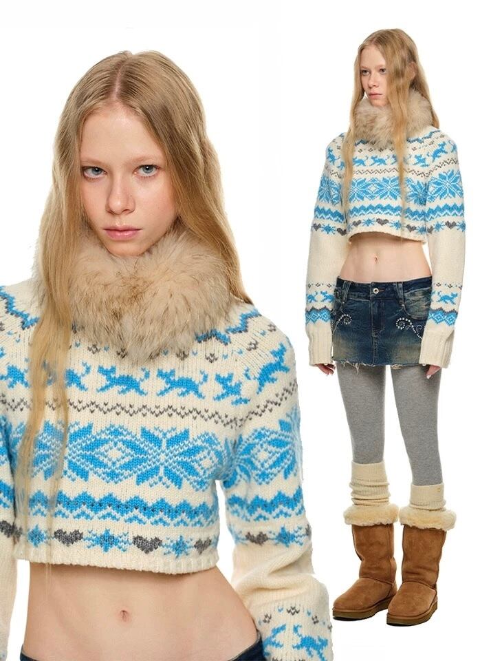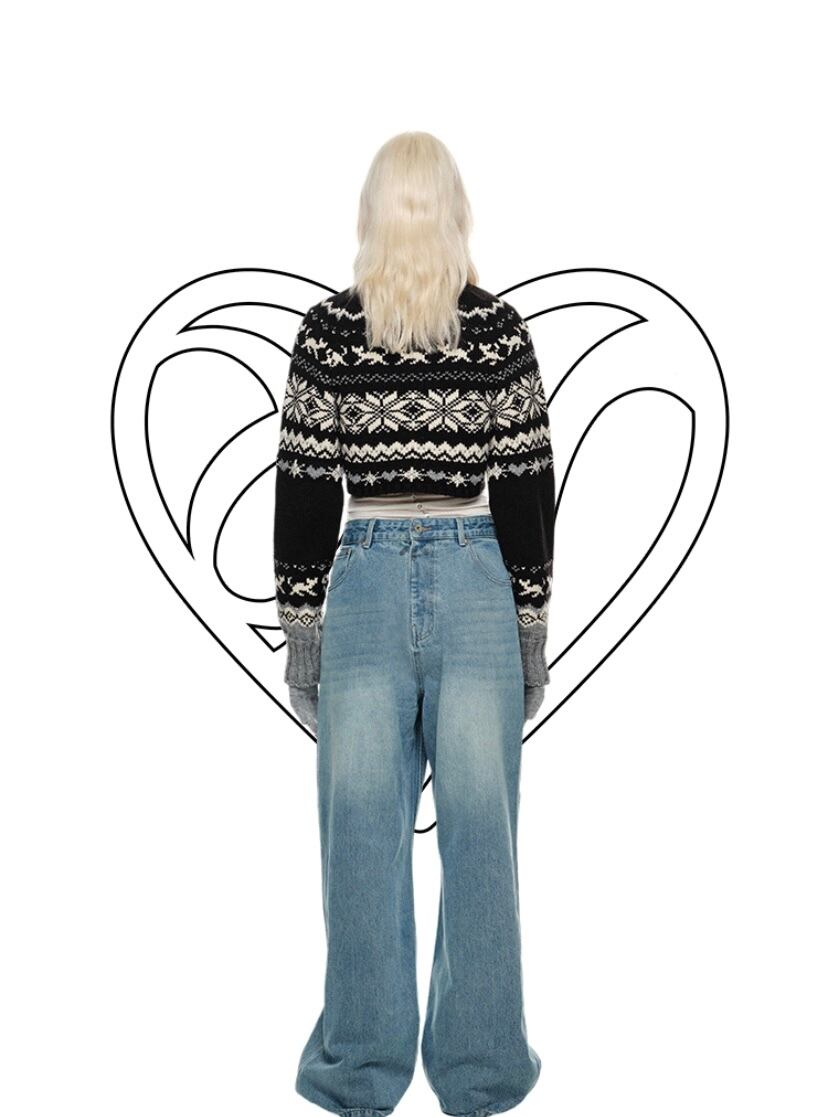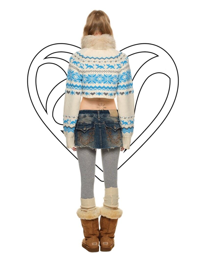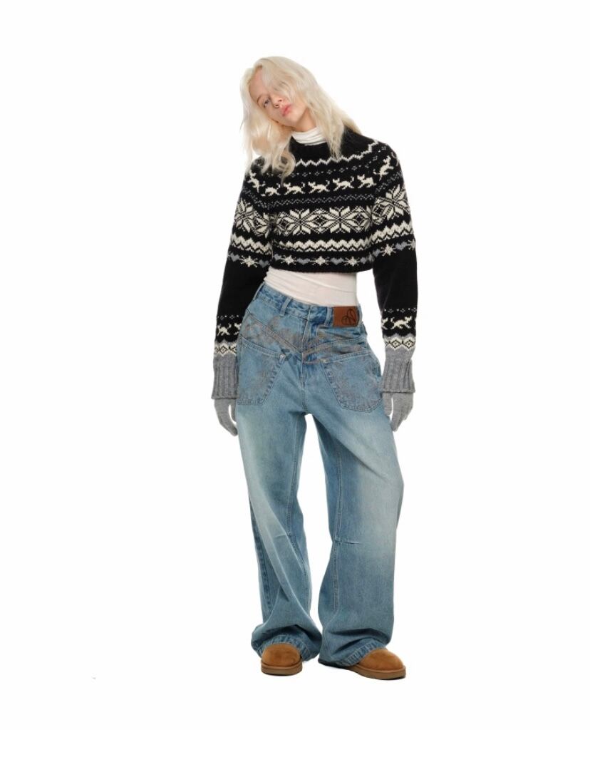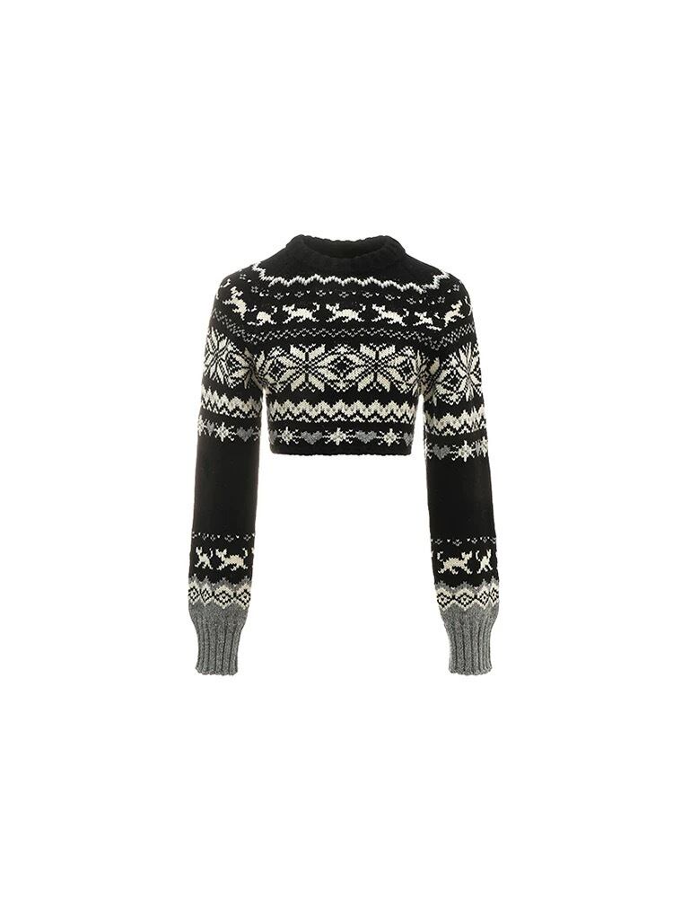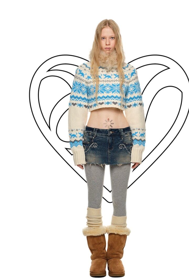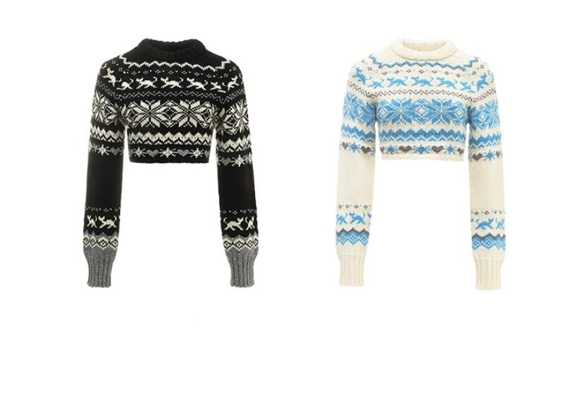 白 黒 水色 セーター 雪 ガーリー 刺繍 ハイネック ブラウス