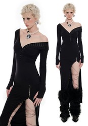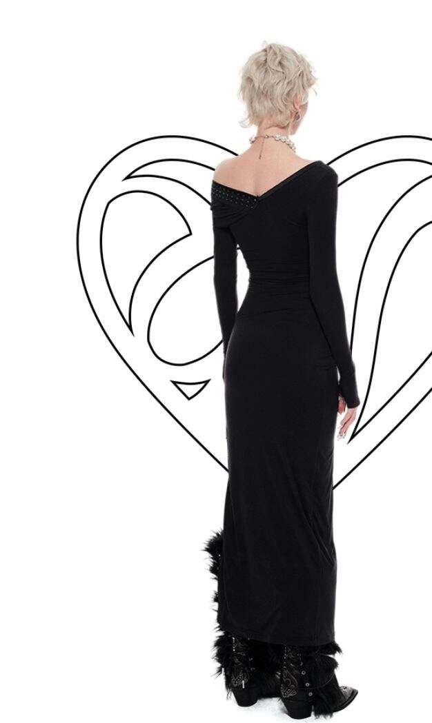 オフショルダー スリット マキシ ワンピース セーター ロング セクシー 黒 グレー