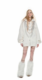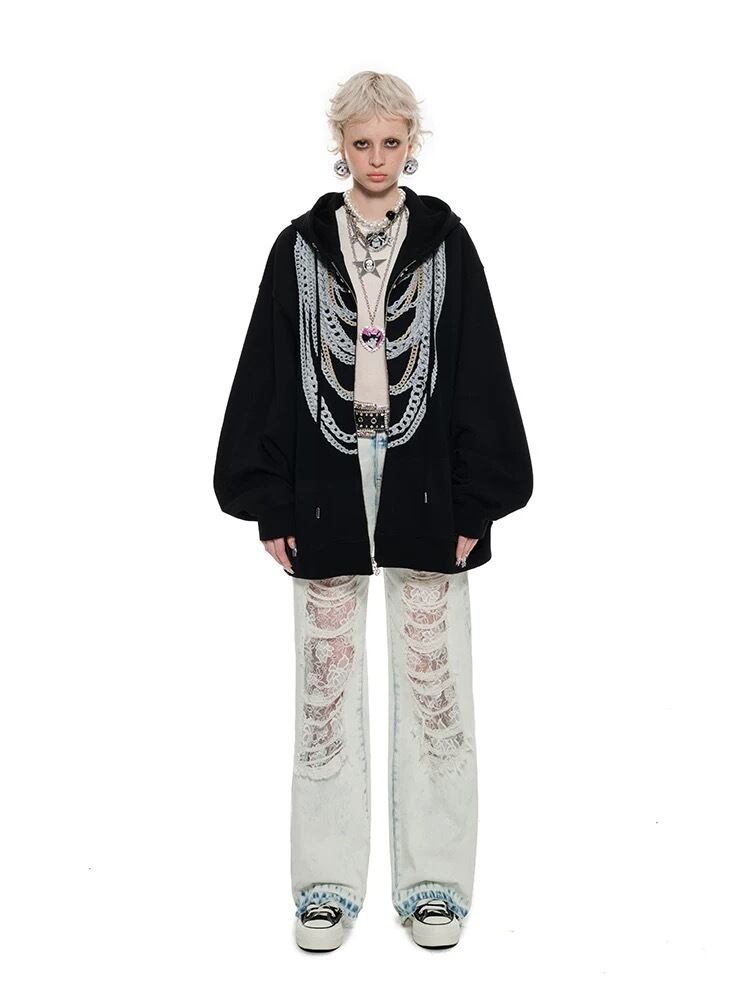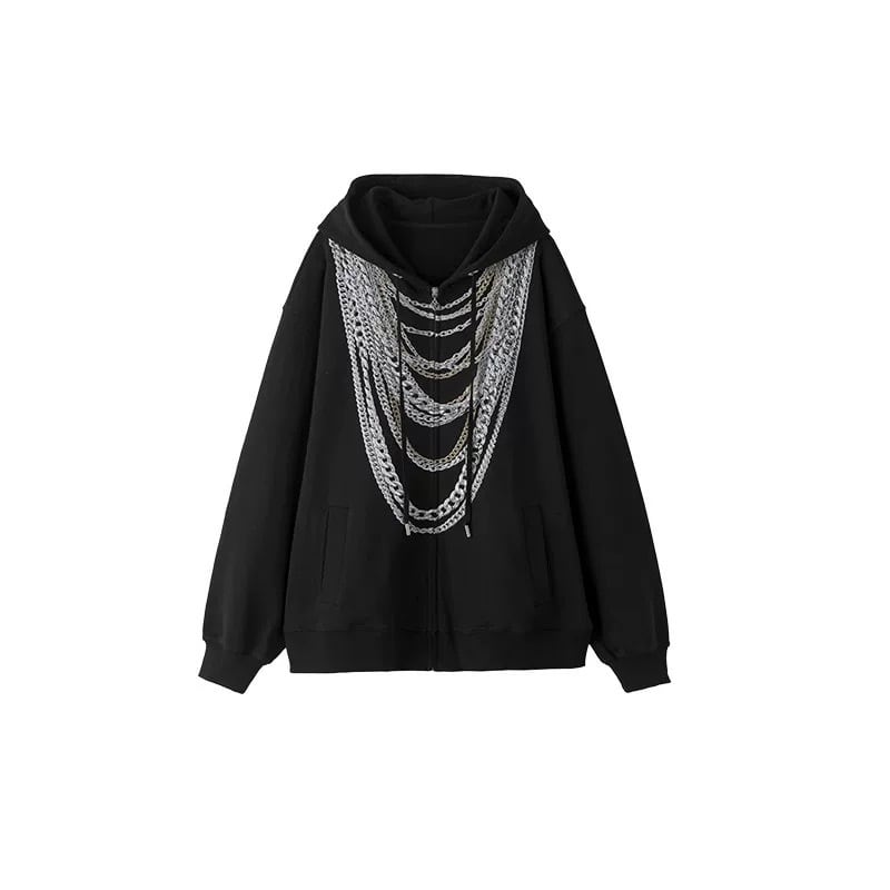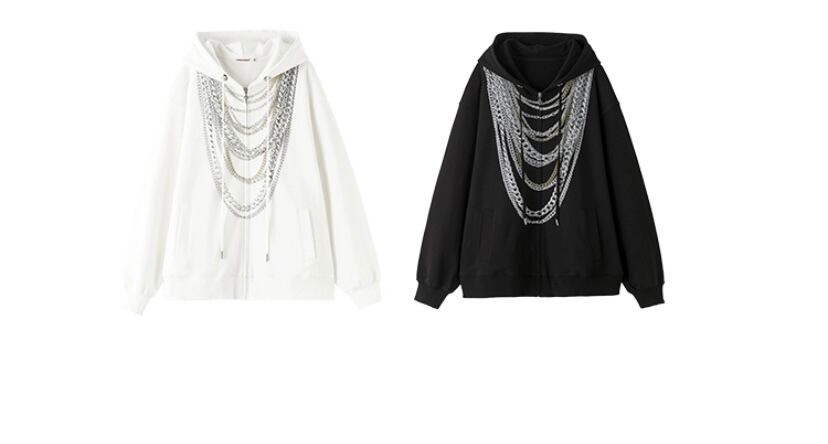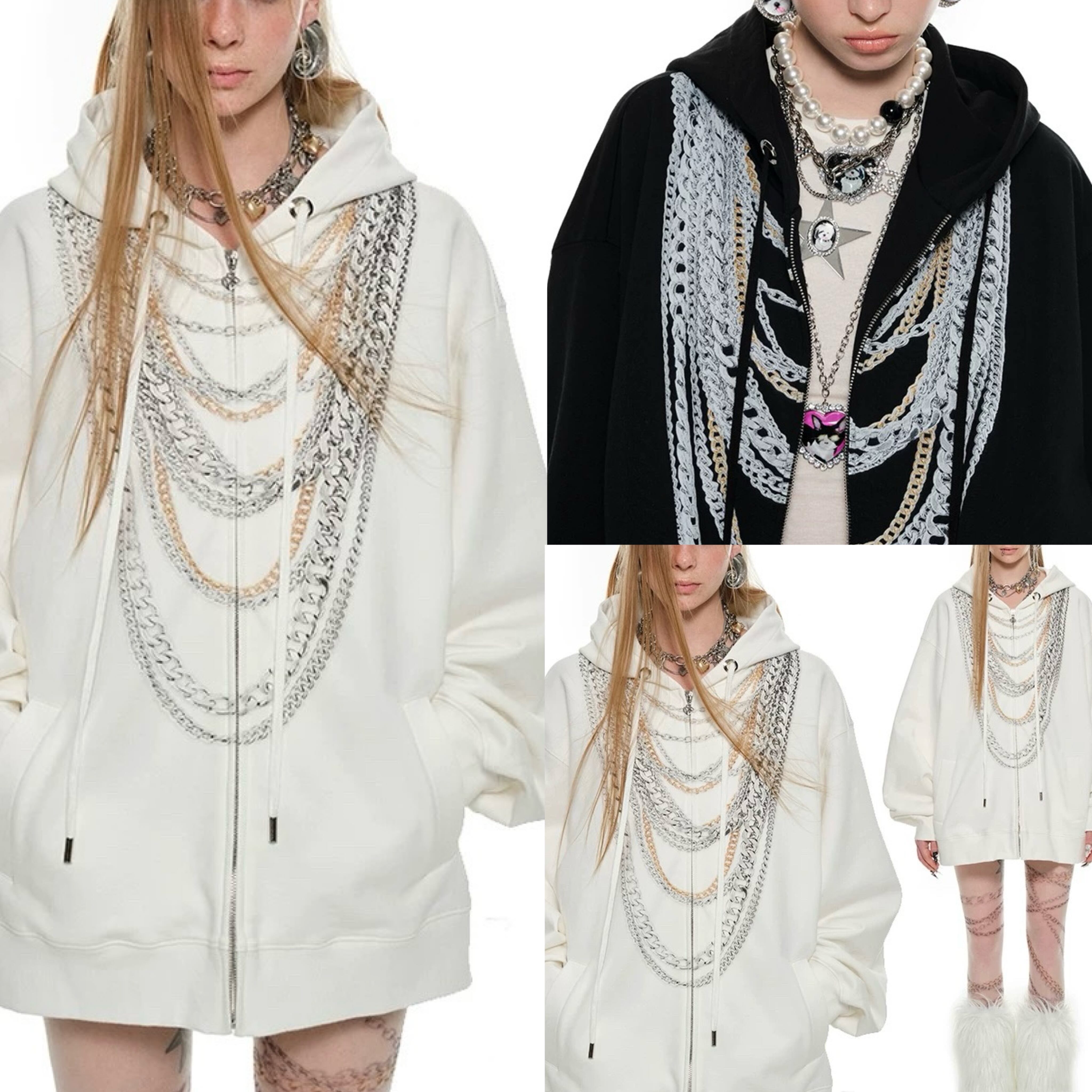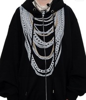 黒 白 騙し絵 チェーン パーカー トレーナー スウェット ネックレス アウター