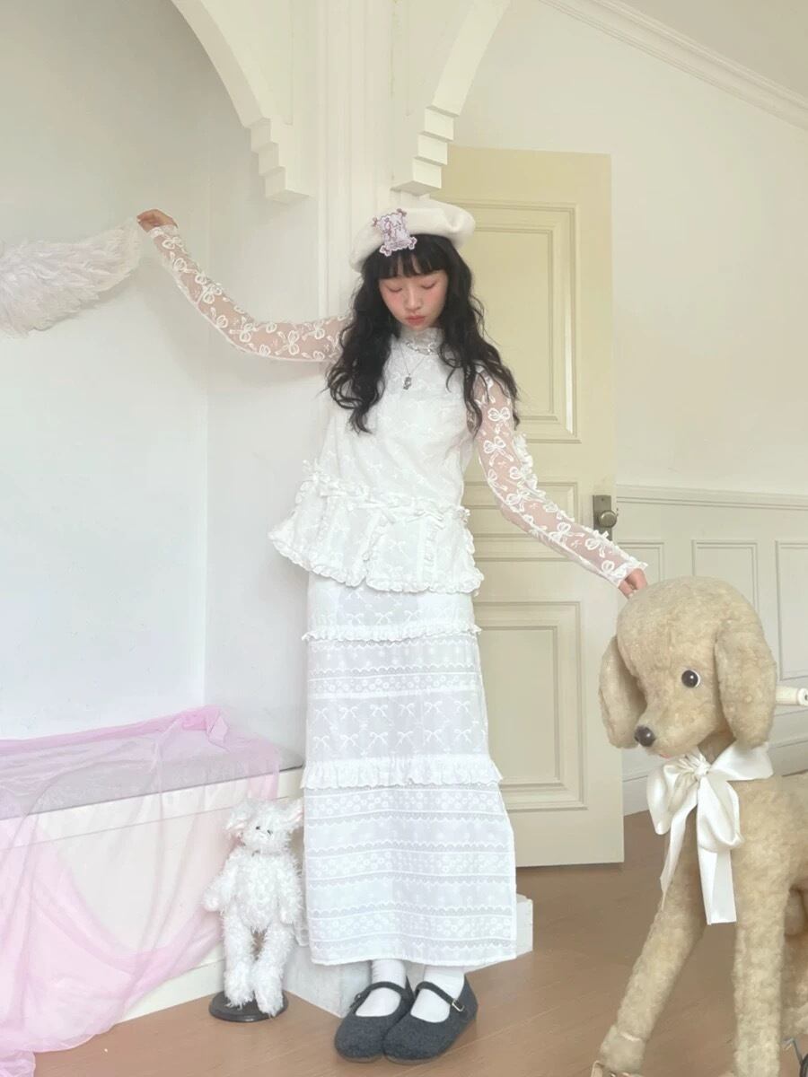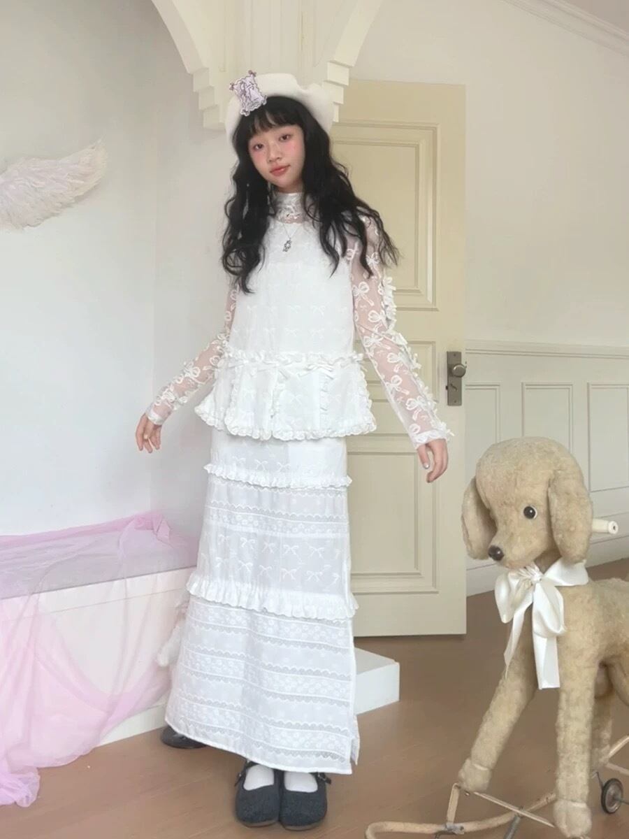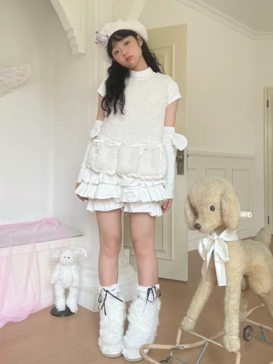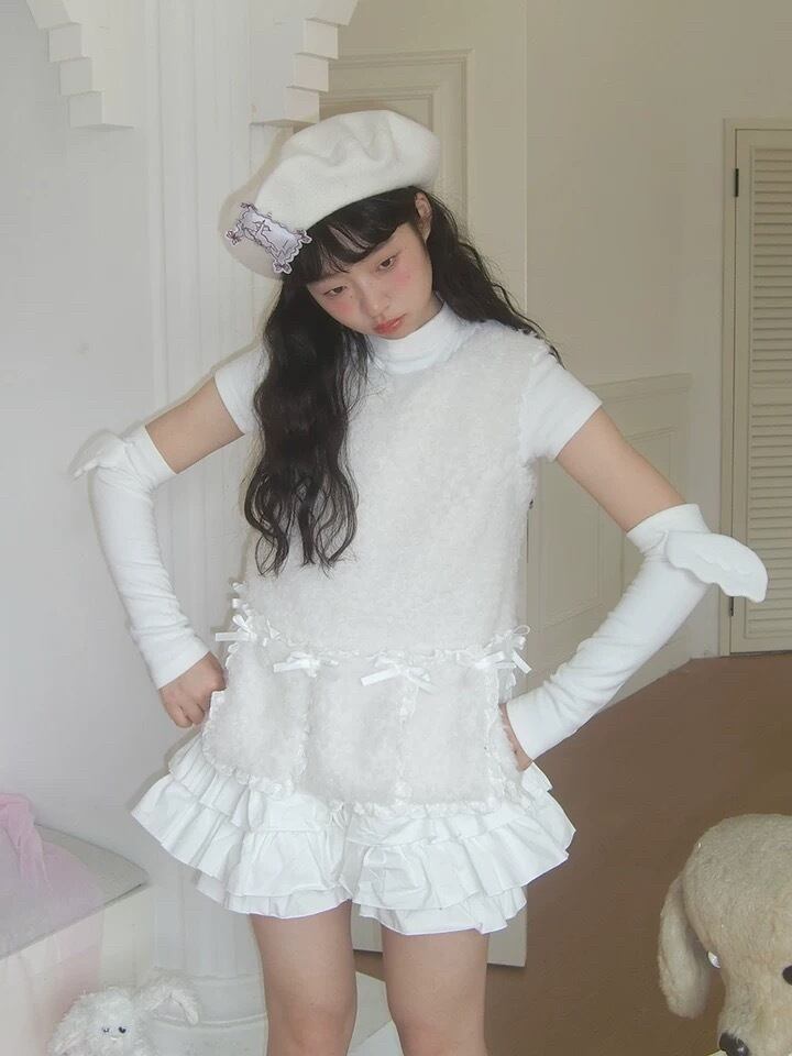 ベスト 白 ホワイト リボン ガーリー セーター 可愛い