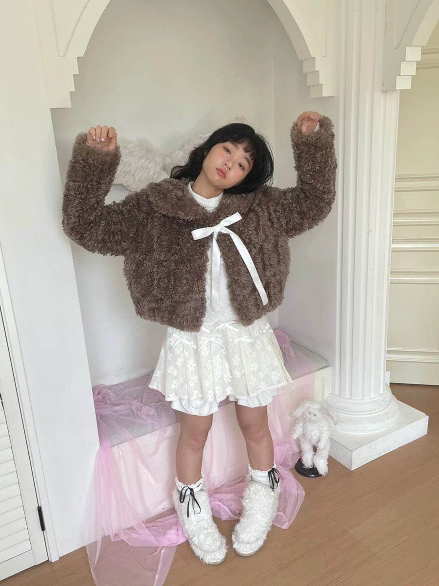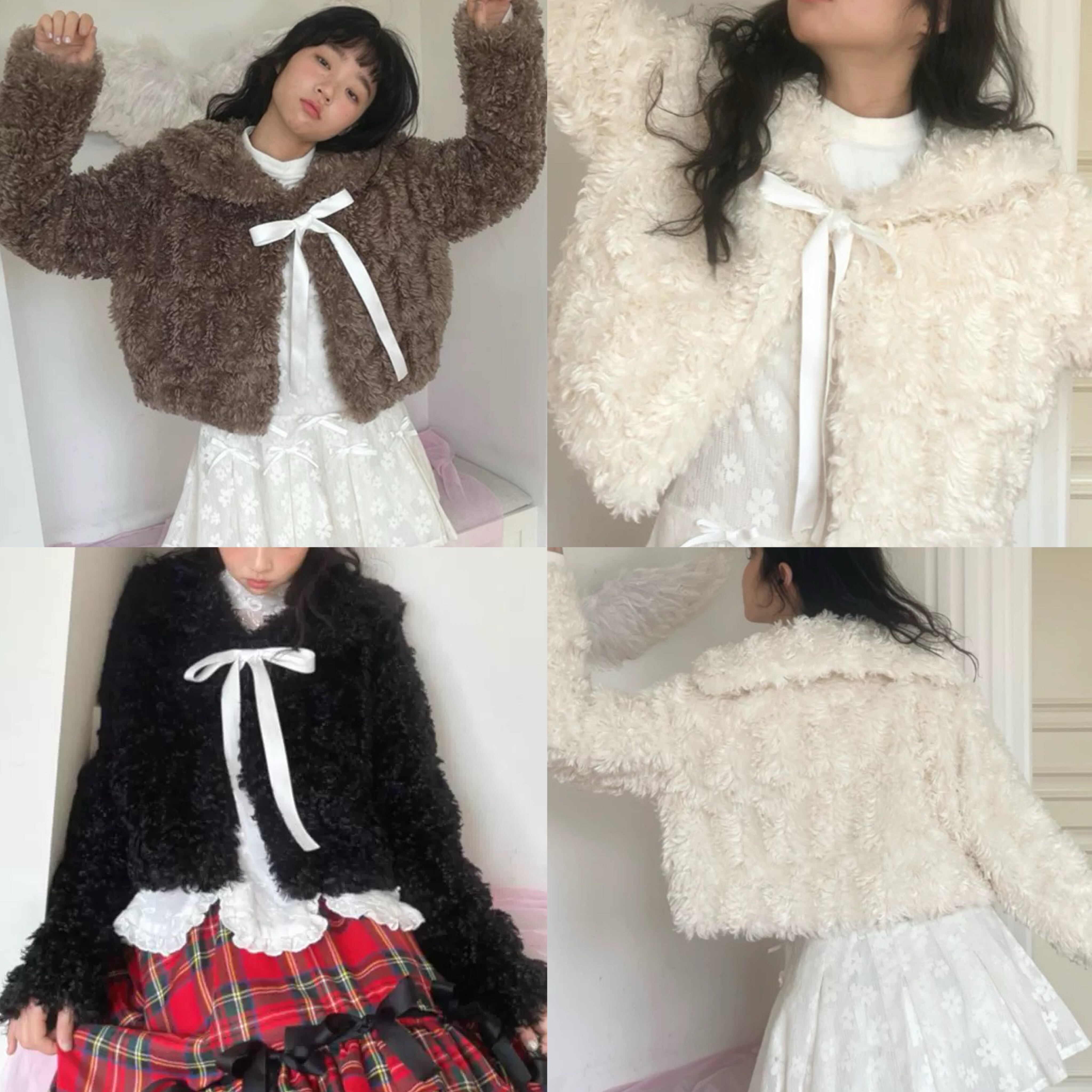ファー コート ベージュ 黒 白 セーラー アウター 茶色