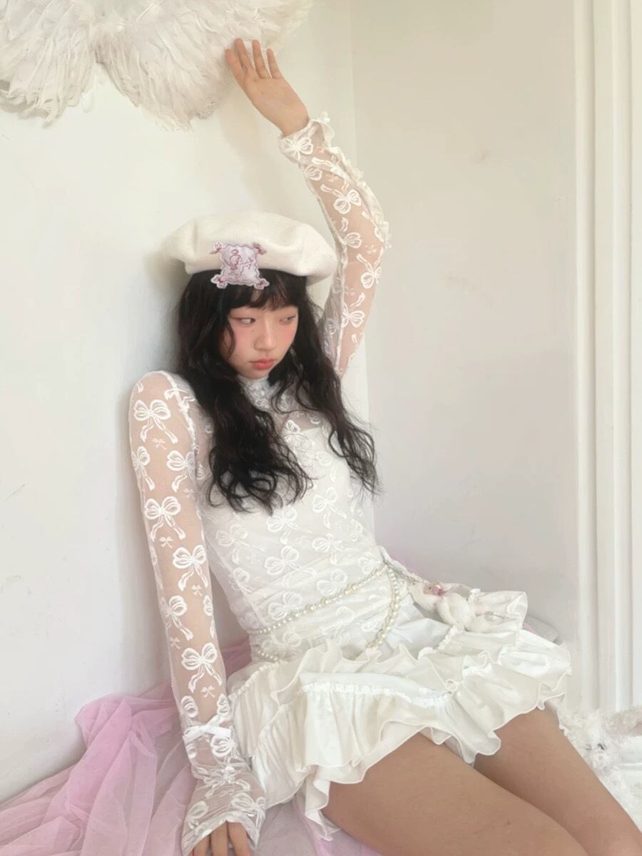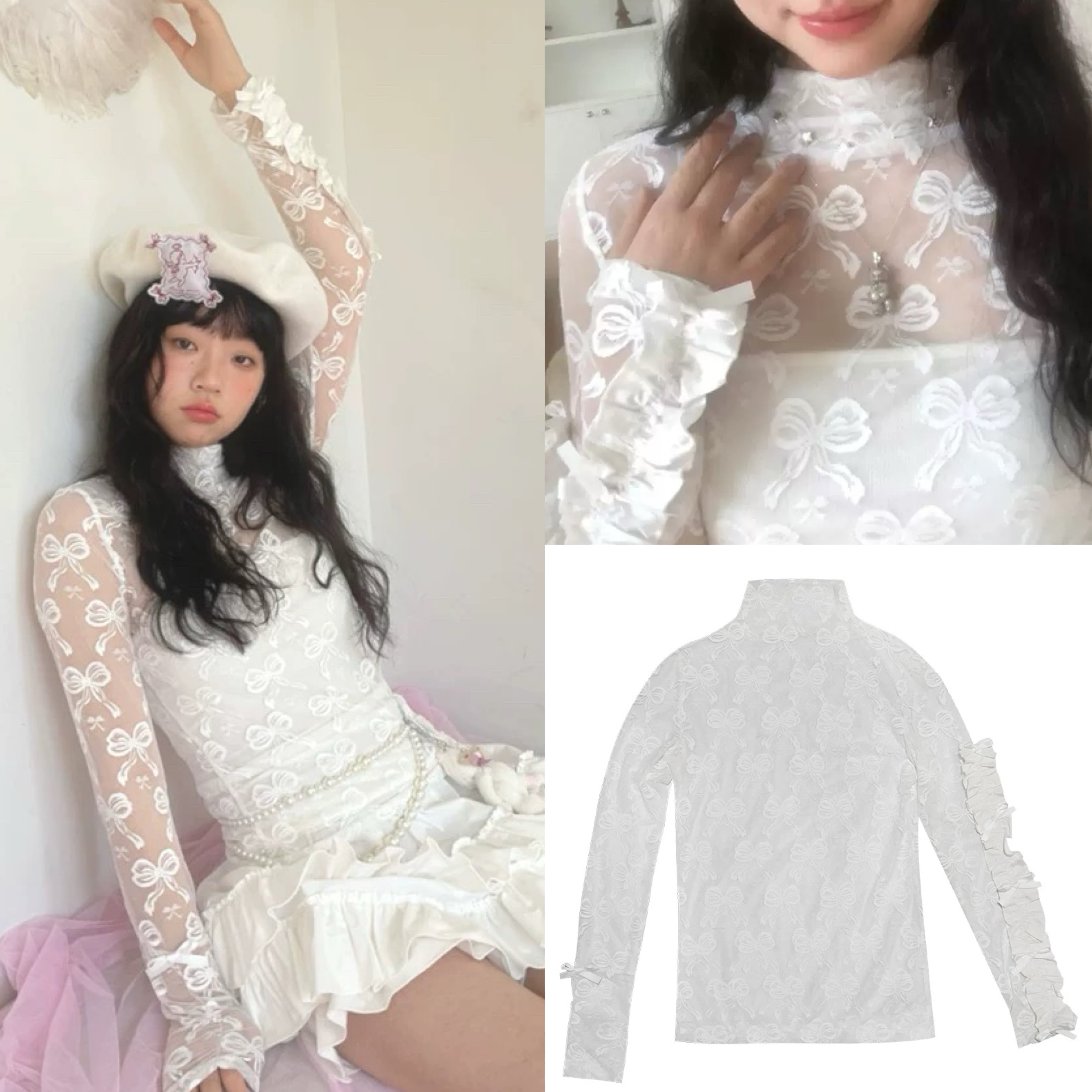 シースルー ガーリー トップス 白 ホワイト ブラウス
