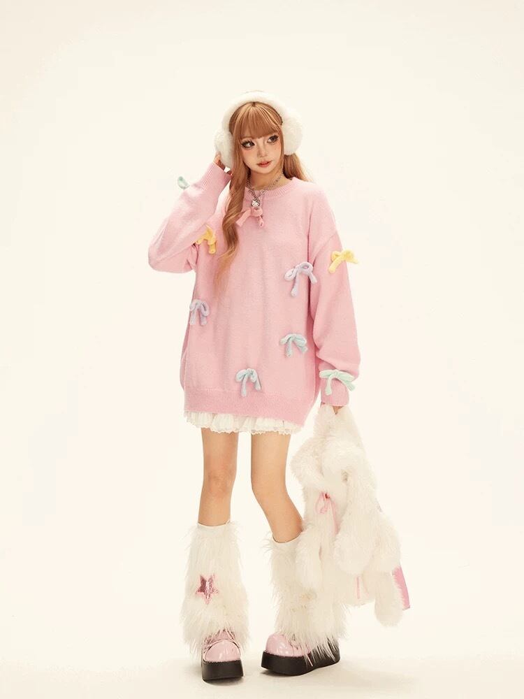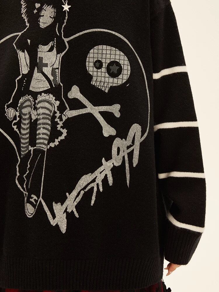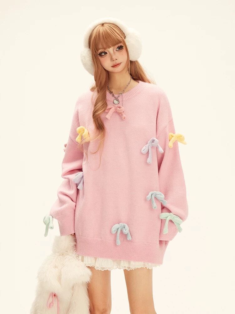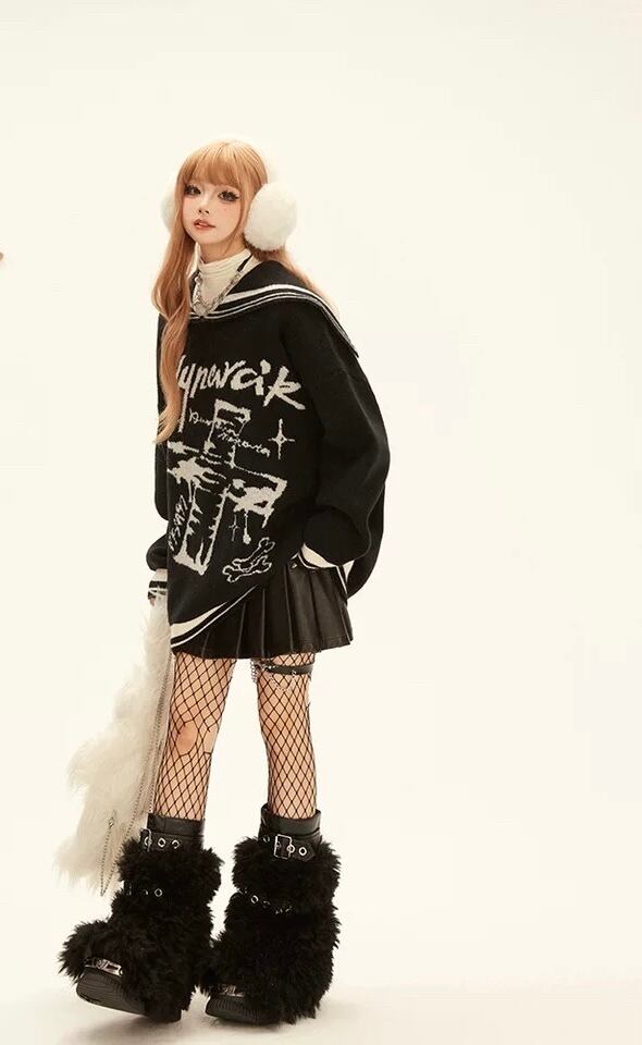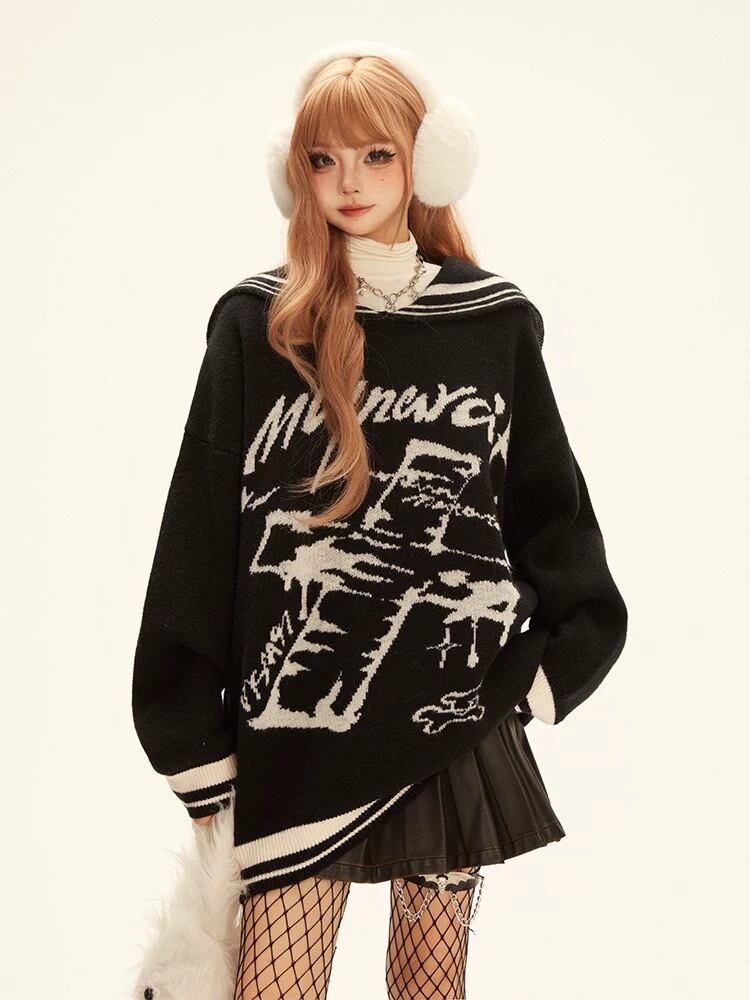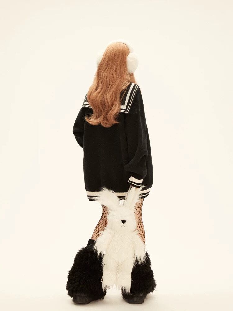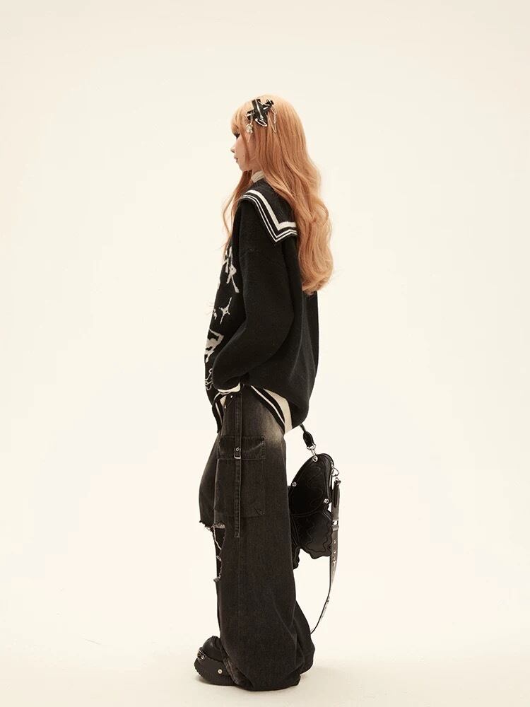 ピンク 黒 セーラー ハート ニット カーディガン リボン