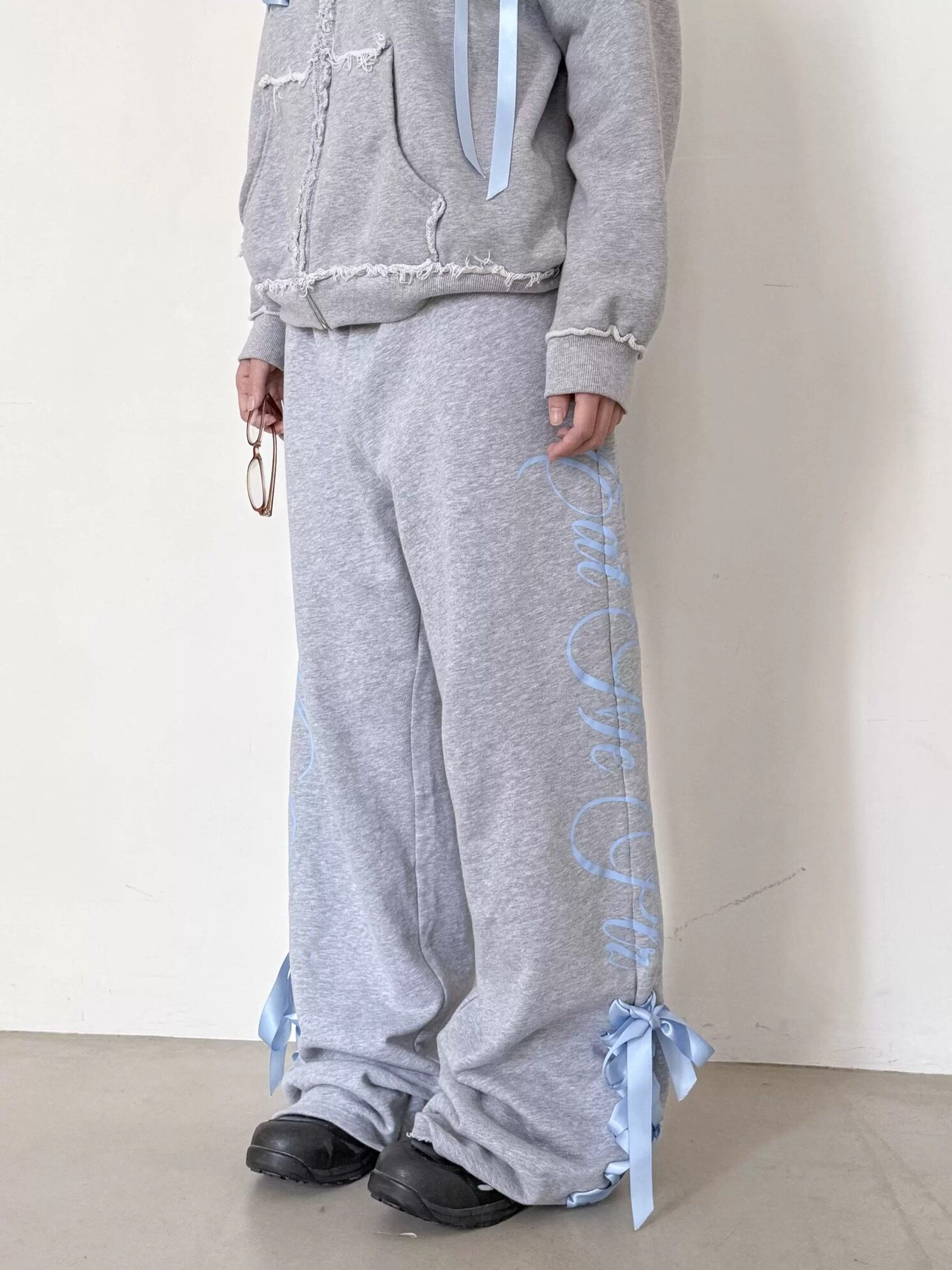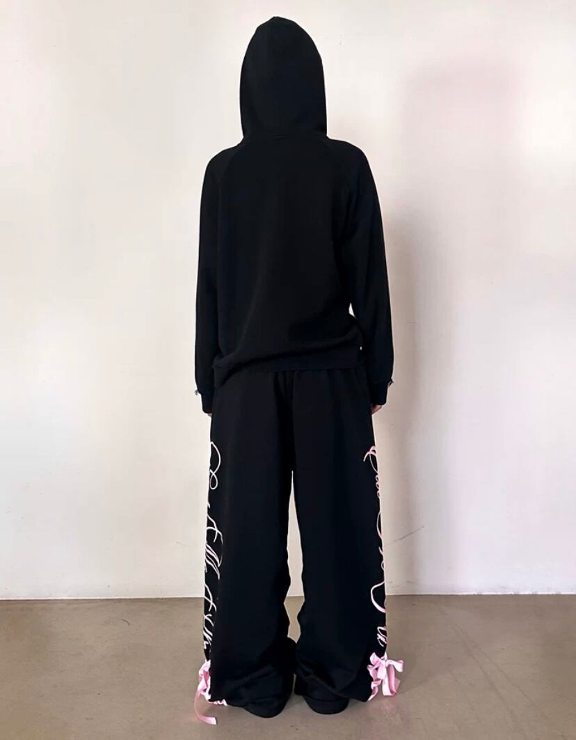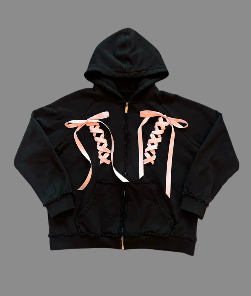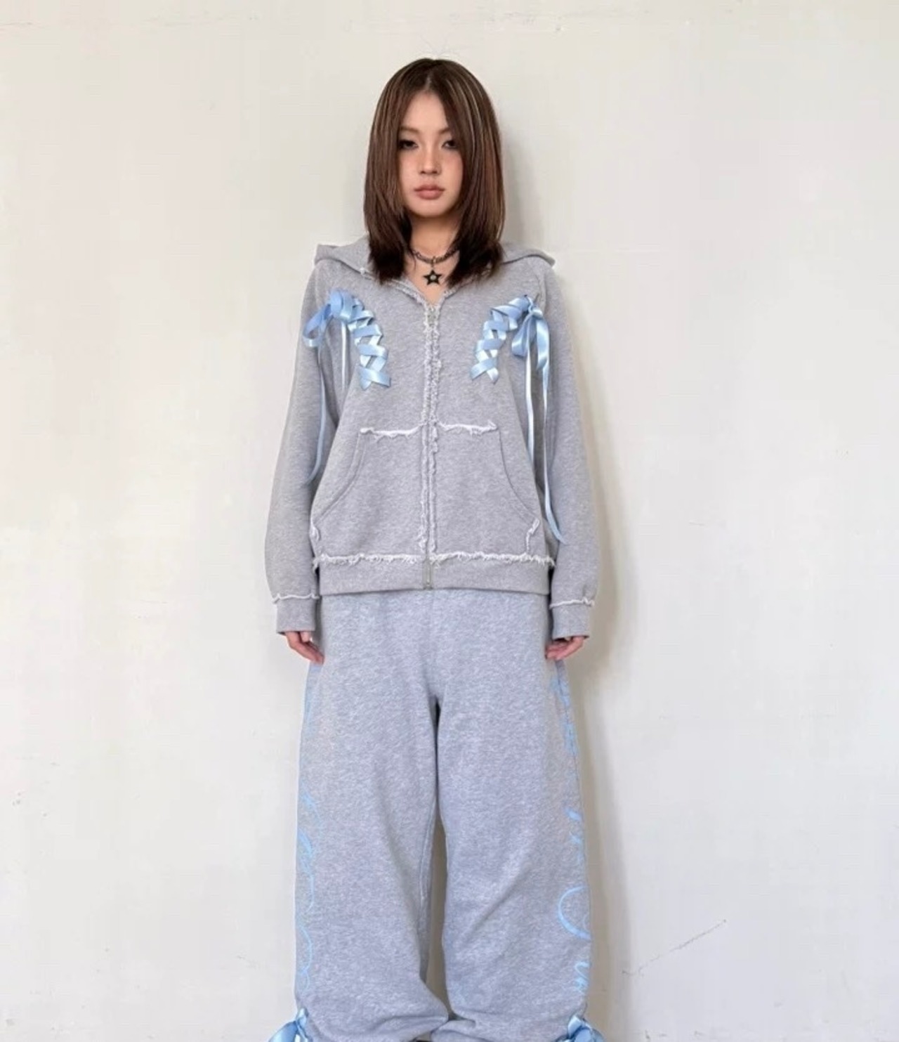 【パーカー】黒 グレー ピンク 水色 リボン スウェット
