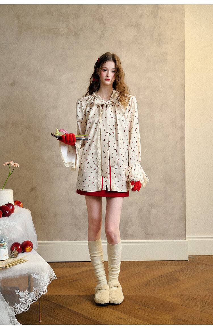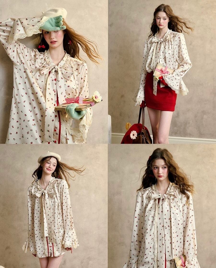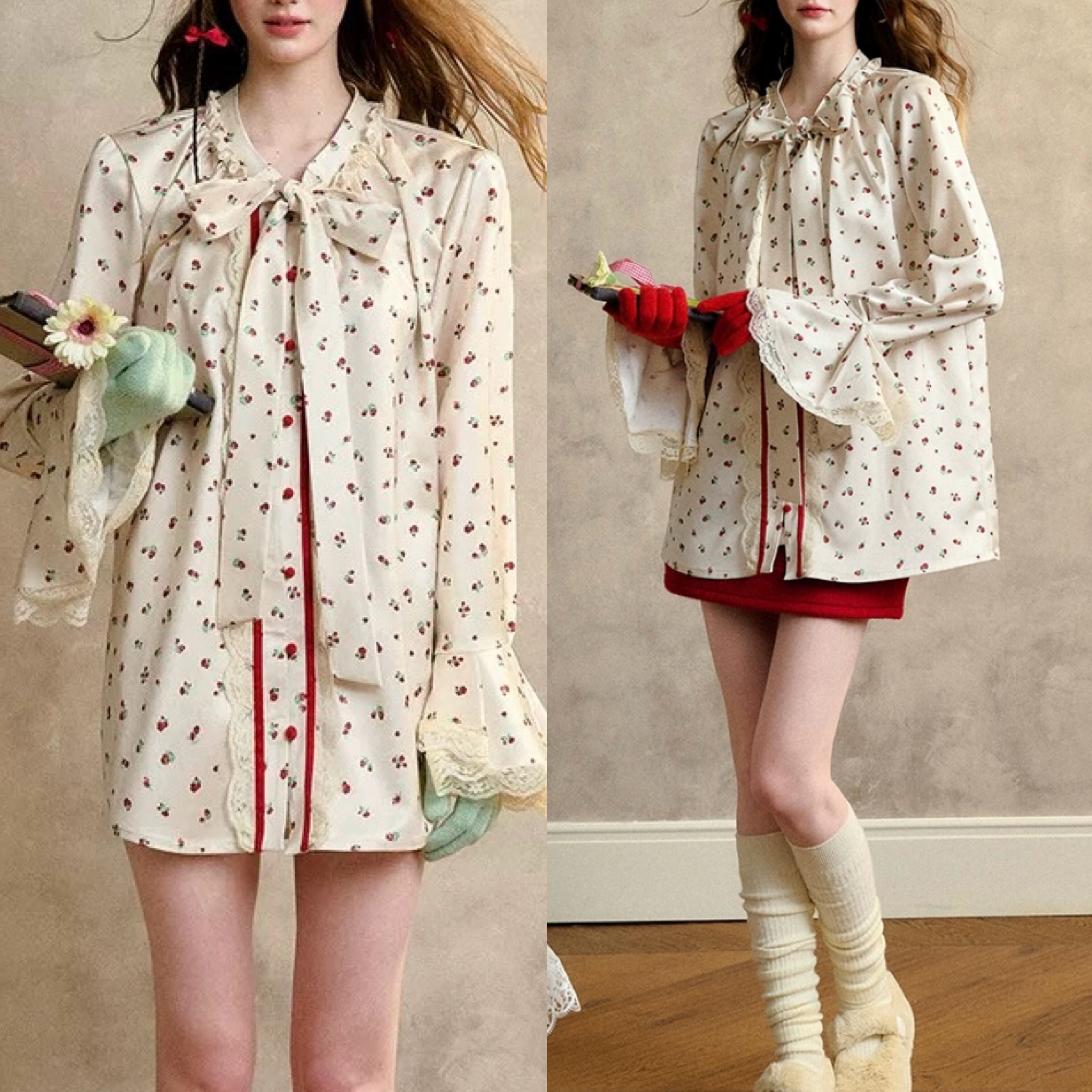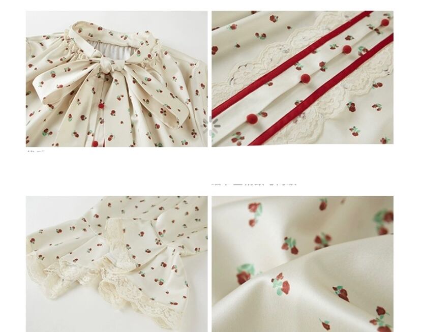 赤 花柄 フラワー ブラウス ワンピース リボン 可愛い ガーリー