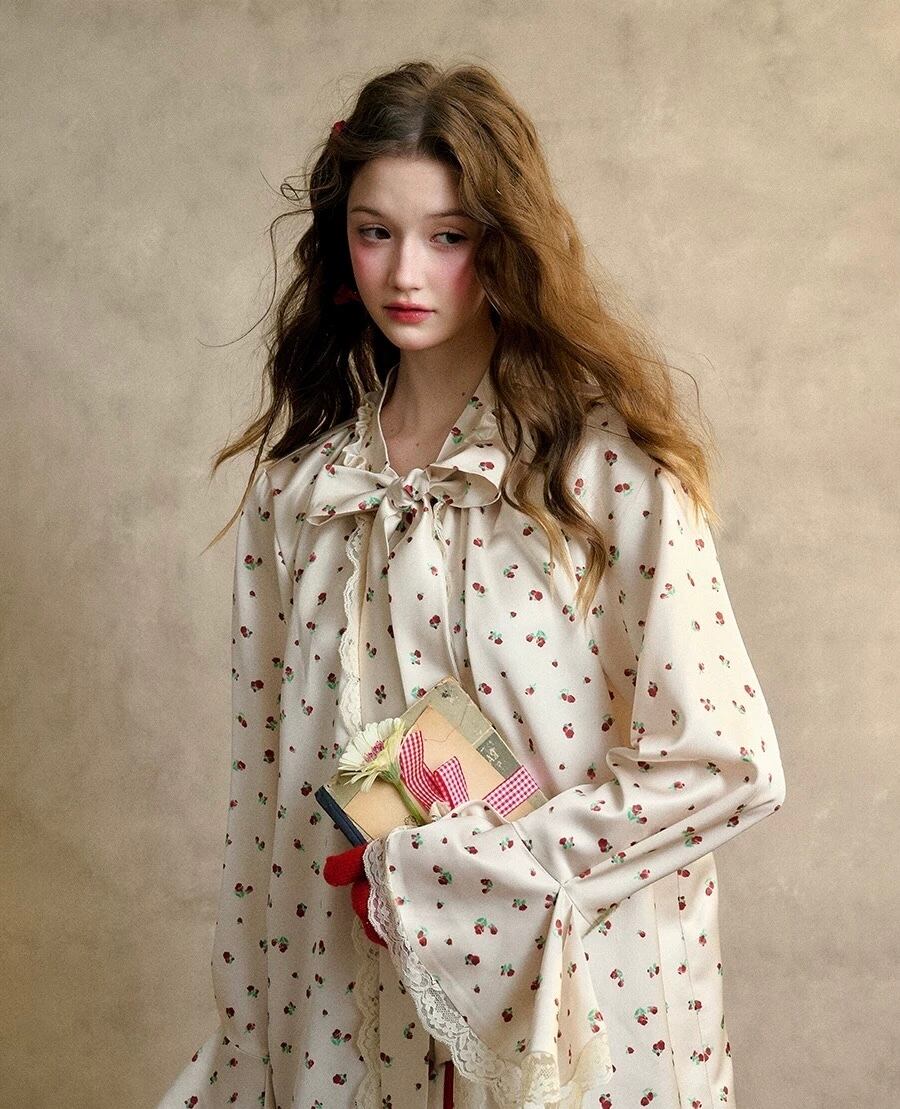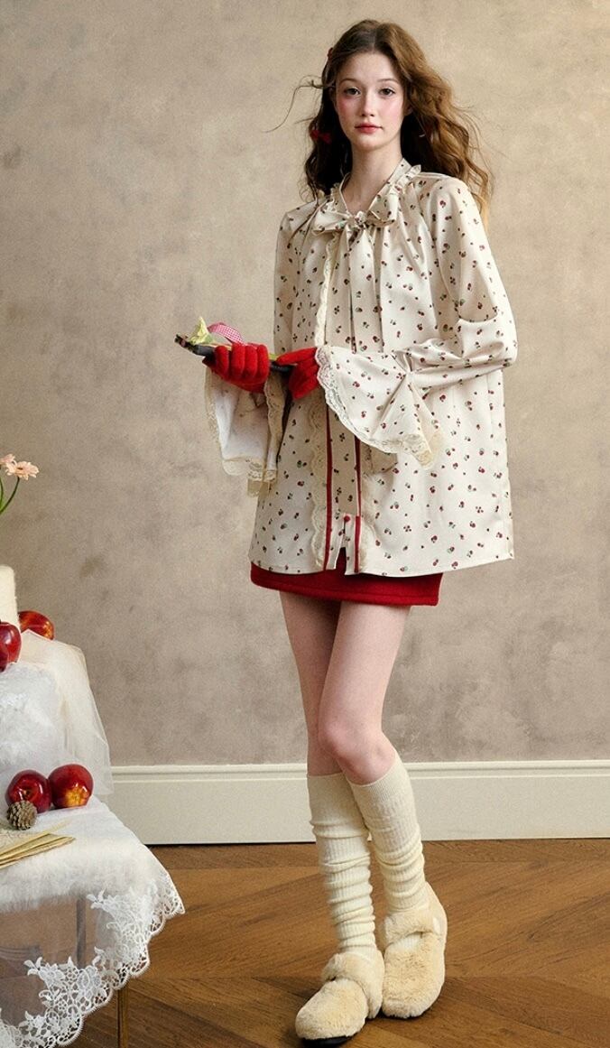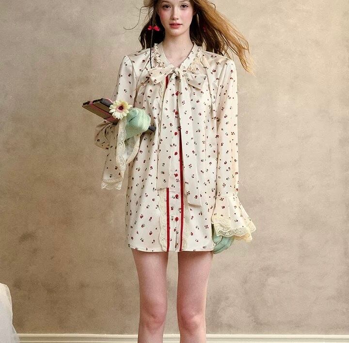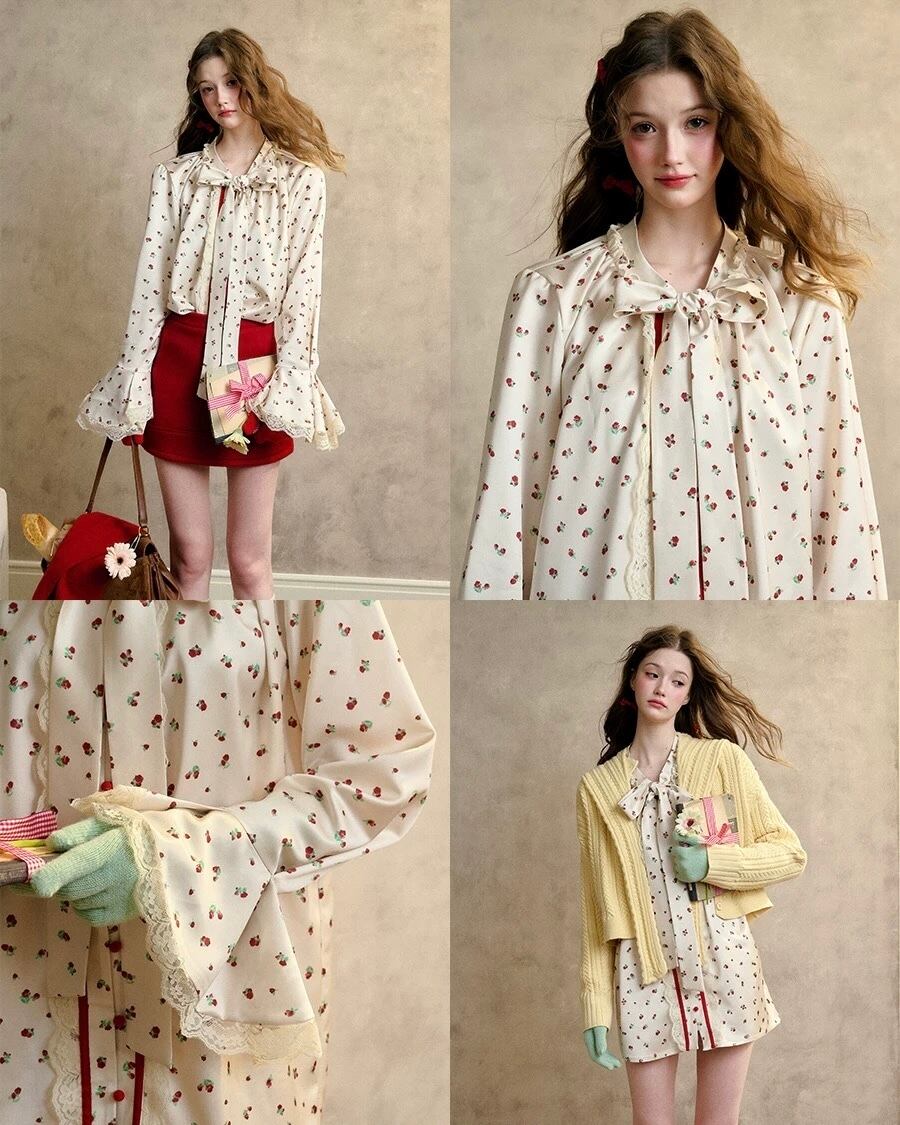 赤 花柄 フラワー ブラウス ワンピース リボン 可愛い ガーリー