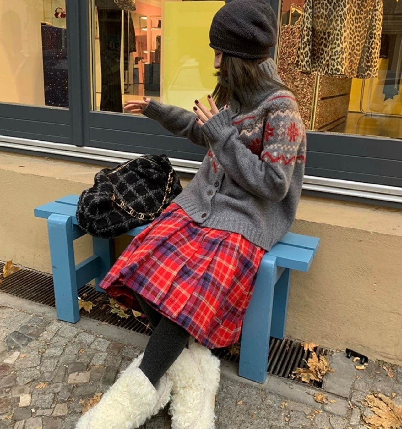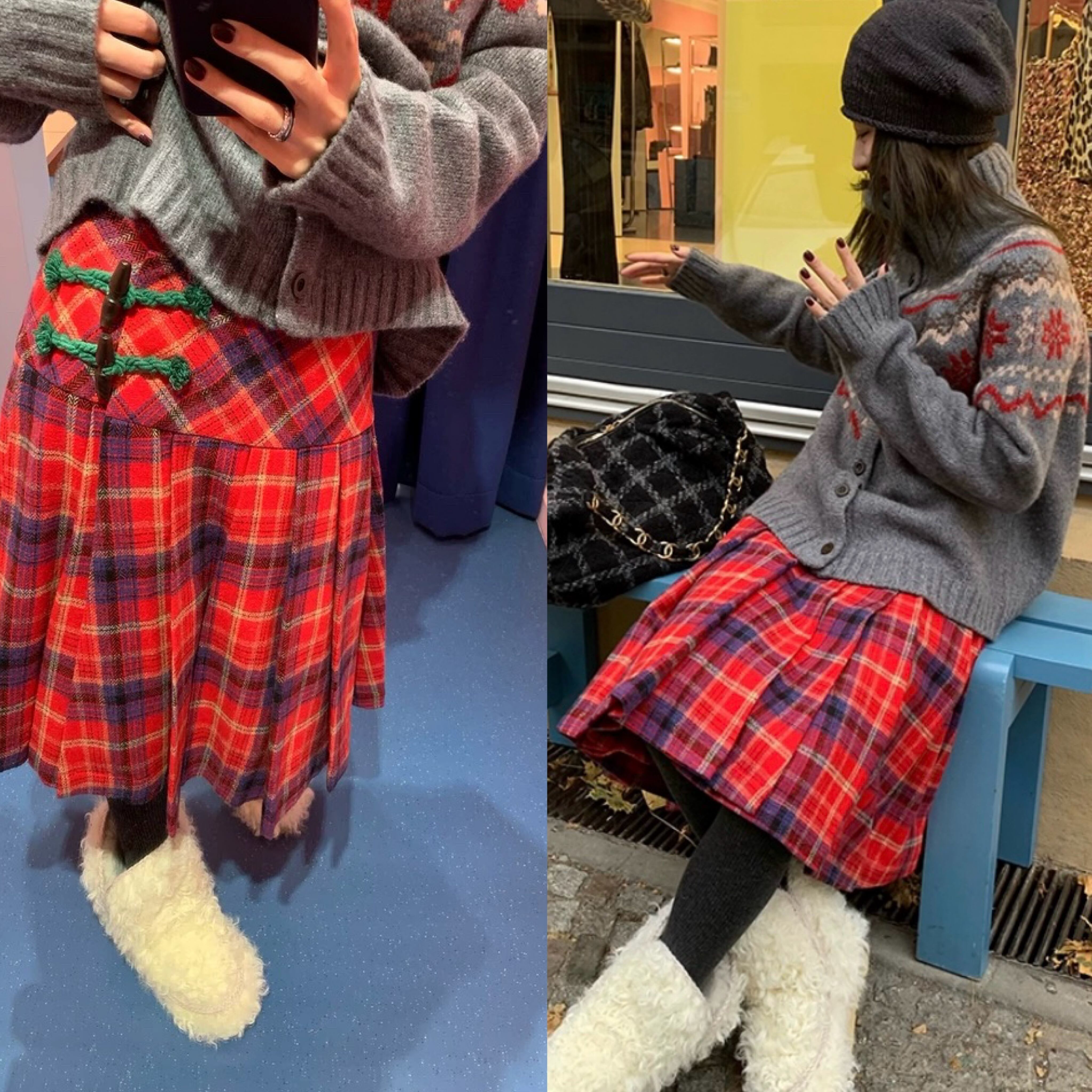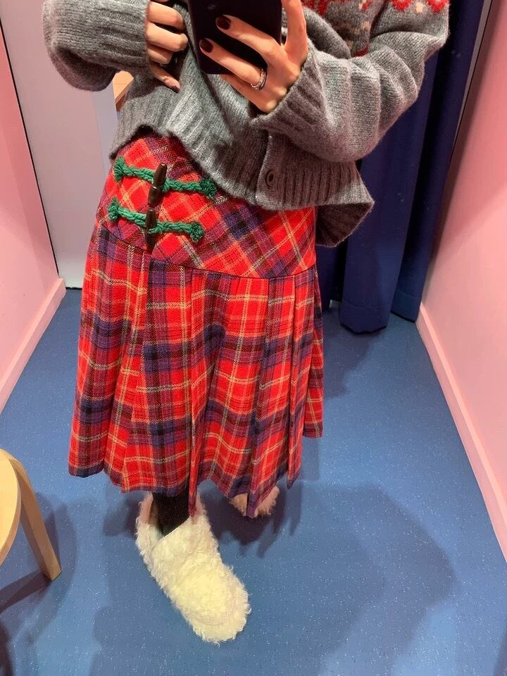 ★サイズ 赤 チェック プリーツスカート ボトムス ガーリー イギリス