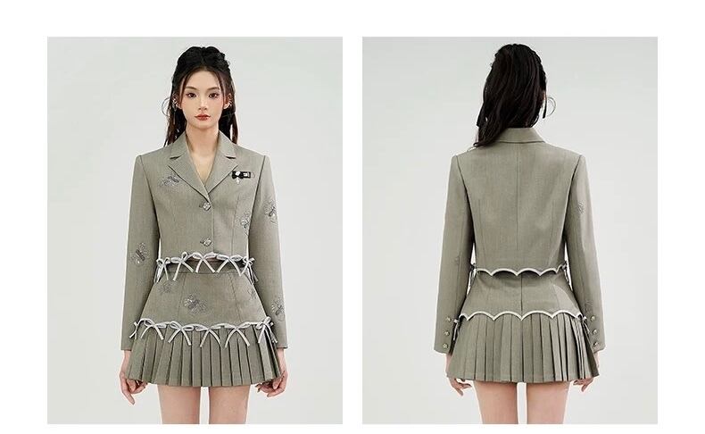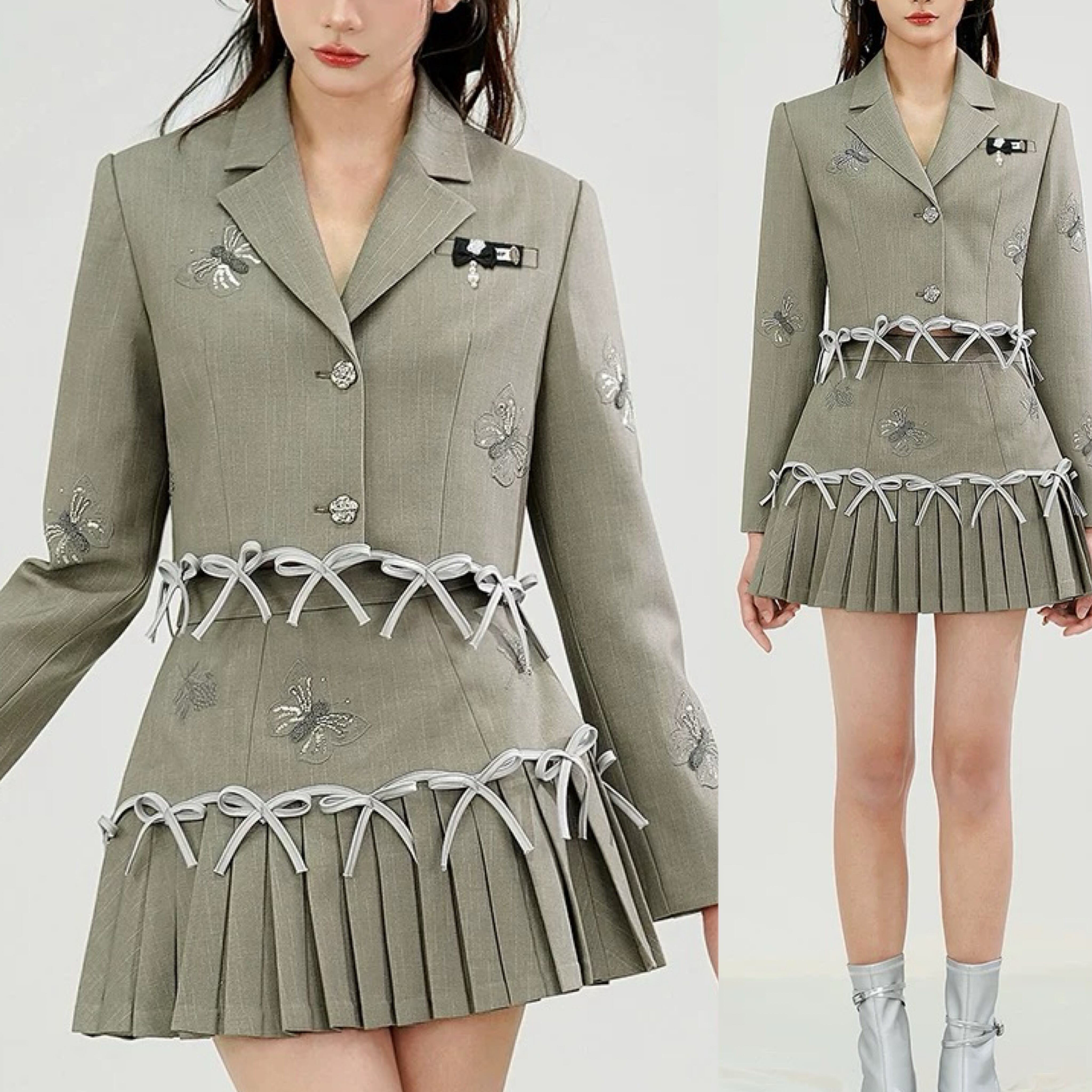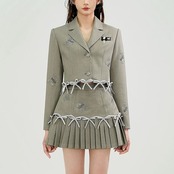 【ジャケット】スーツ グレー リボン コート XS ガーリー カーディガン