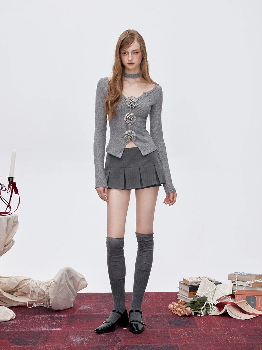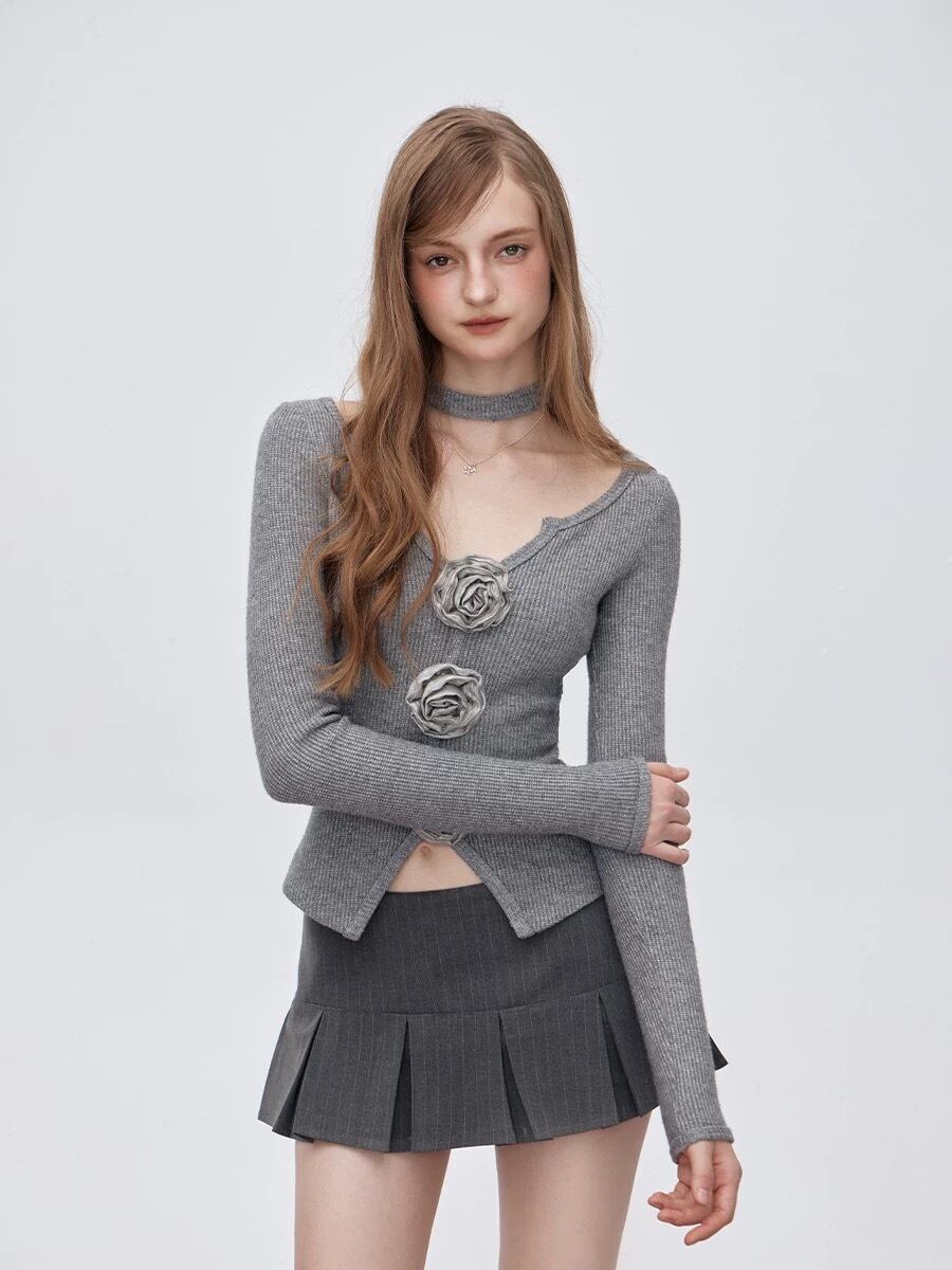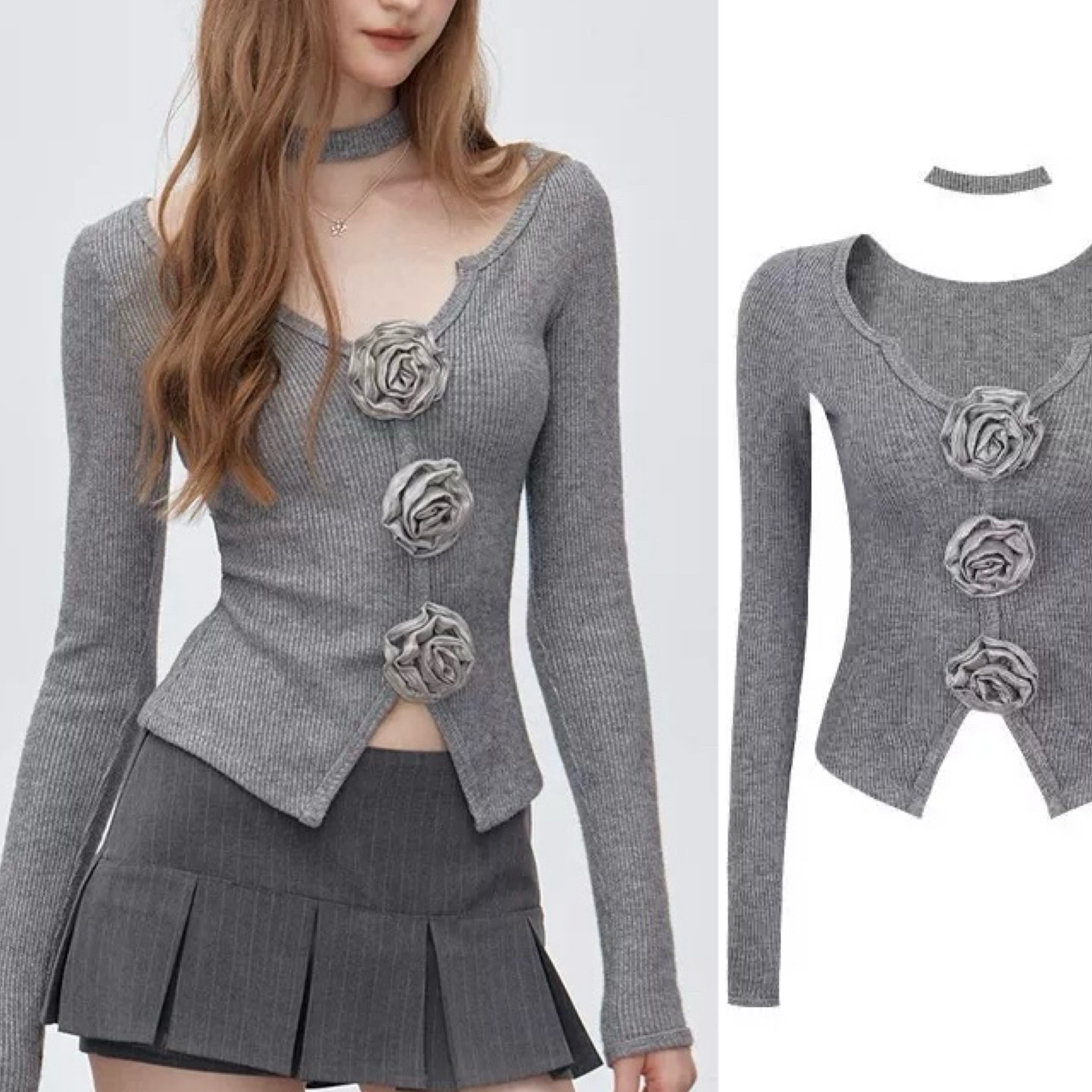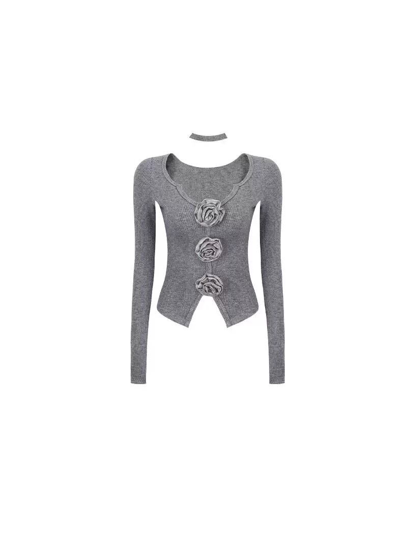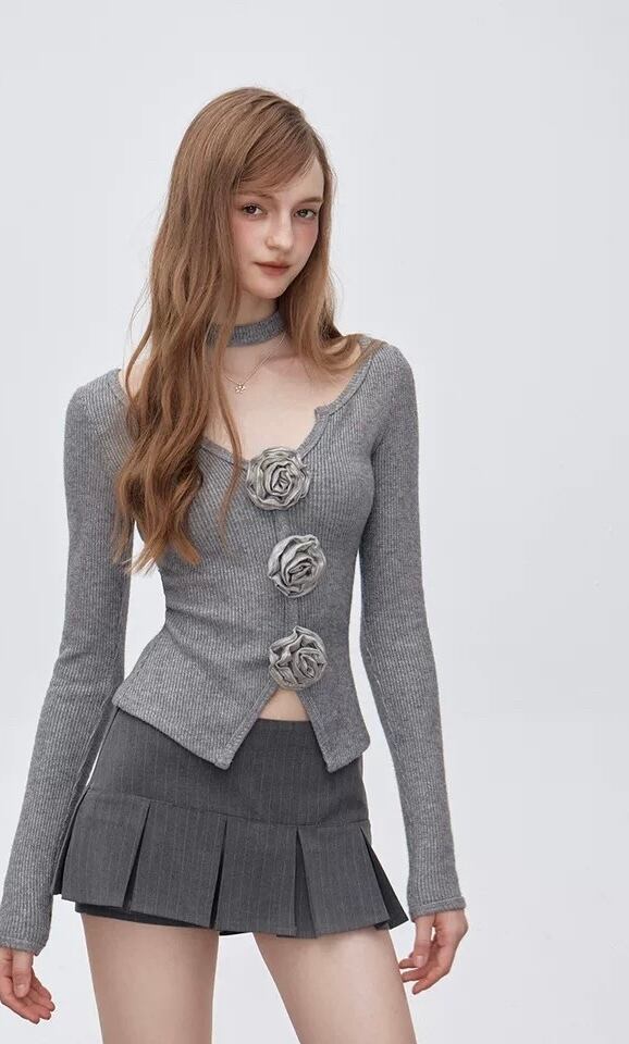 グレー カーディガン カメリア ガーリー セーター アウター 花柄