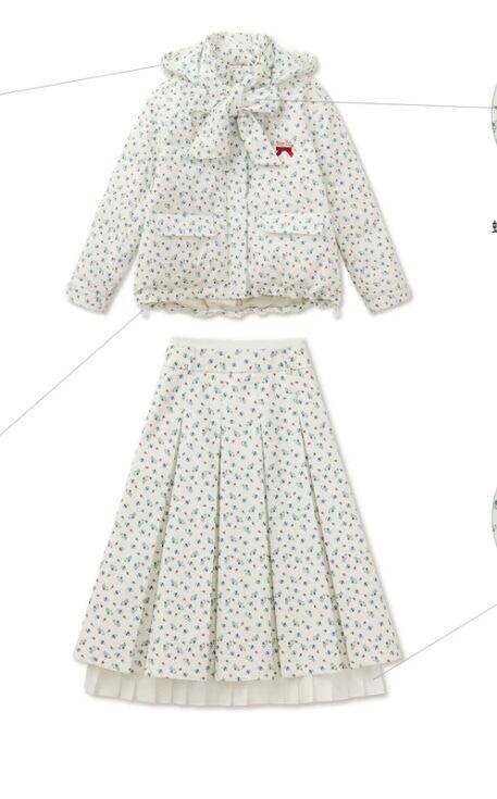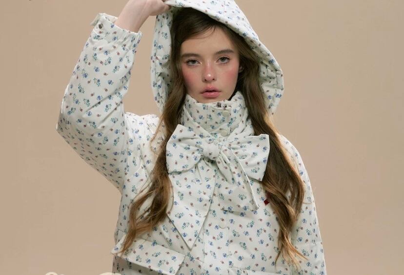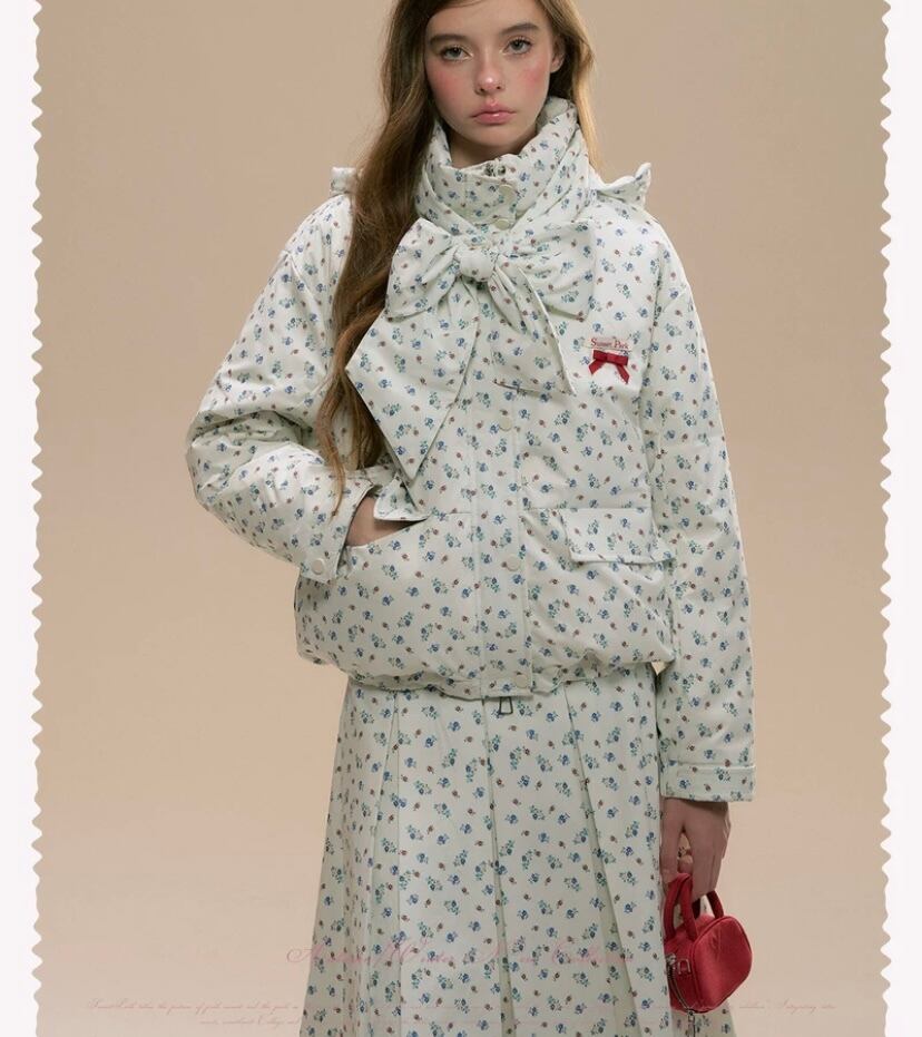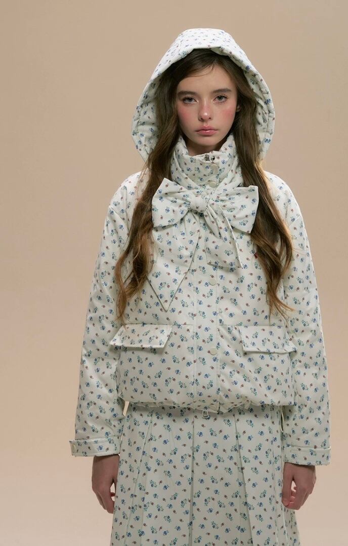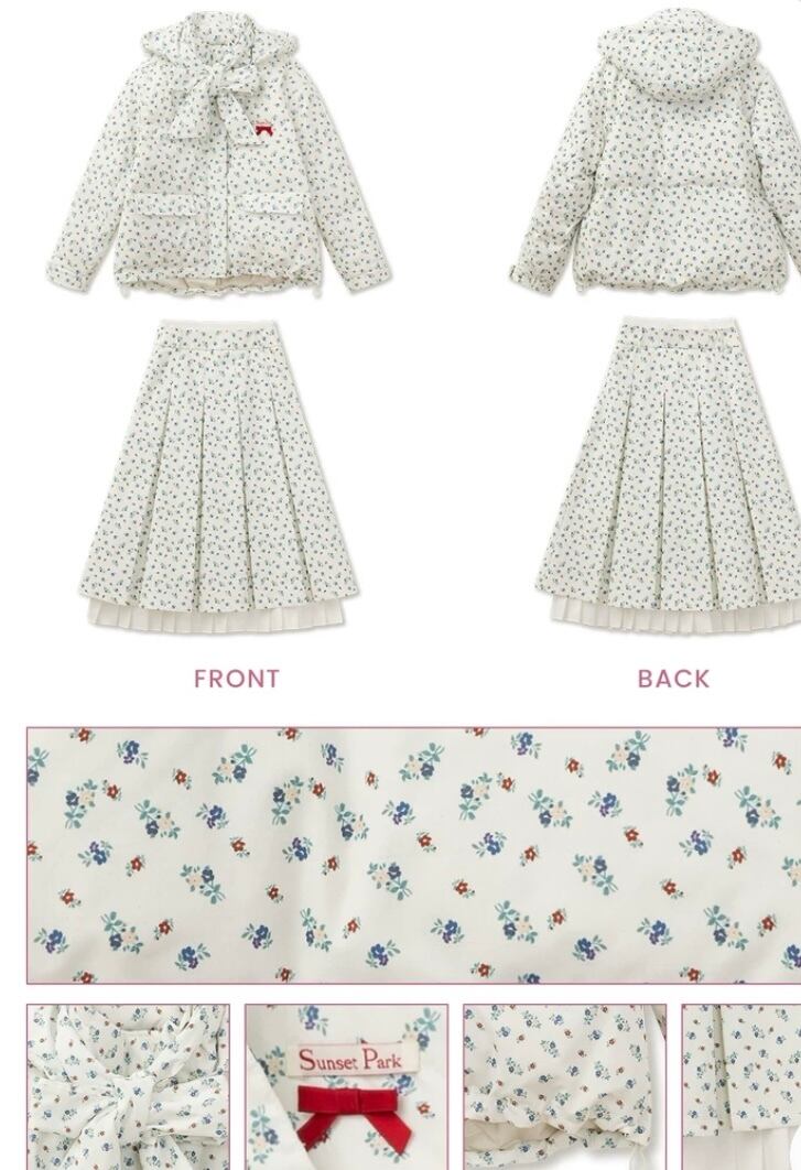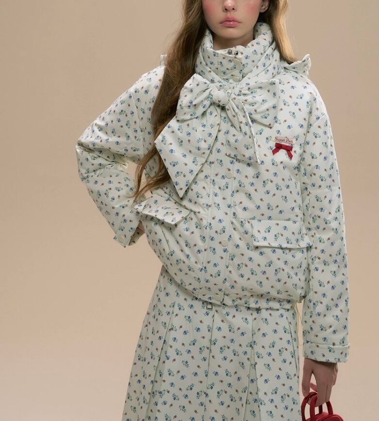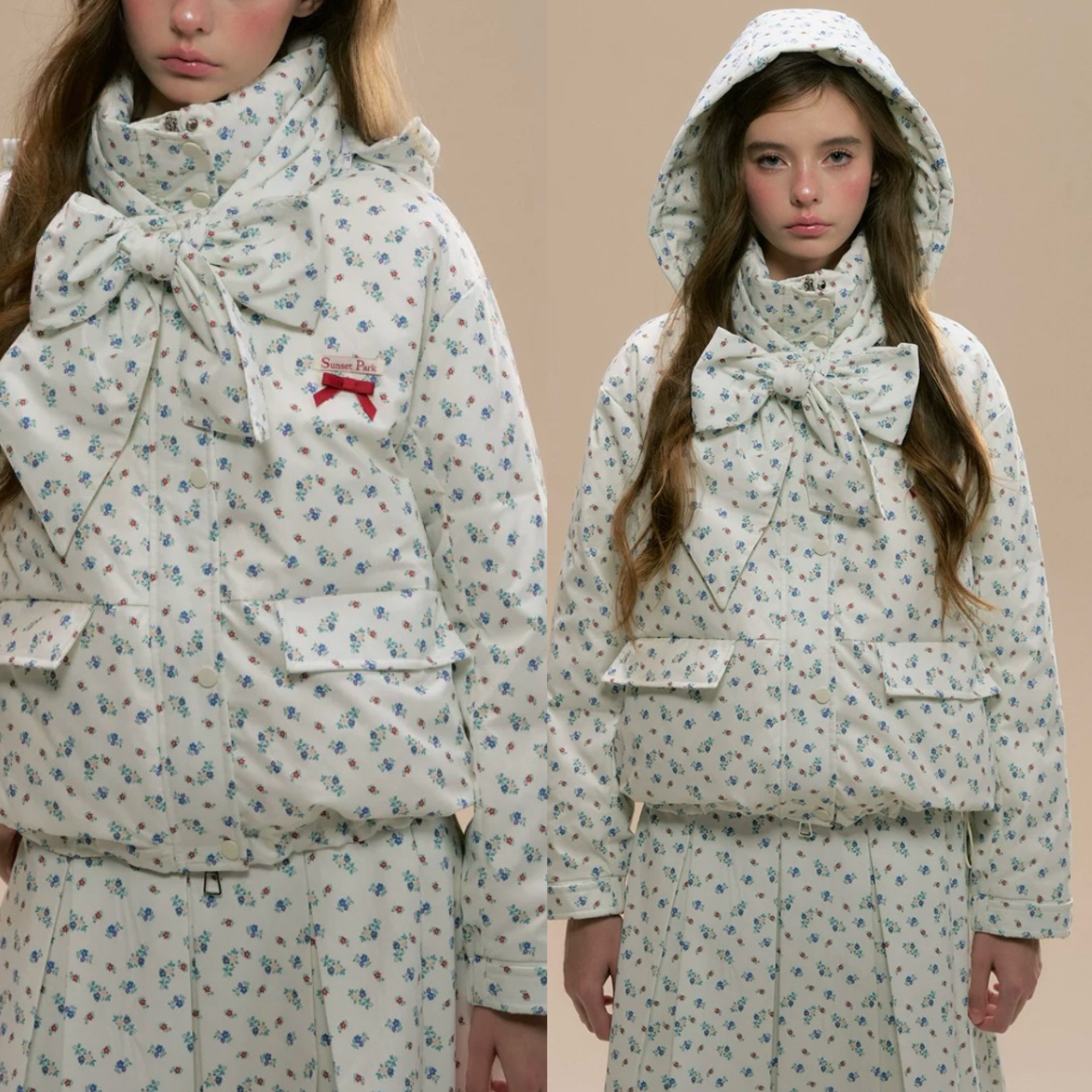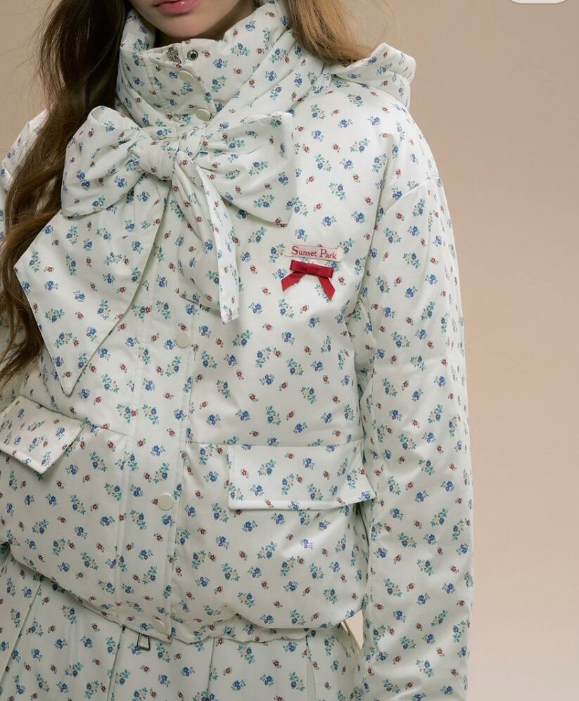 コート アウター ジャケット 水色 リボン 花柄 可愛い ダウン コート