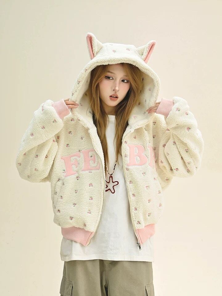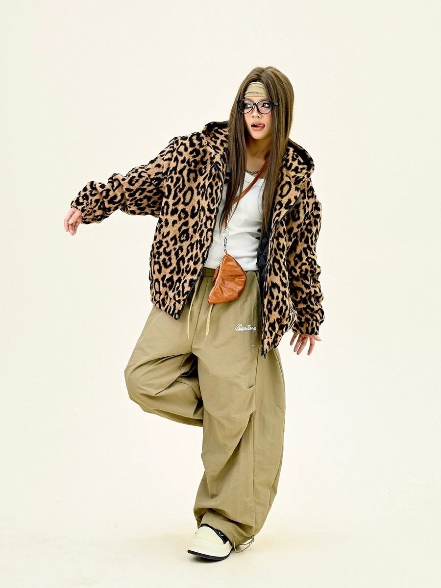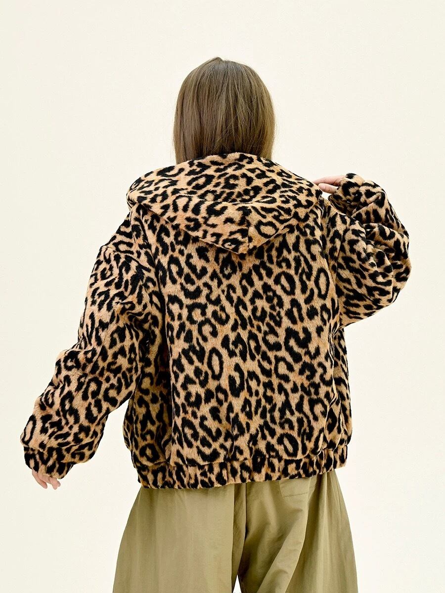 ピンク ダウン アウター コート レオパード ヒョウ柄 茶色 パーカー フリース ピンク